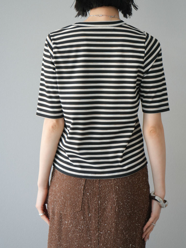 [予約]マルチボーダーコンパクトTシャツ/ブラック