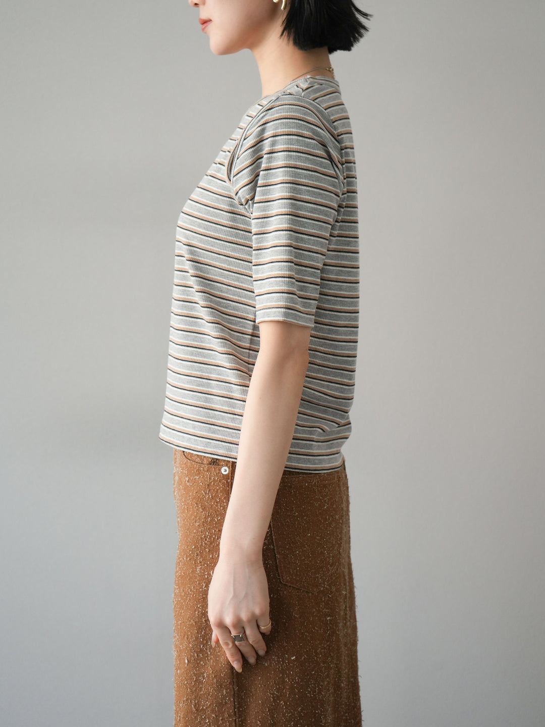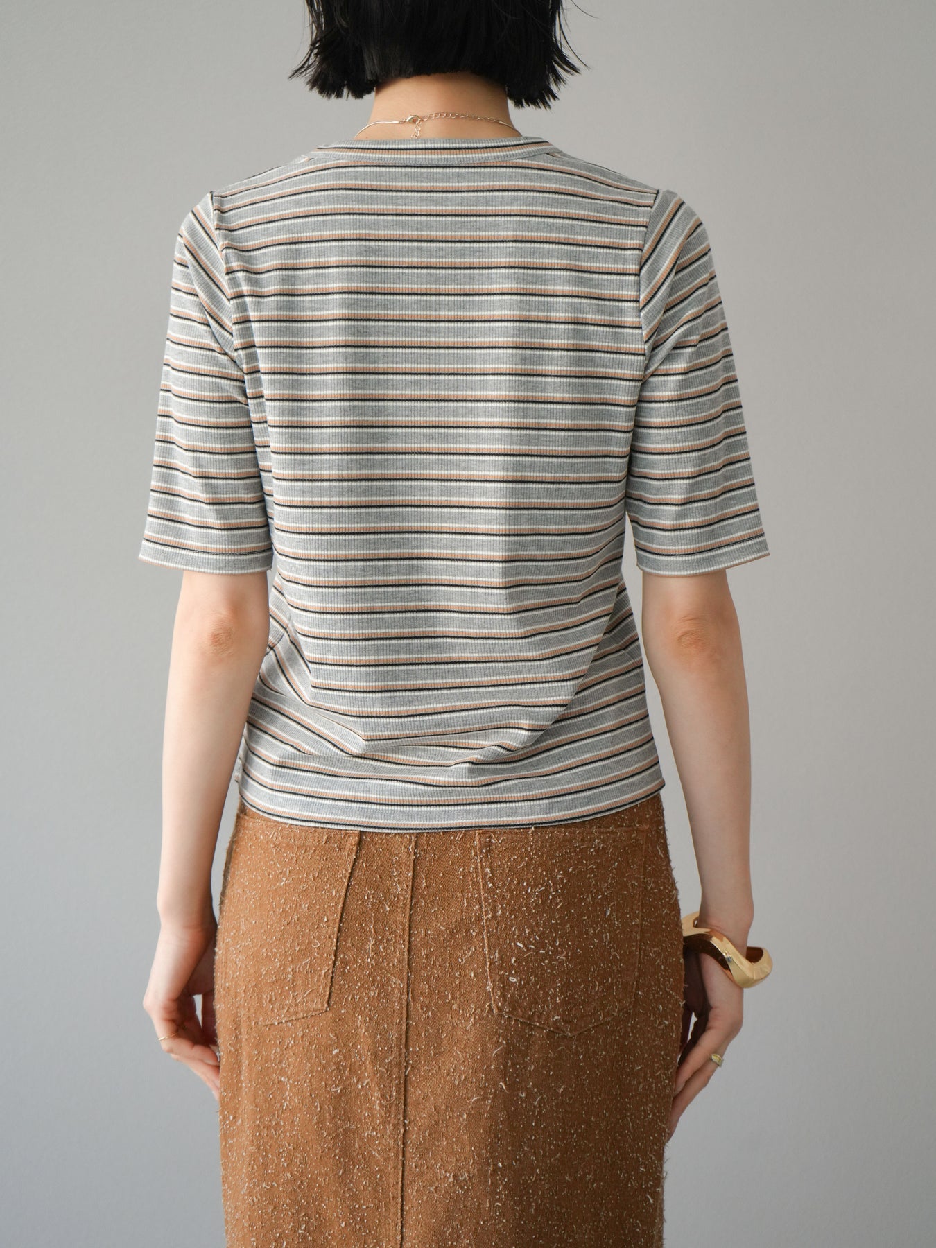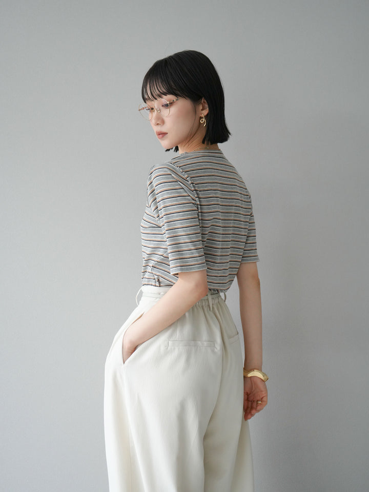 [予約]マルチボーダーコンパクトTシャツ/グレー