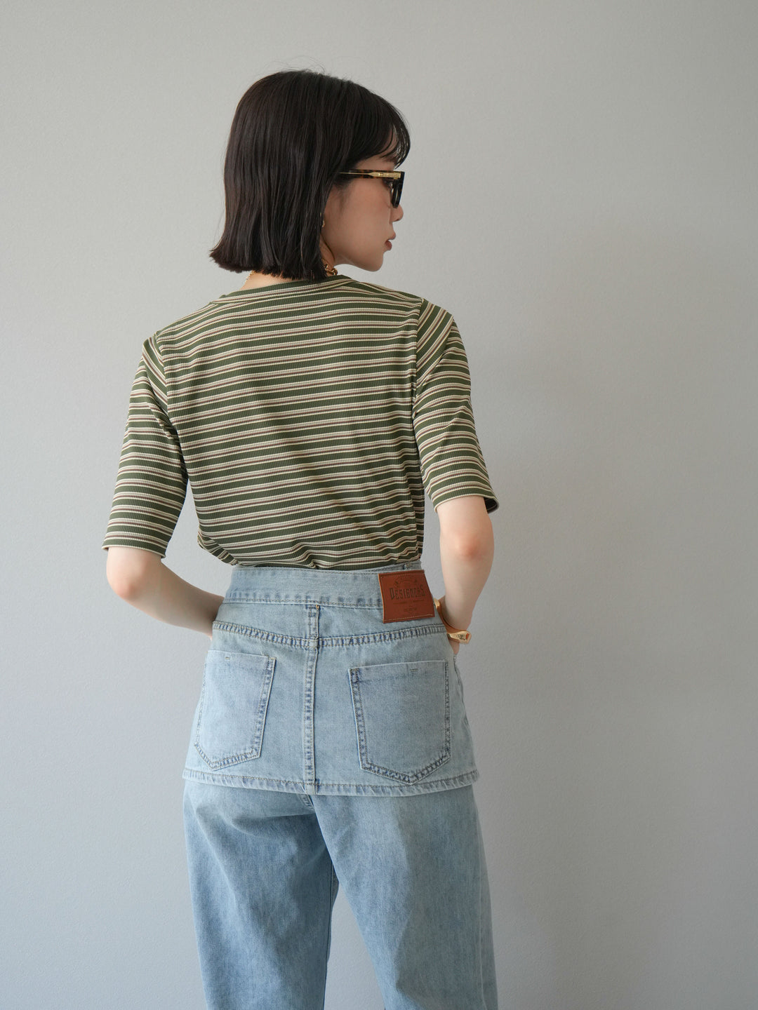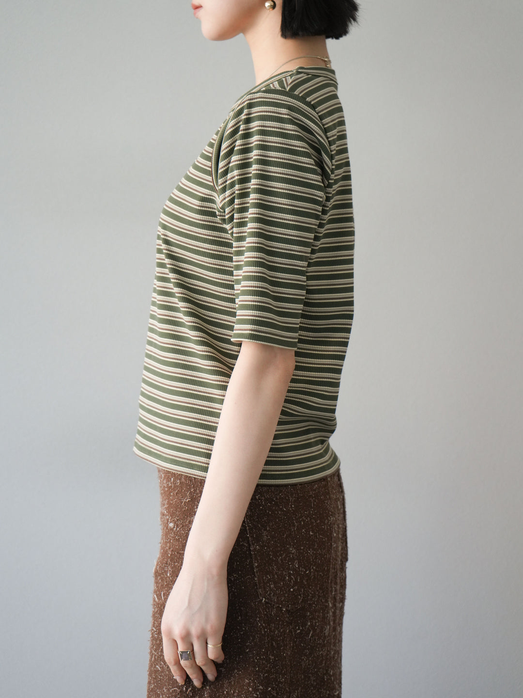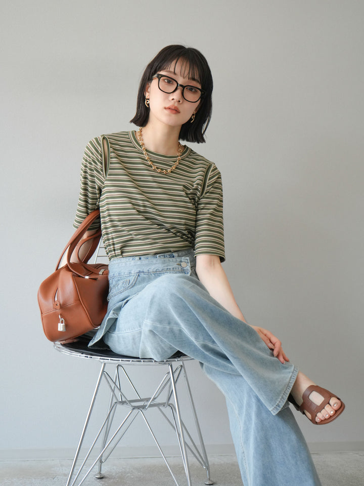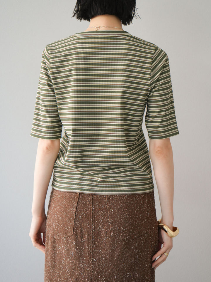 [予約]マルチボーダーコンパクトTシャツ/カーキ