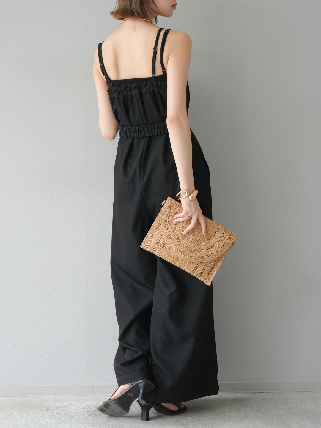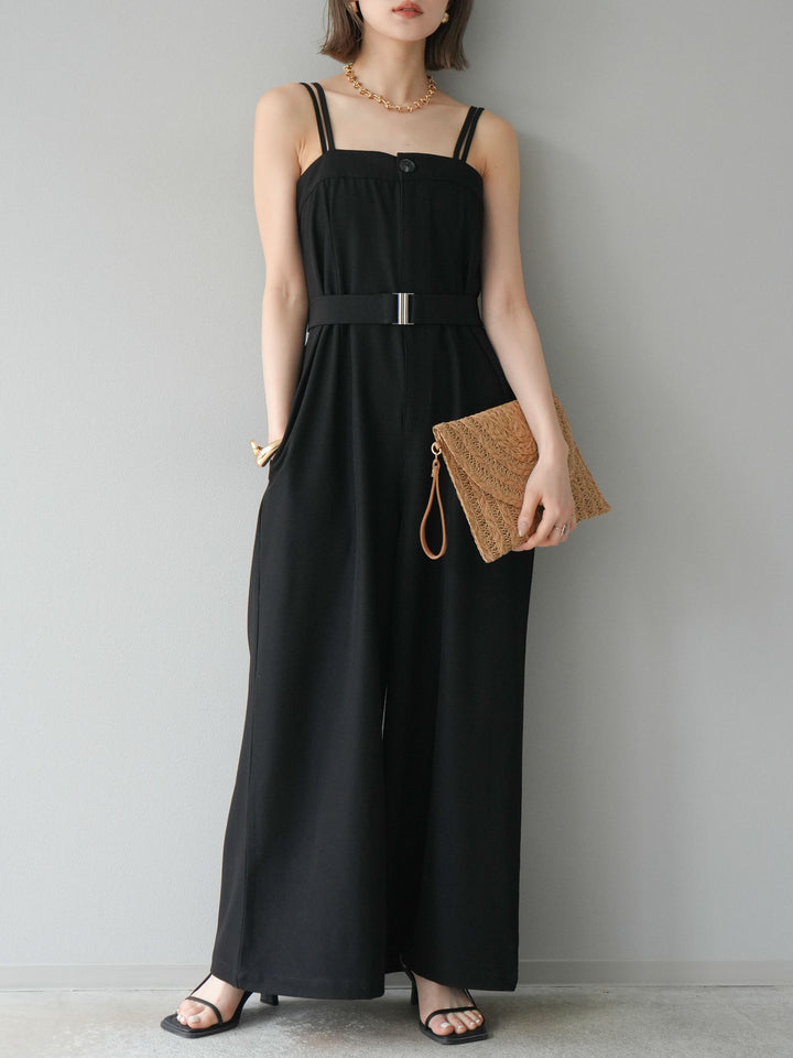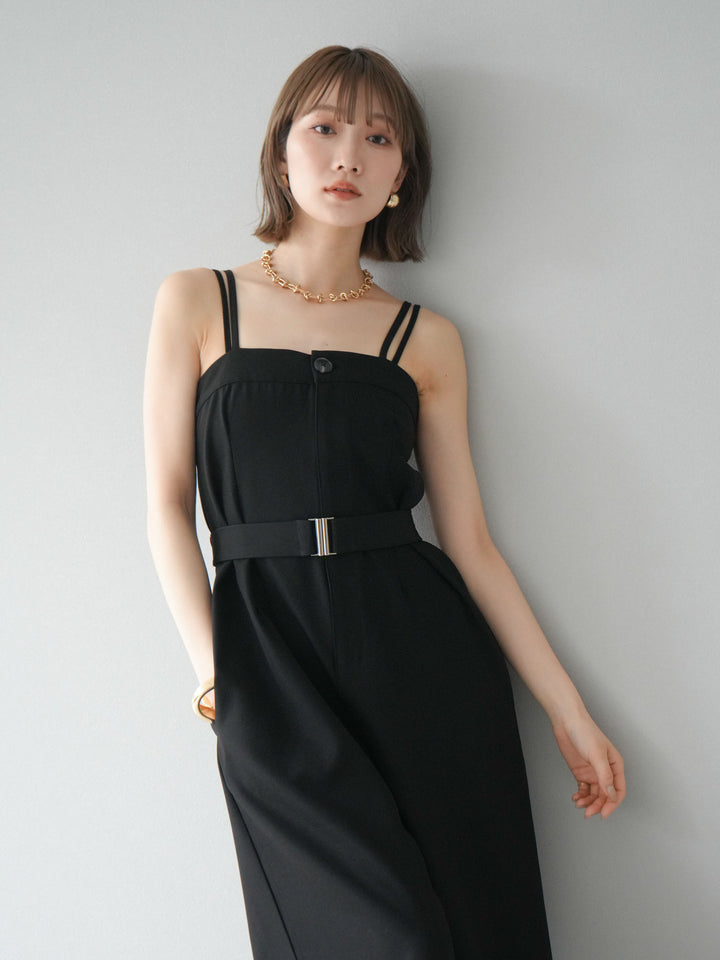 すっきりとしたベアデザインが大人のムードを引き立てるサロペット。ウエストには同素材のベルト付きで、スタイルアップ効果も抜群。落ち感のある生地とワイドシルエットが、動きに合わせて美しく揺れ、洗練された印象に。インナー次第でシーズンレスに着回せるのも魅力。トレンドを意識した抜け感のあるスタイリングが叶います。 ※ボトムス、キャミソール(インナー)以外の商品は一律でインナーは付属していません