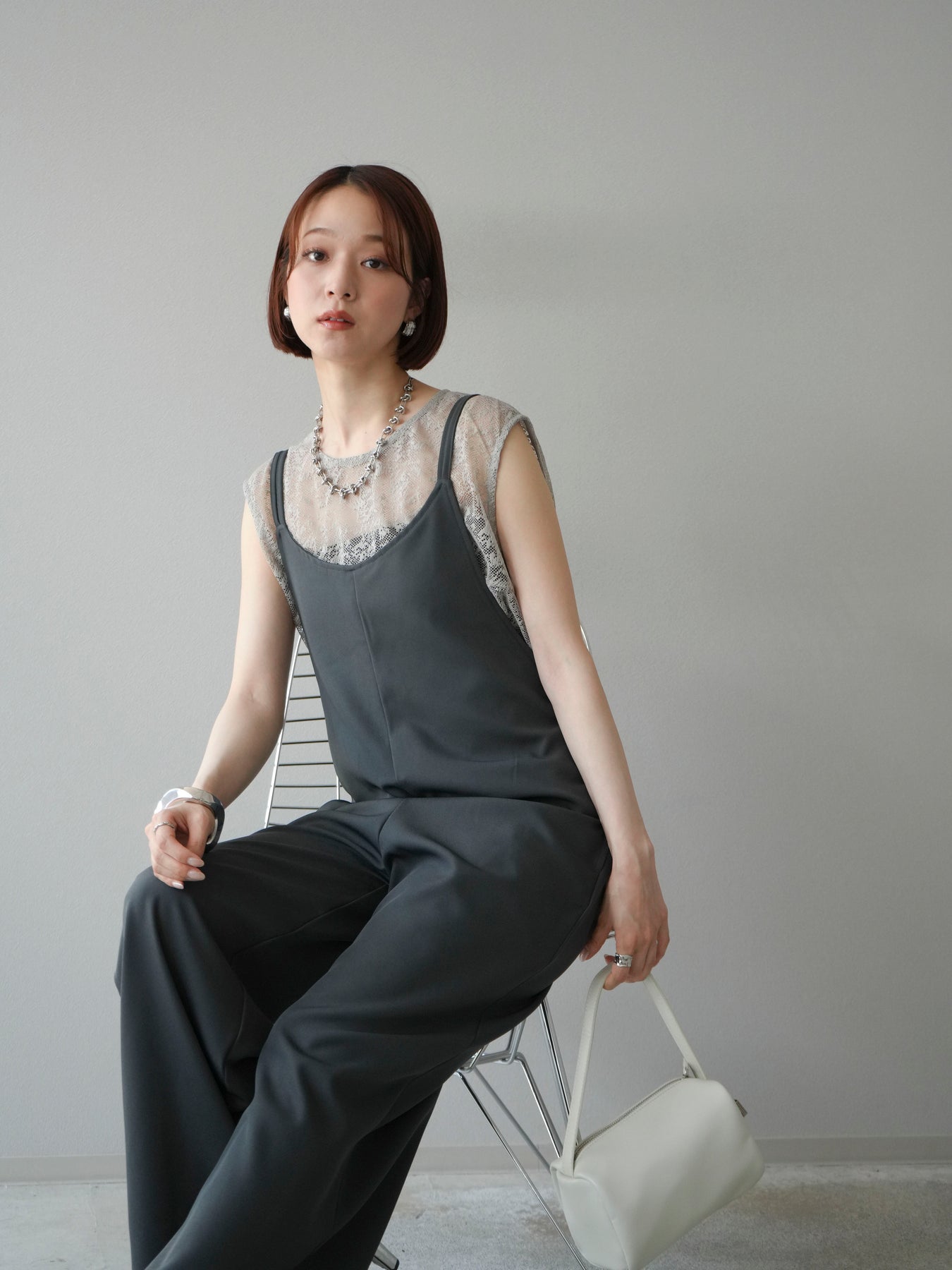 [予約]バックデザインダブルストラップオールインワン/チャコール
