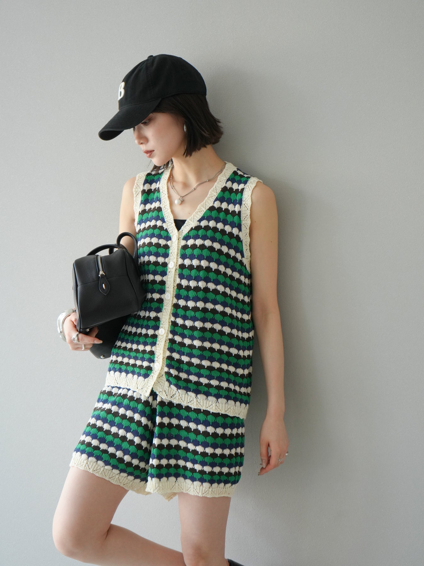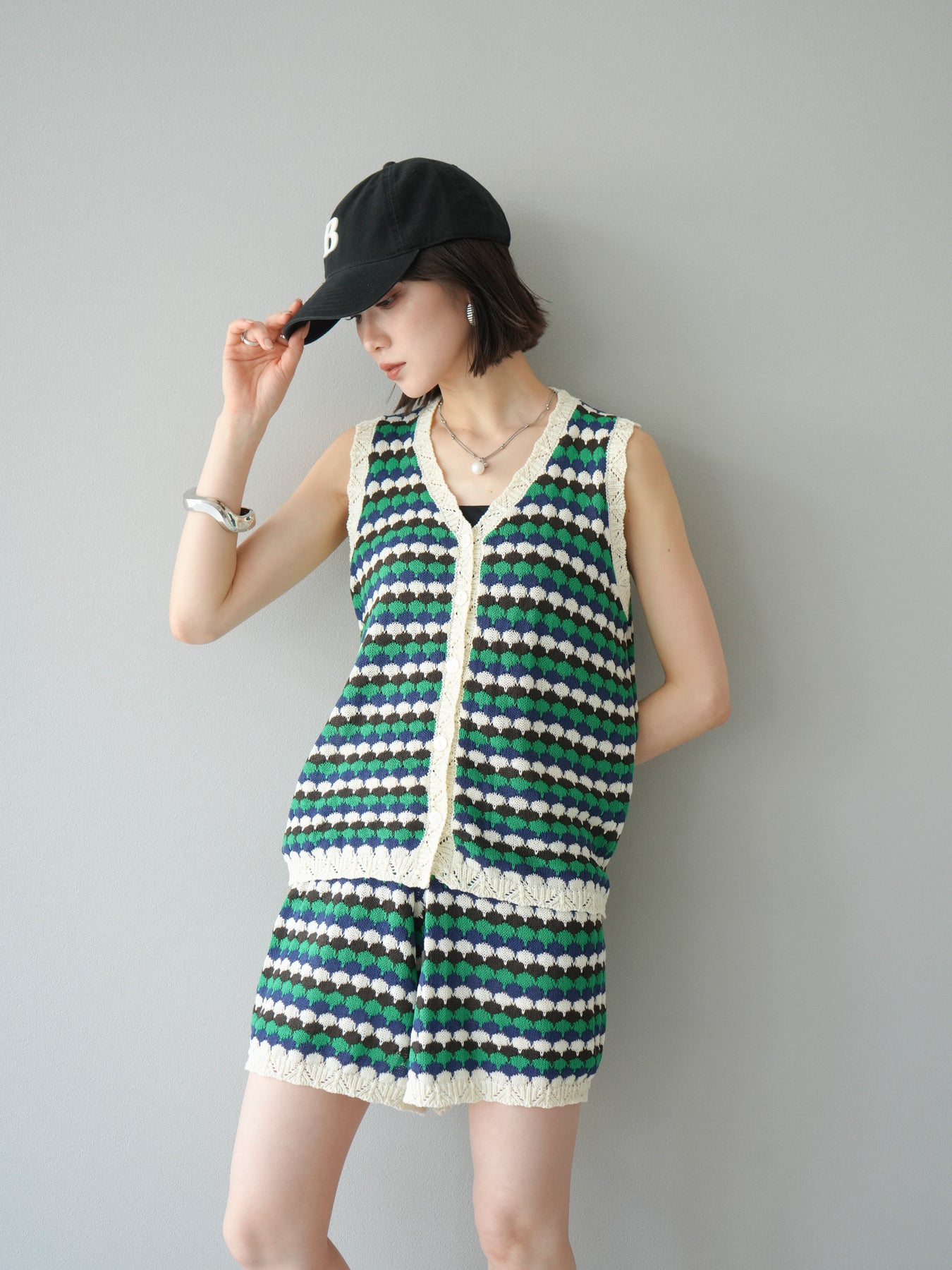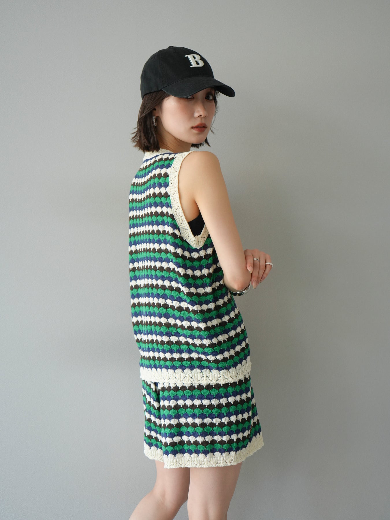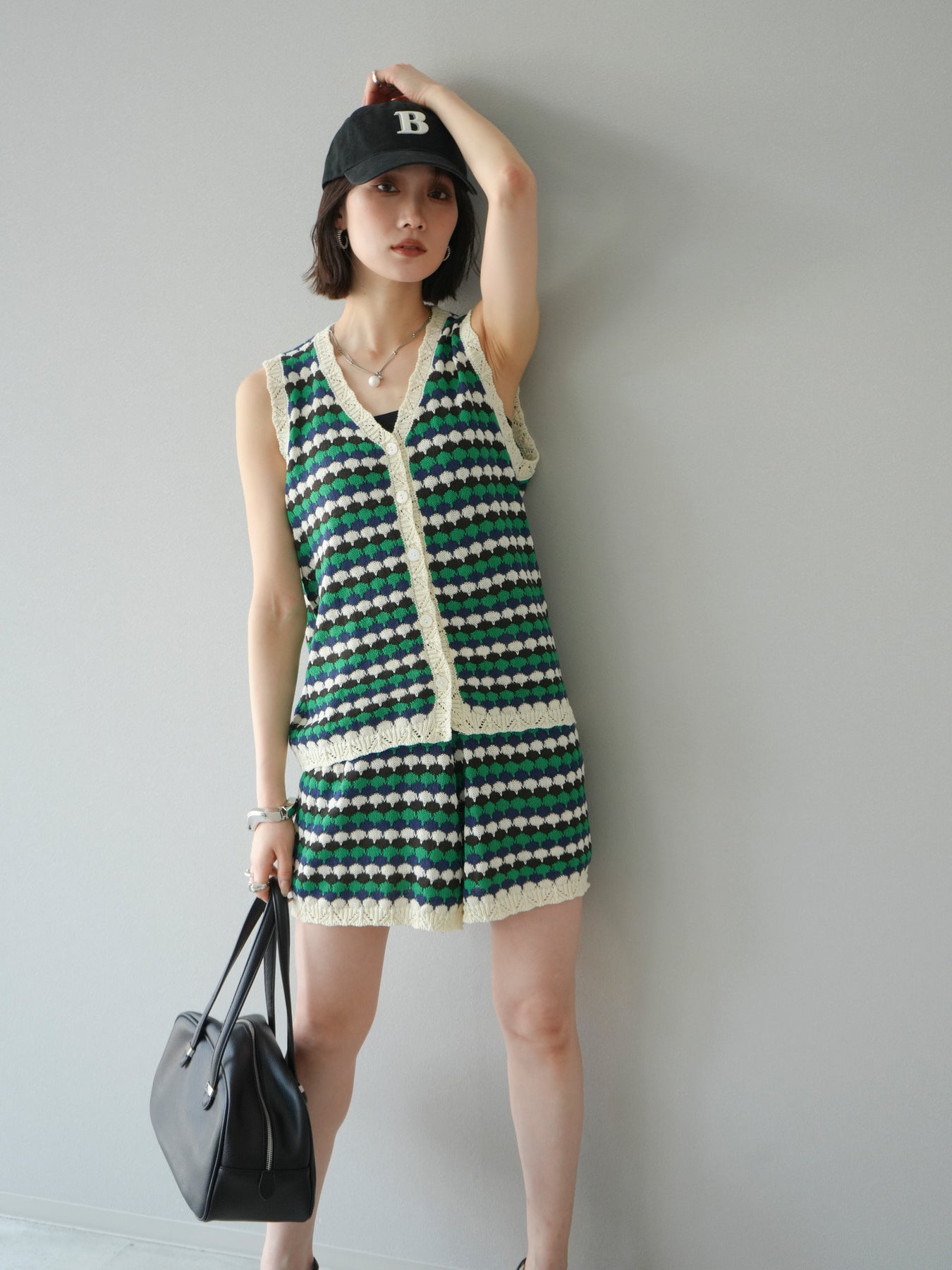 [SET]デザインボーダーニットベスト&ショートパンツ SET UP(2set)