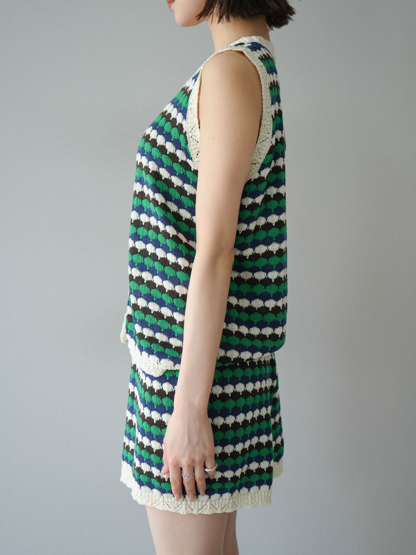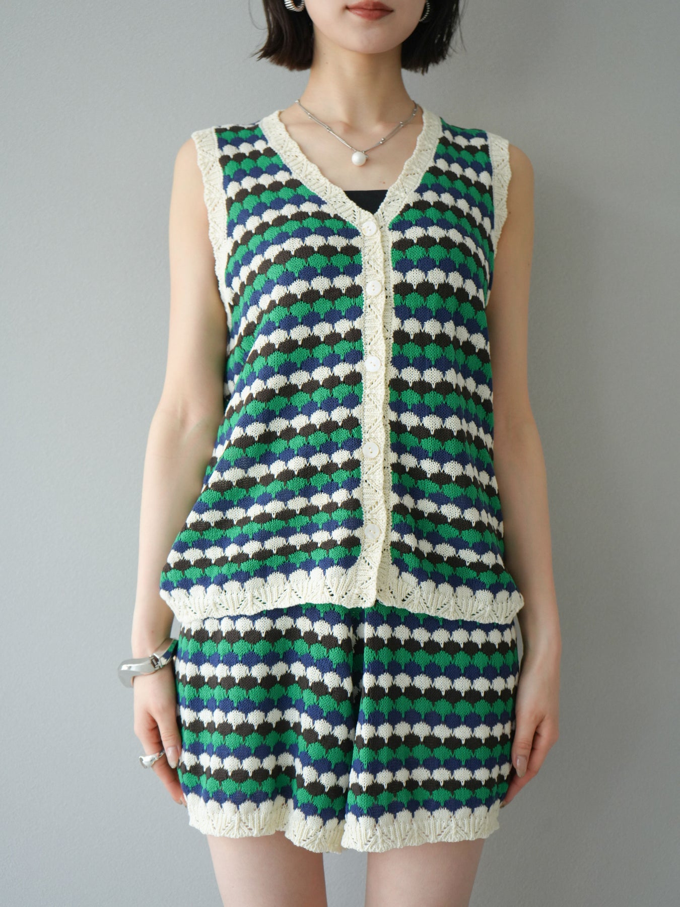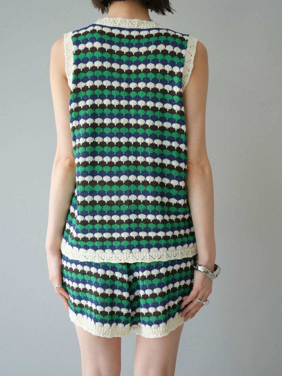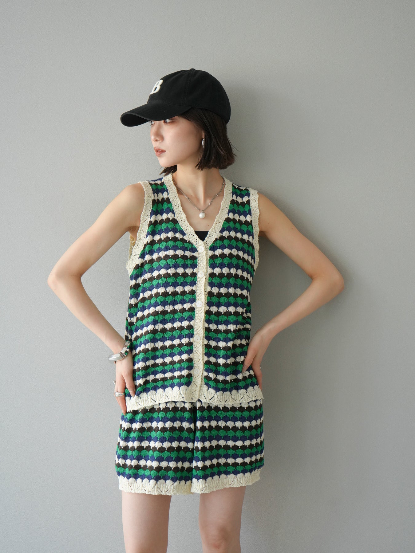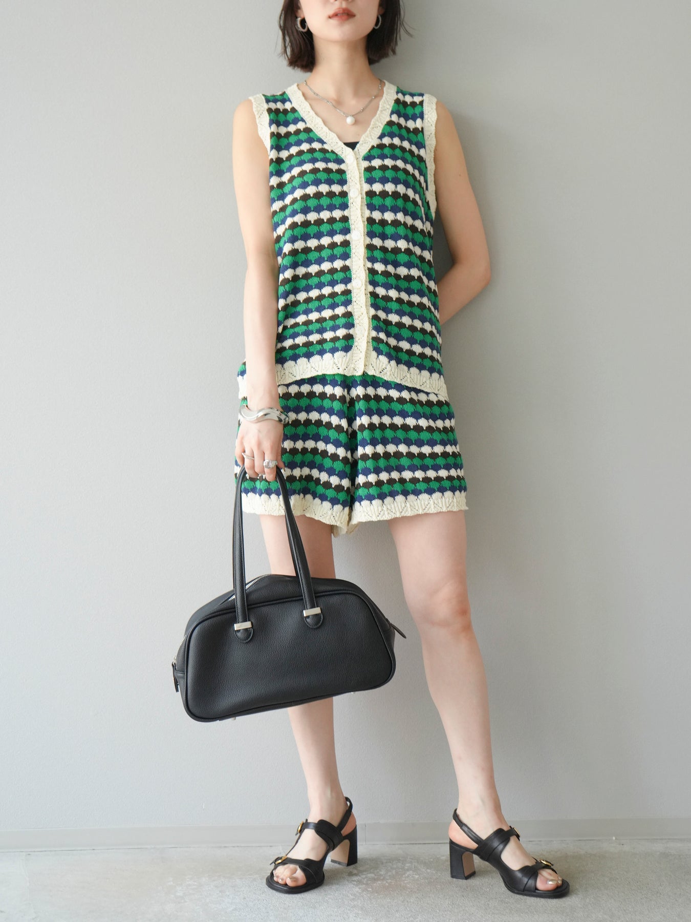 [SET]デザインボーダーニットベスト&ショートパンツ SET UP(2set)