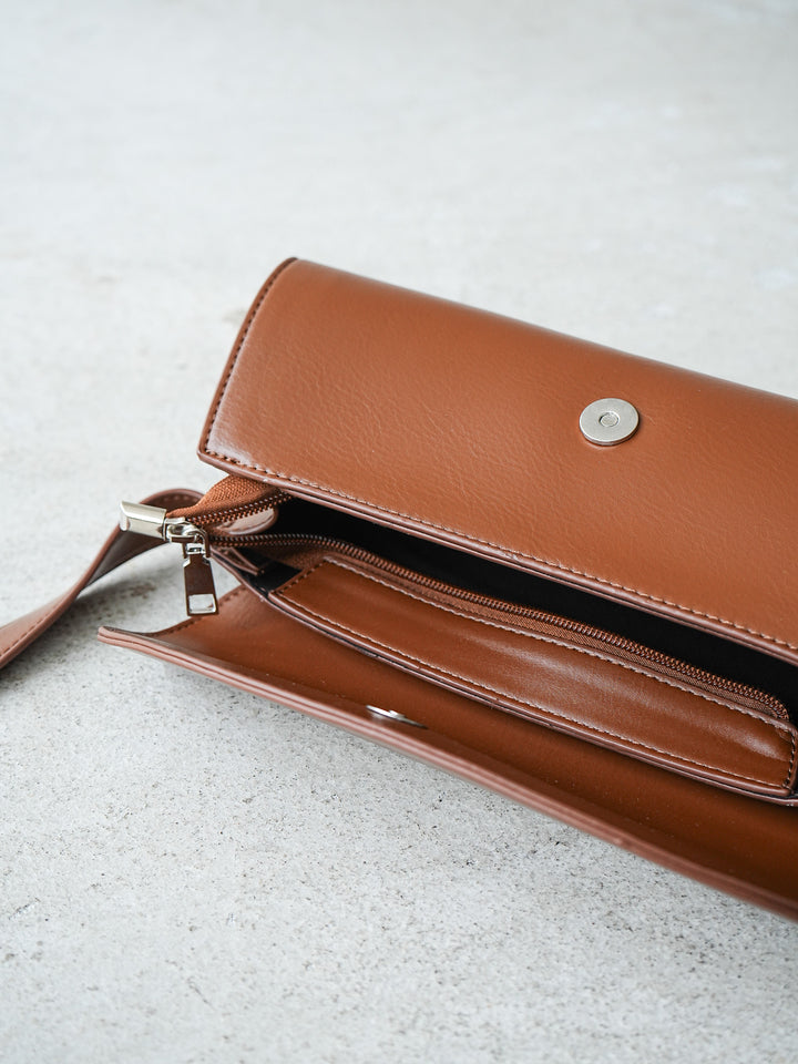 洗練された横長フォルムとシンプルなフラップデザインが魅力のショルダーバッグ。無駄を削ぎ落としたミニマルなルックスながら、持つだけでコーディネートにモード感をプラスします。 コンパクトながらも長財布やスマートフォンがすっきり収まる設計で、デイリーからオケージョンまで幅広く対応。 スタイリッシュなカラー展開で、トレンドのワントーンコーデにも取り入れやすいアイテムです。