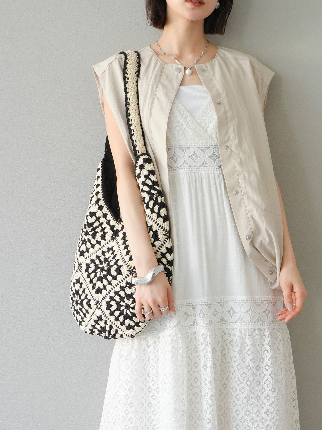 ナチュラルな風合いが魅力のクロシェ編みバッグ。ひとつひとつ丁寧に編み込まれたモチーフが、シーズンムードをぐっと高めてくれるデザインです。 ほどよいサイズ感とやわらかな丸みのあるフォルムで、カジュアルながらも大人っぽい印象に。内側には裏地がついており、荷物の出し入れもしやすく、デイリー使いにぴったりです。 夏のお出かけやリゾートスタイルのアクセントとしてはもちろん、Tシャツやデニムなどのシンプルコーデにも映える万能アイテムです。