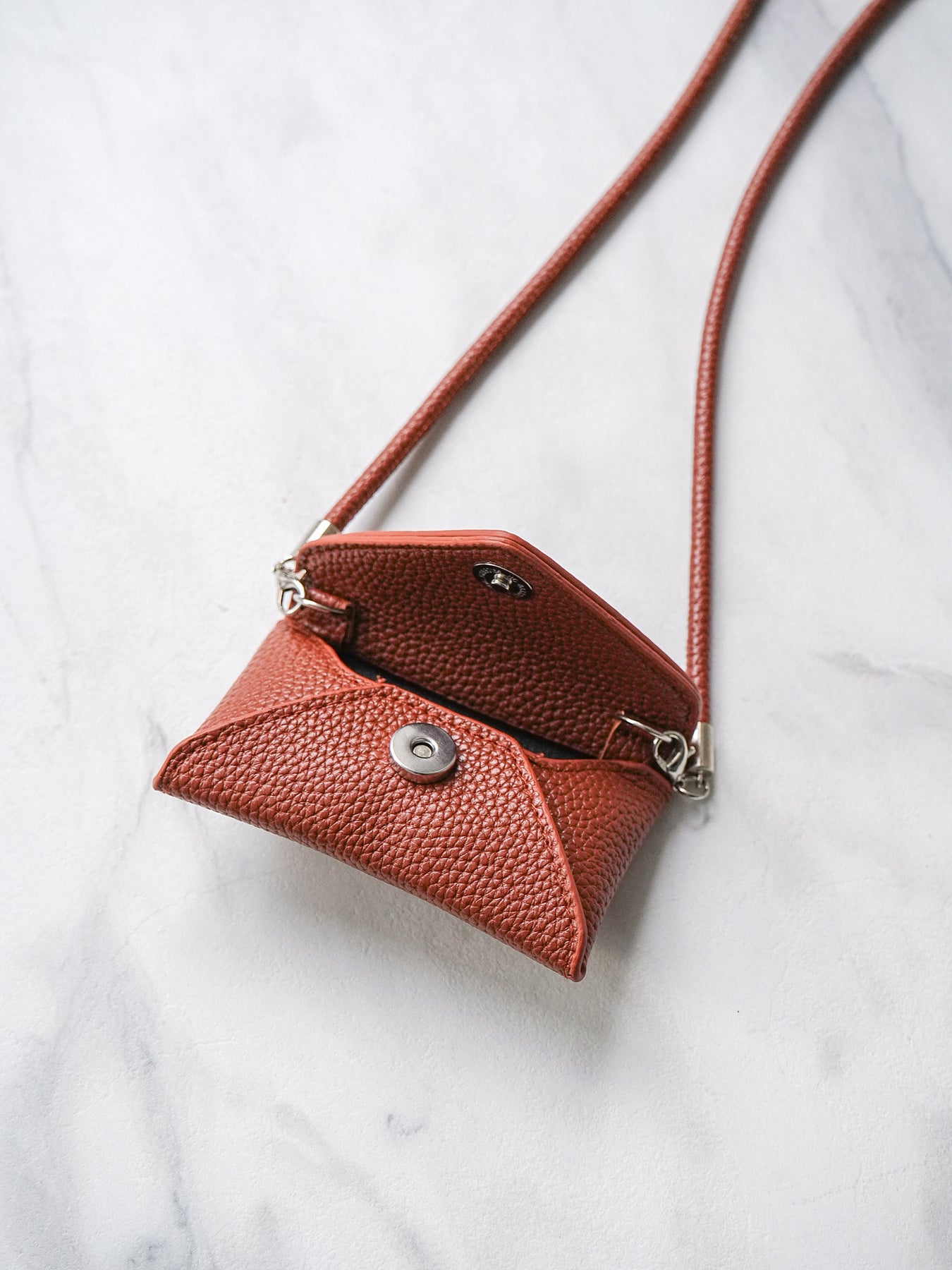 シボ感のあるフェイクレザーを使用した、上品なミニポーチ。コンパクトながらも存在感のあるエンベロープ型デザインで、首や肩にかけてアクセサリー感覚で楽しめます。 キャッシュレス時代にぴったりのサイズ感で、カードやリップなど必要最低限の小物をスマートに持ち運べます。 日常使いはもちろん、旅行時のサブポーチやフェス・イベントシーンにもおすすめです。