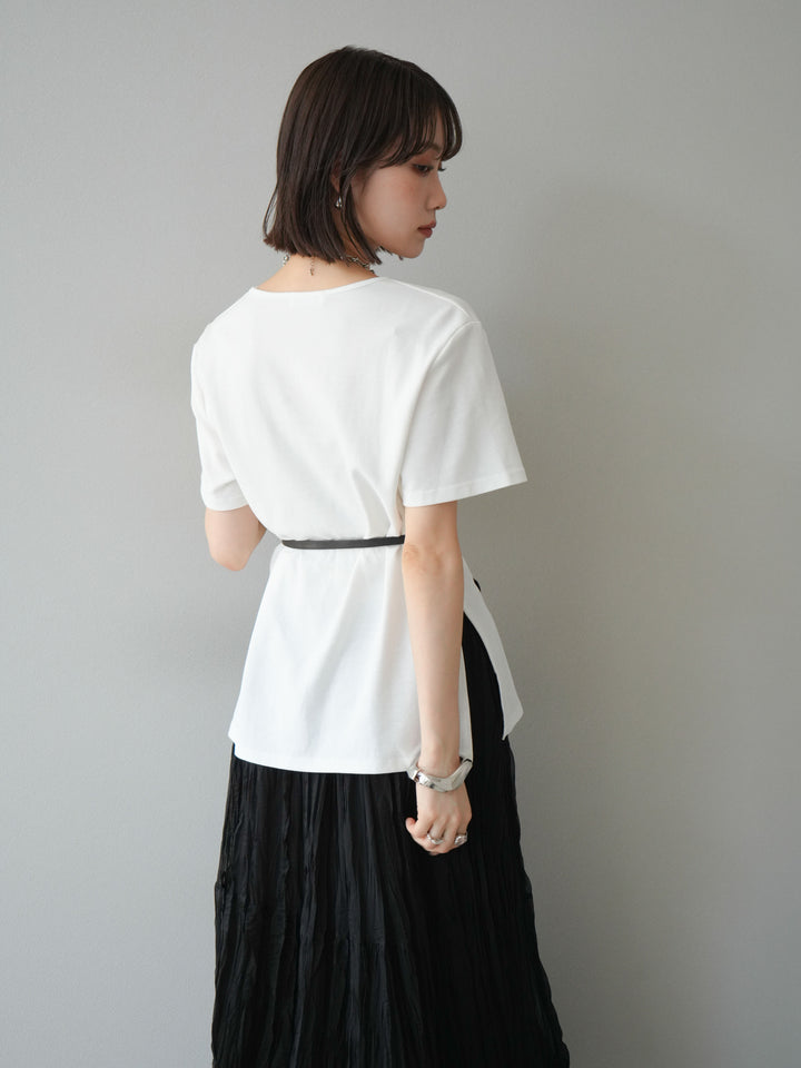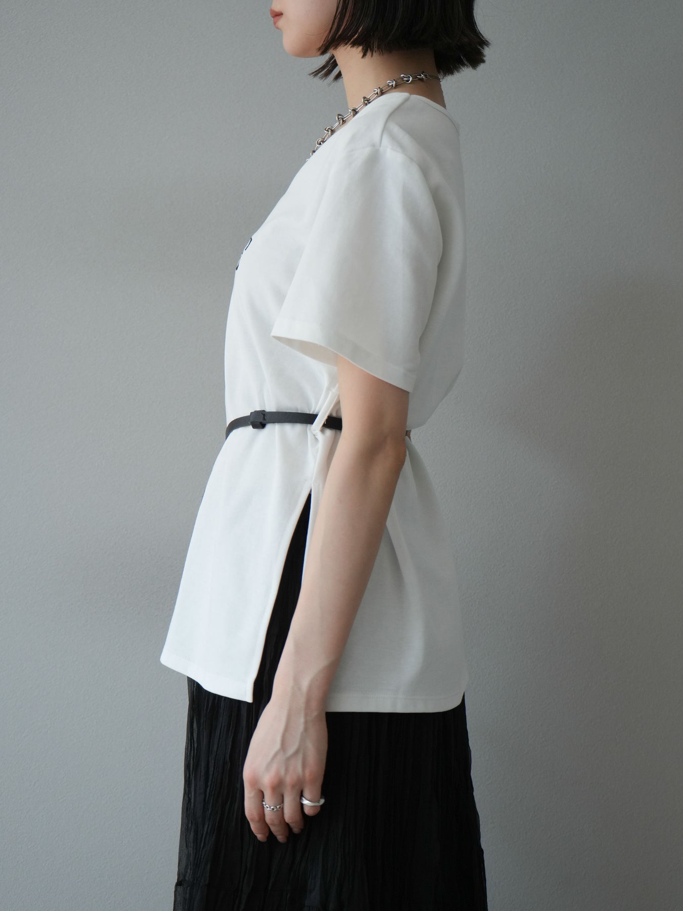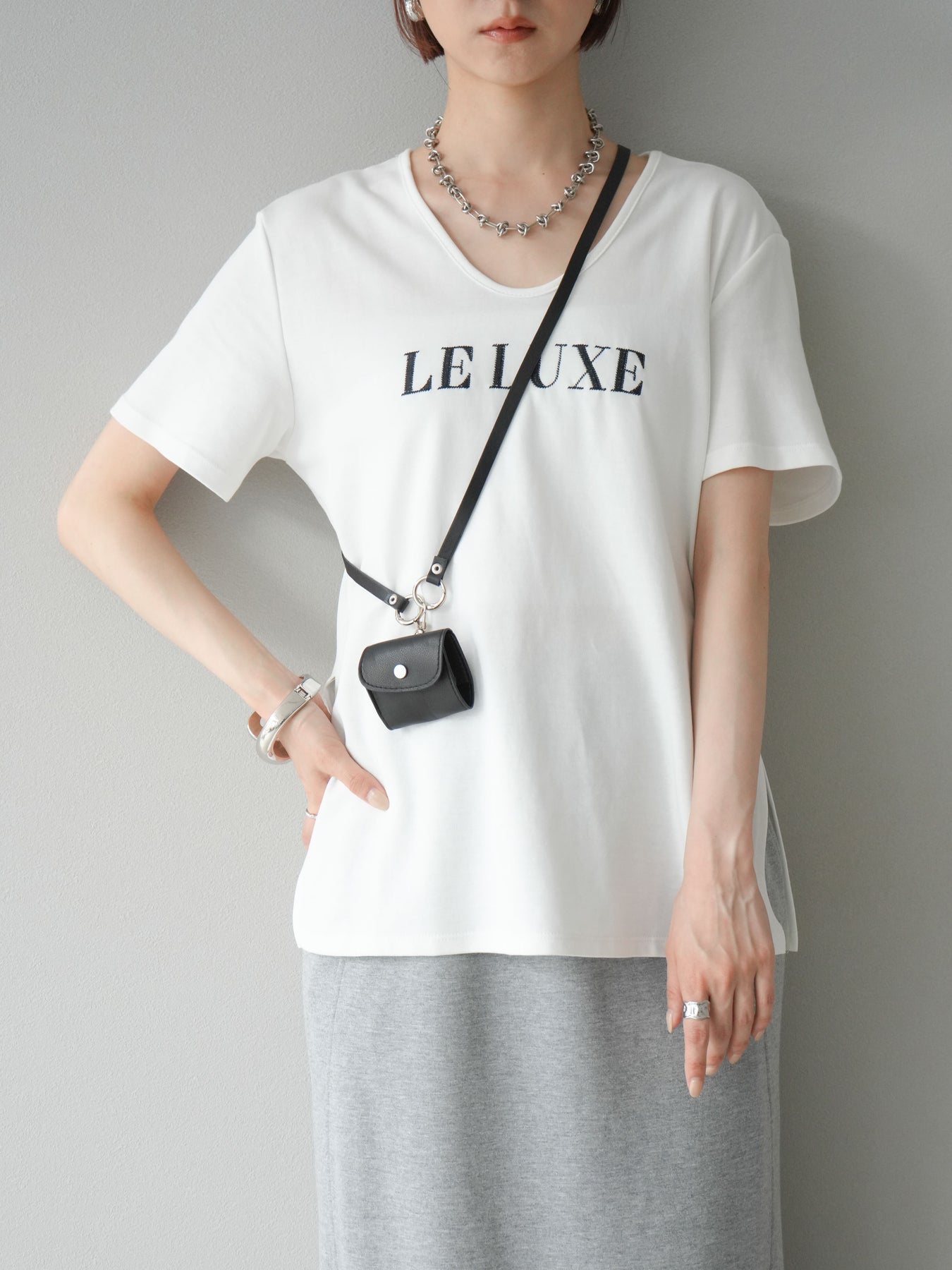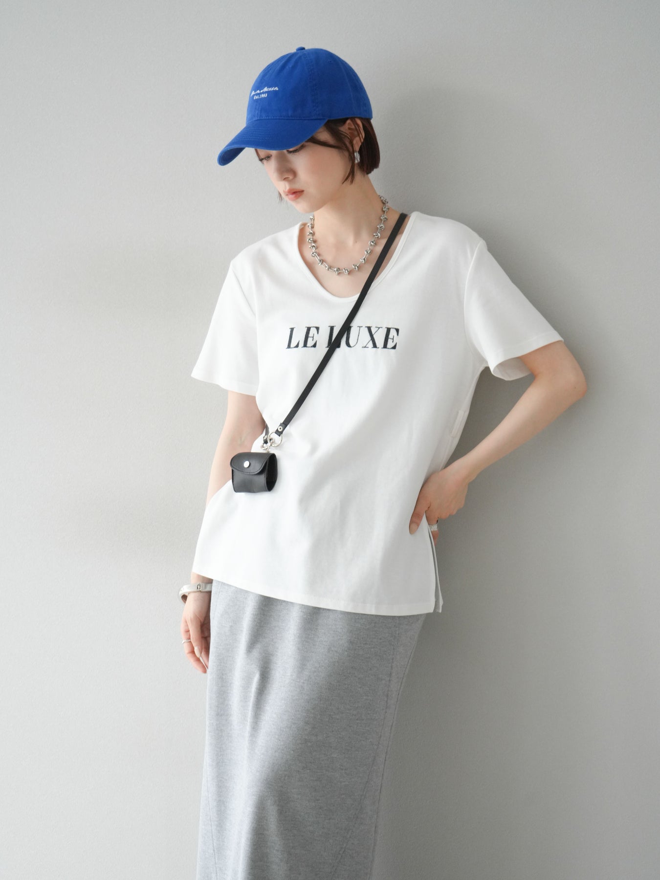 [予約]レザーアクセサリー付Vネック刺繍ロゴTシャツ/ホワイト