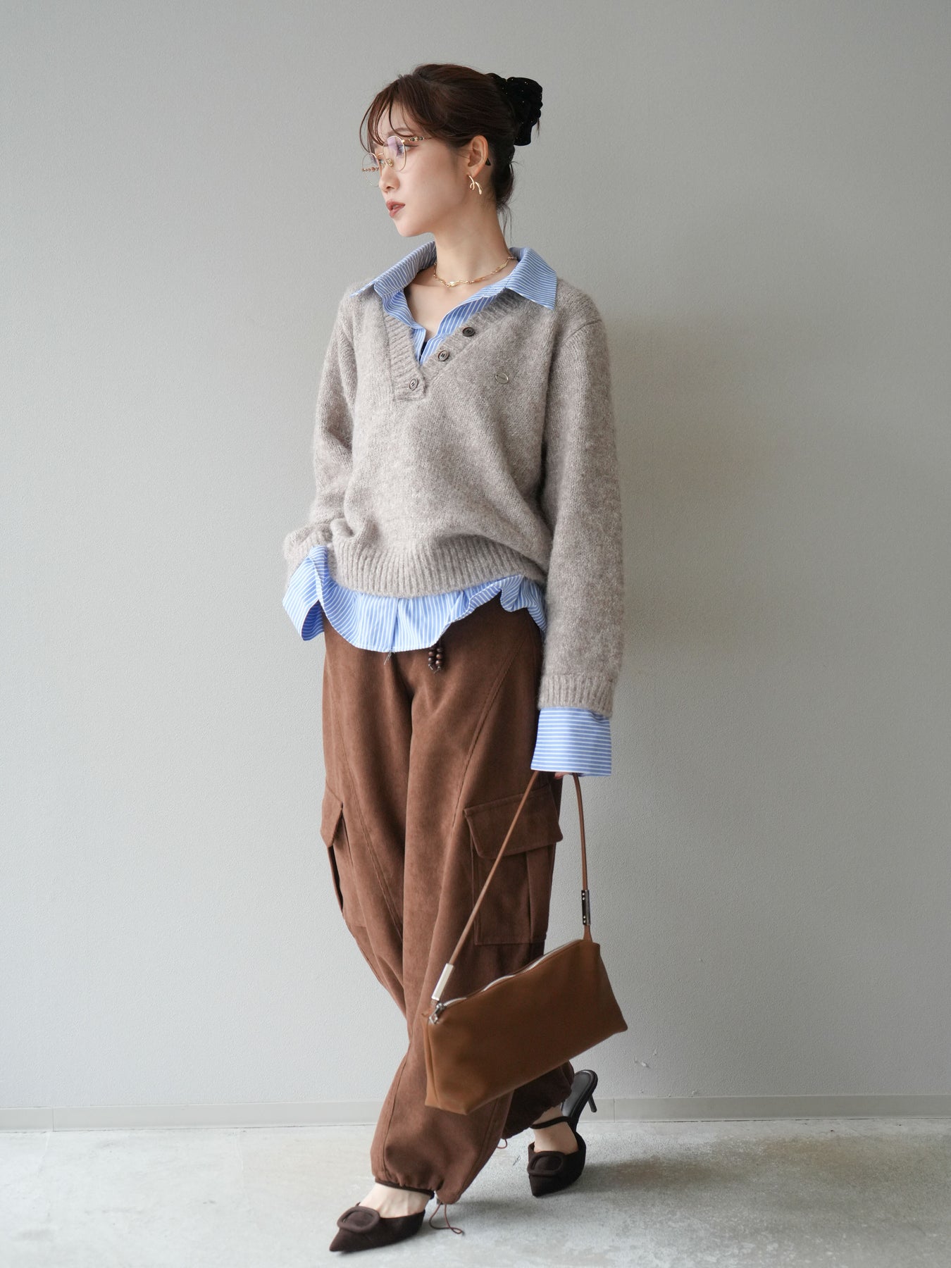 ・お手入れ方法:水温30℃以下手洗いでのお洗濯をお薦めします。素材の特性上、洗濯の際に色落ちが生じる恐れがありますので単独で・短時間でのお洗濯をお薦めします。裏返してネットに入れ手洗いコースで洗濯、洗濯後は形を整えてから干してください。※タンブラー乾燥は控えてください。濡れたままの状態で擦れると、色落ち色移りすることがあります。つけ置き洗いや雨や汗で濡れたまま放置は避け、速やかに処理してください。着用中の摩擦や汗、水濡れ、濃淡差があるものとの重ね着にご注意ください。