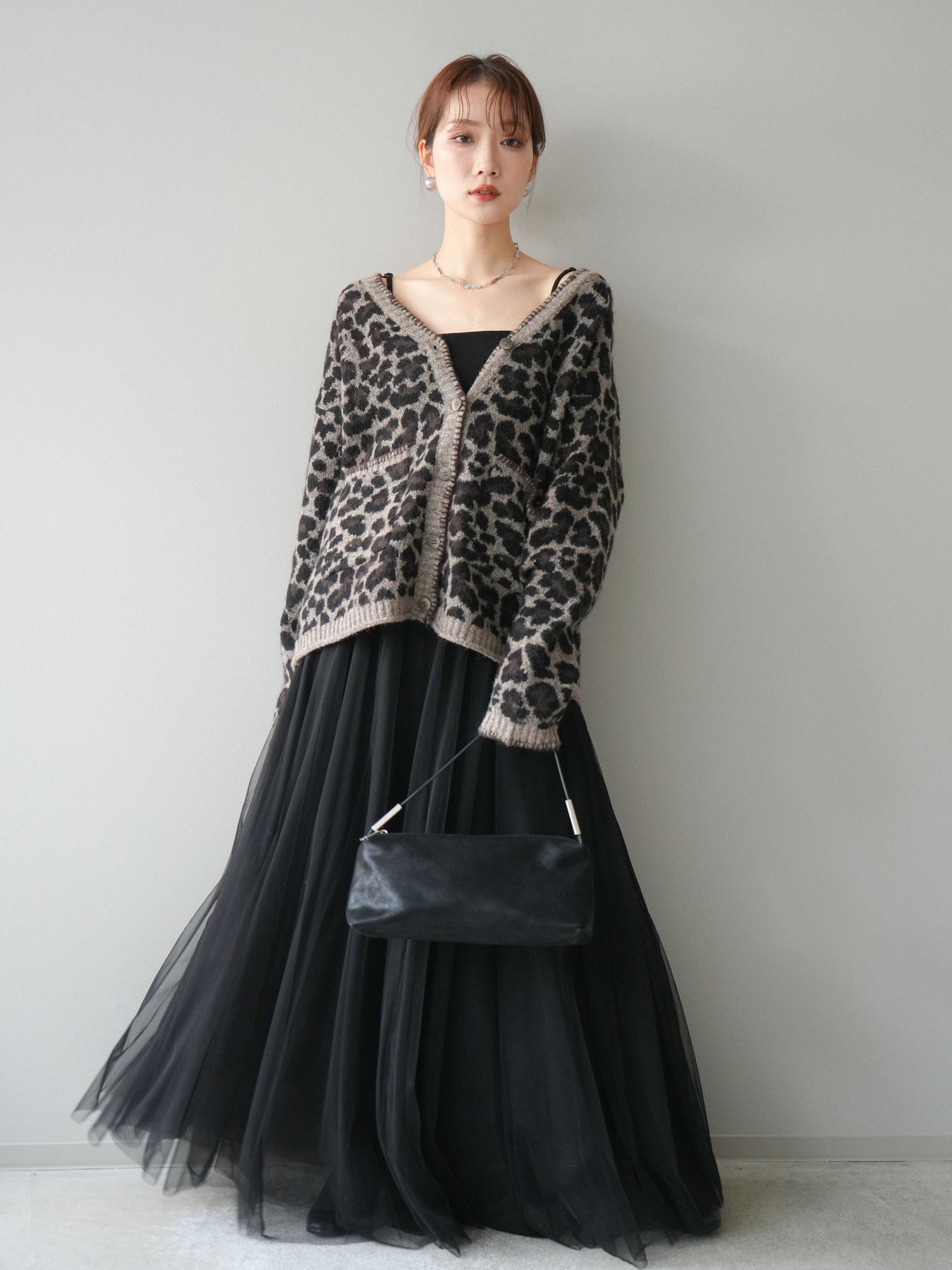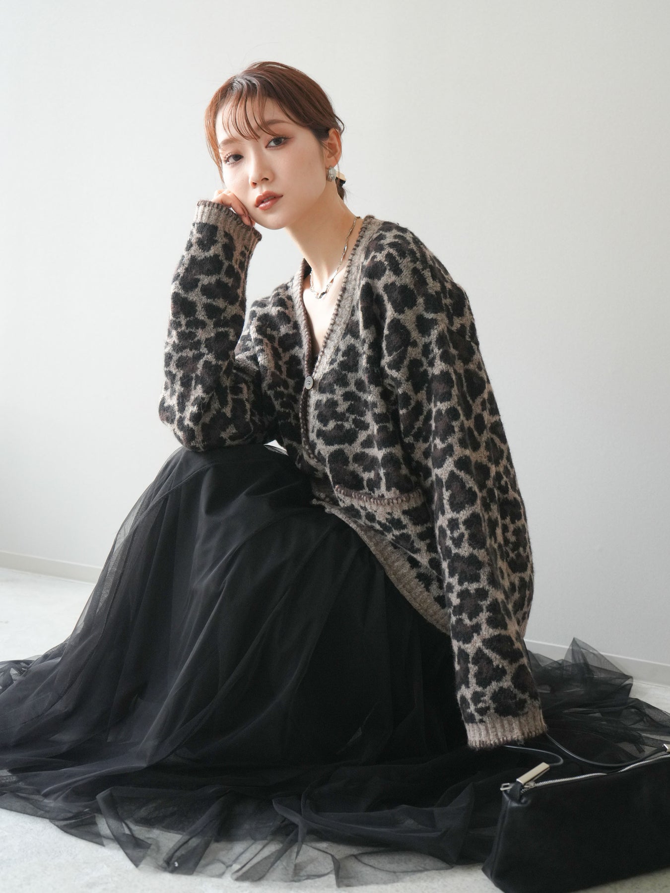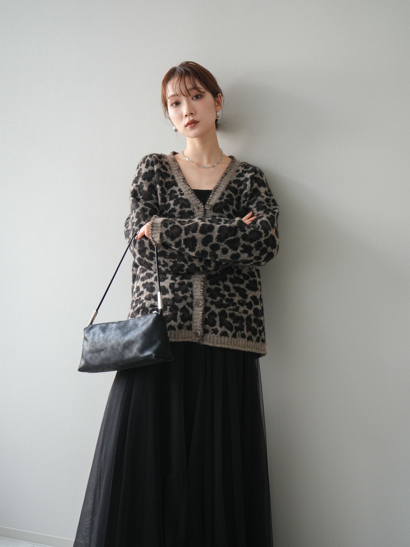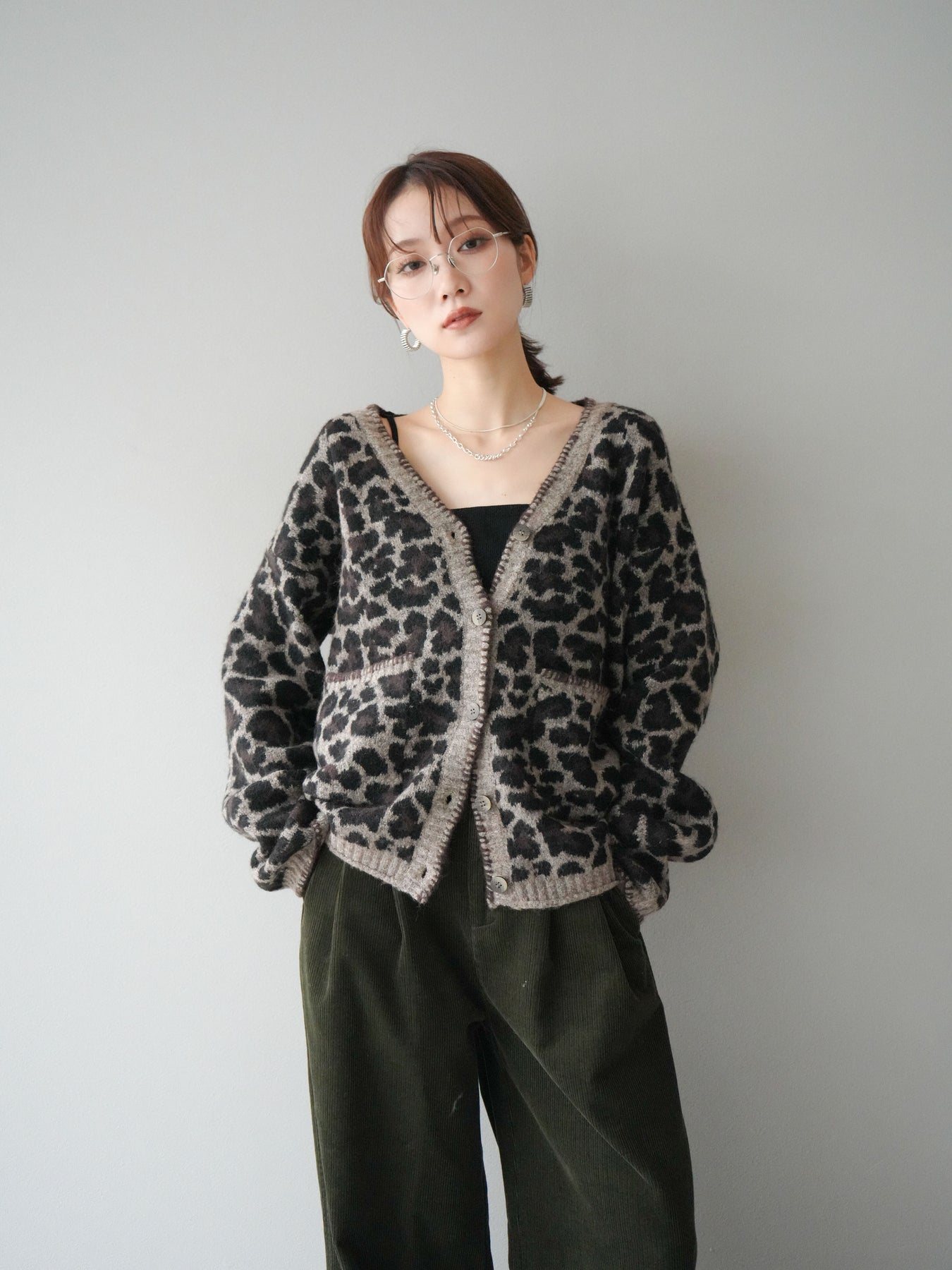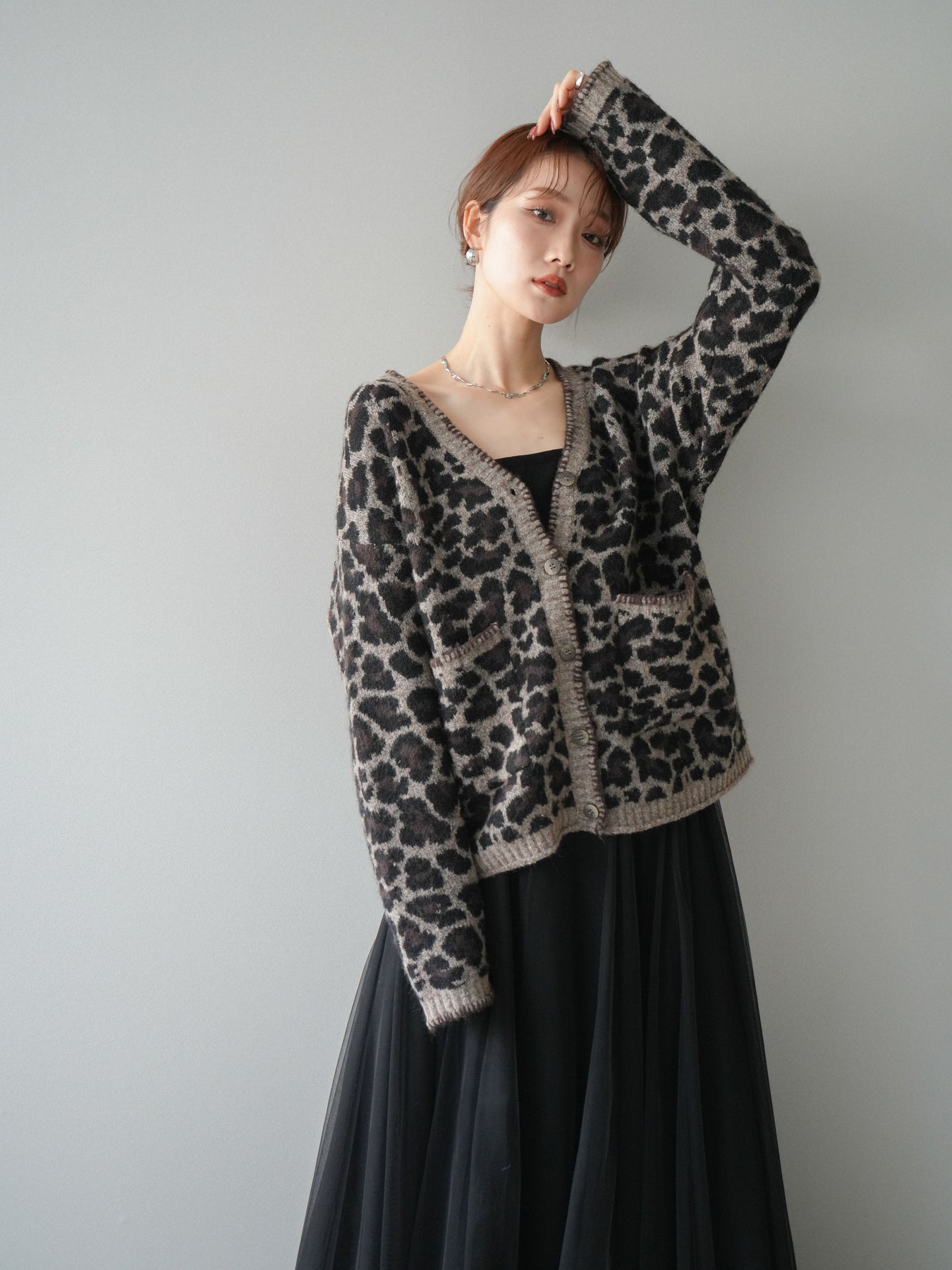 シーズンムード漂うアニマル柄が印象的なニットカーディガン。 ふんわりとした素材感と程よい厚みで、羽織るだけでこなれた印象を与えます。 フロントや袖口のステッチデザインがアクセントとなり、カジュアルさの中にさりげない上品さをプラス。 ゆとりのあるシルエットが抜け感を演出し、デイリーにもお出かけにも活躍します。 シンプルなインナーやボトムに合わせるだけで、トレンド感のあるスタイルが完成する一枚です。 ※ボトムス、キャミソール(インナー)以外の商品は一律でインナーは付属していません。