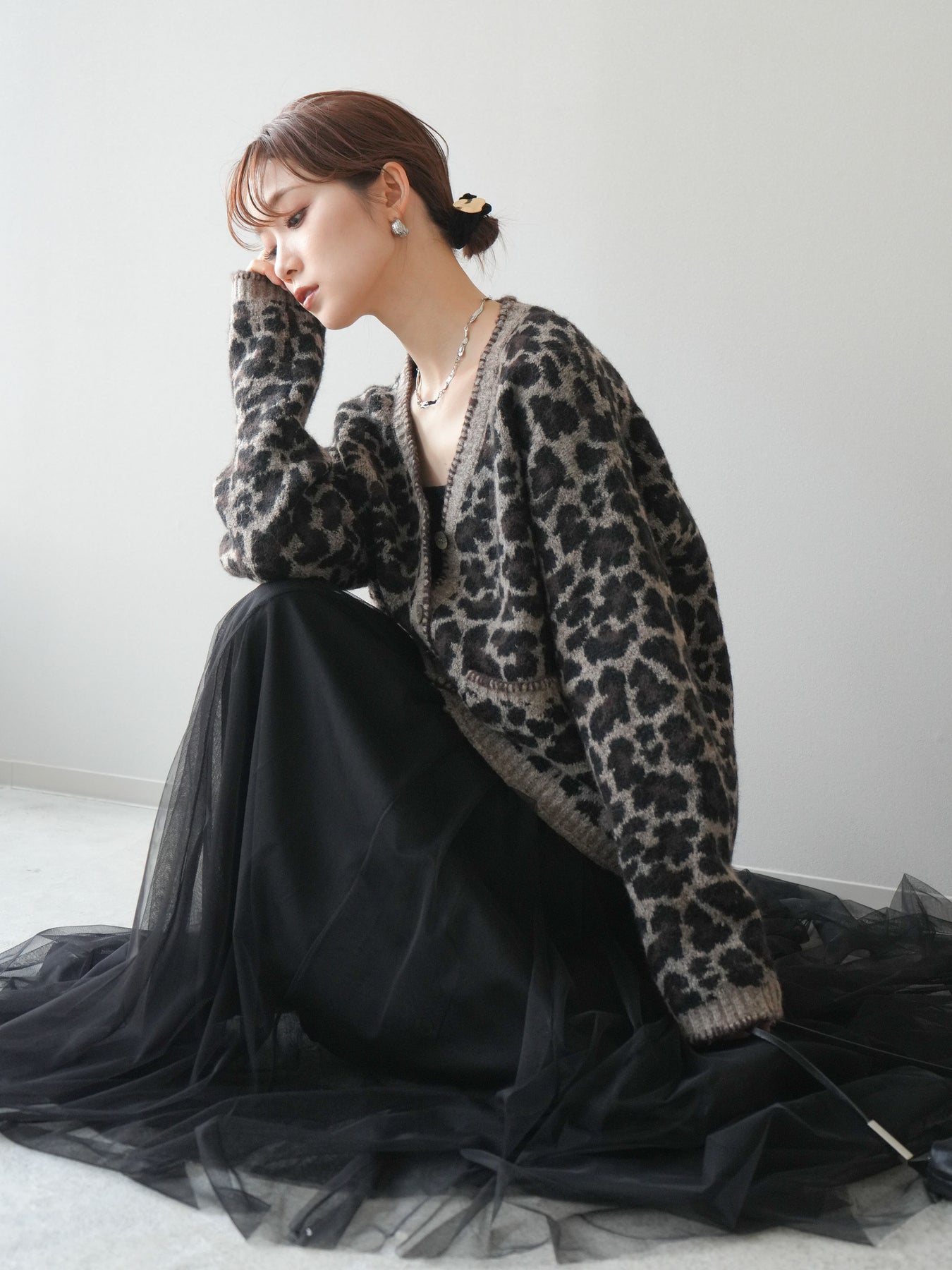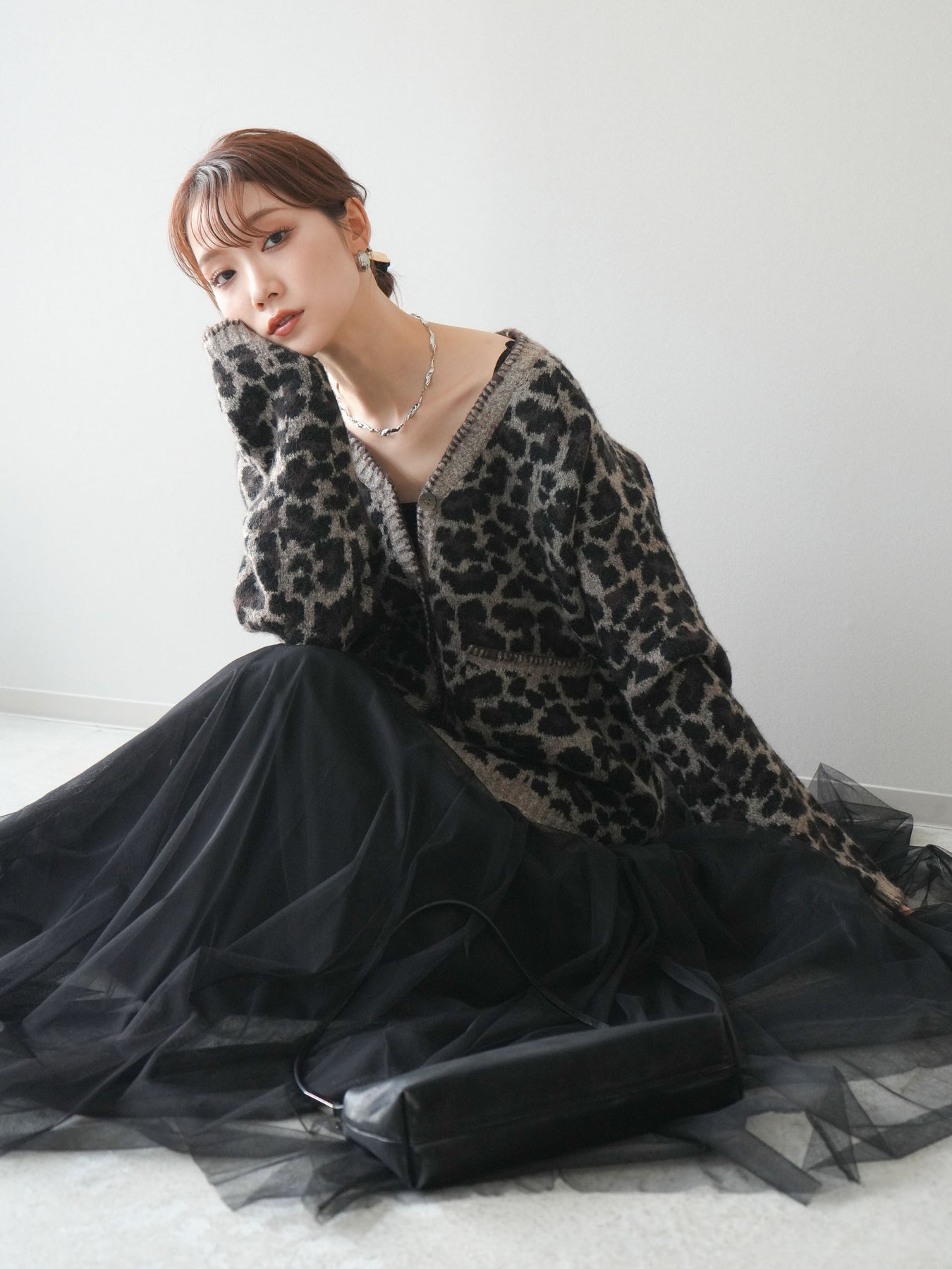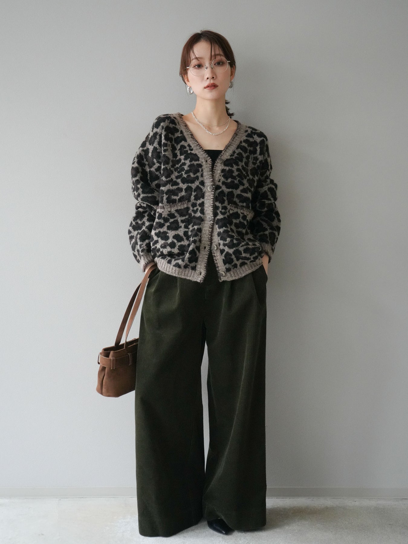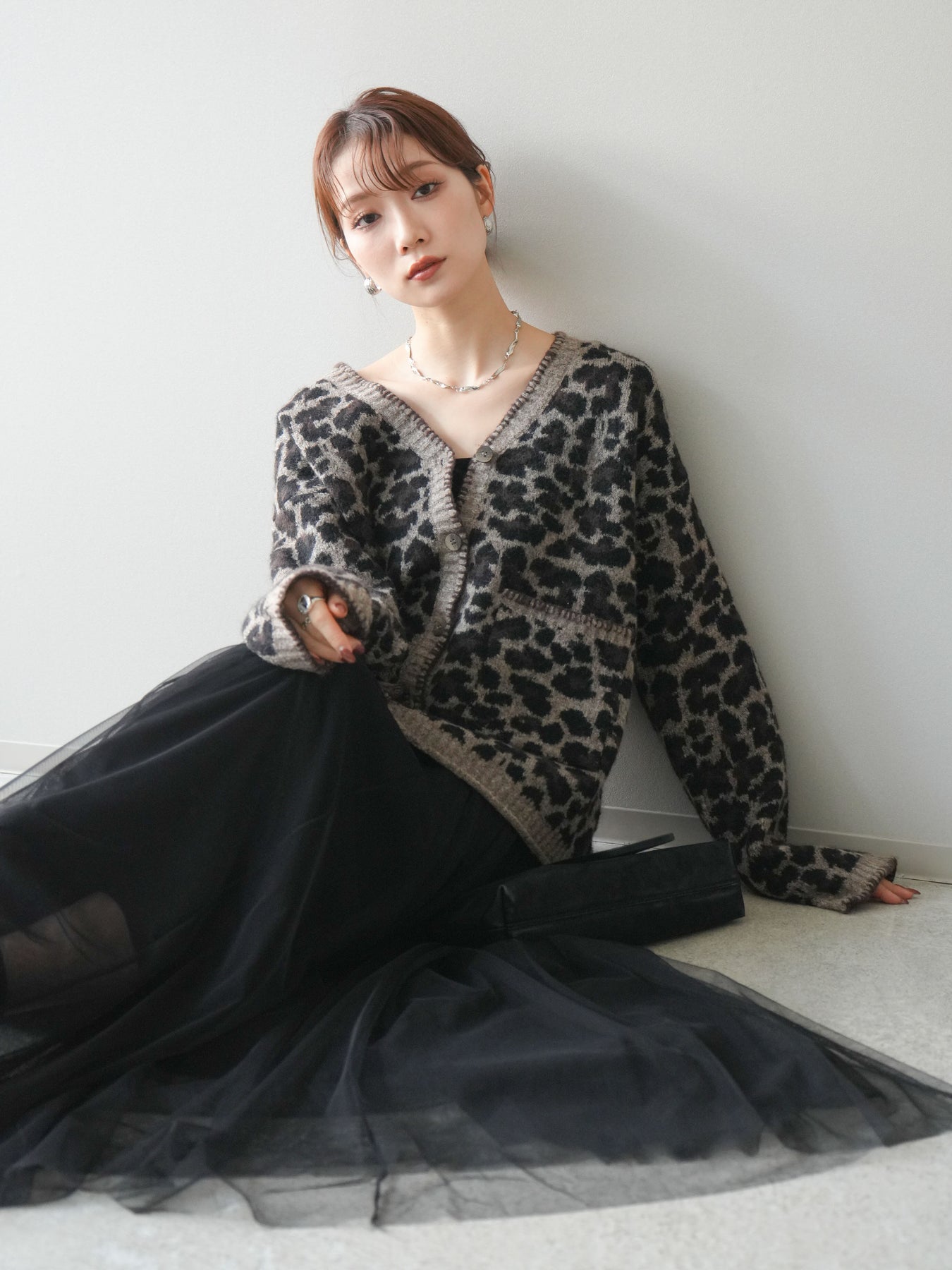 シーズンムード漂うアニマル柄が印象的なニットカーディガン。 ふんわりとした素材感と程よい厚みで、羽織るだけでこなれた印象を与えます。 フロントや袖口のステッチデザインがアクセントとなり、カジュアルさの中にさりげない上品さをプラス。 ゆとりのあるシルエットが抜け感を演出し、デイリーにもお出かけにも活躍します。 シンプルなインナーやボトムに合わせるだけで、トレンド感のあるスタイルが完成する一枚です。 ※ボトムス、キャミソール(インナー)以外の商品は一律でインナーは付属していません。