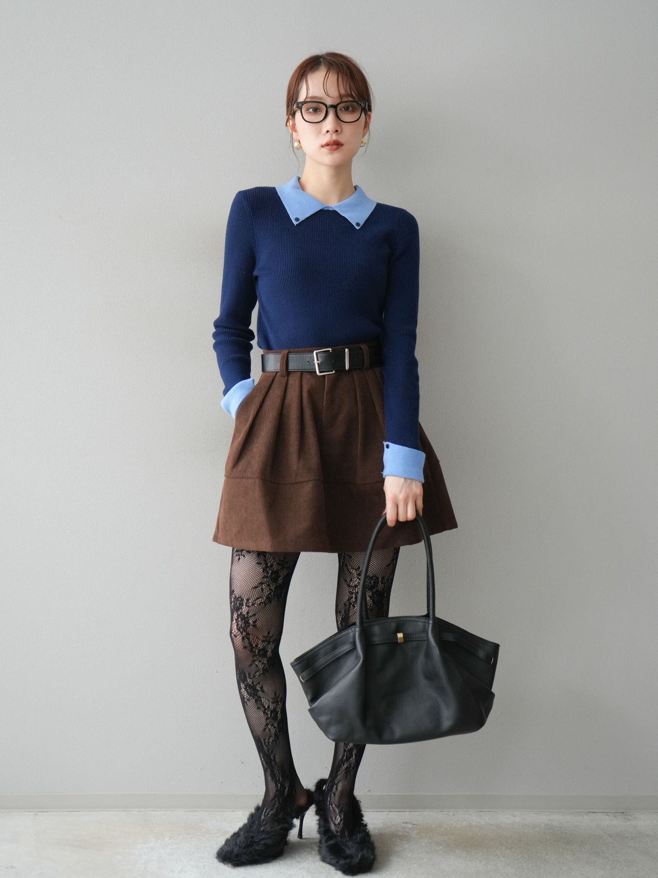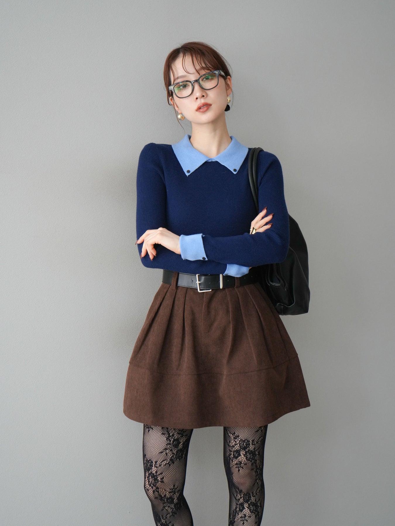 配色デザインが上品な印象を与える襟付きリブニットトップス。 異素材風の襟とカフスデザインがアクセントとなり、1枚でレイヤードスタイルのような着こなしを楽しめます。 伸縮性のあるリブ素材が体に程よくフィットし、美しいシルエットを演出。 コンパクトな丈感でバランスが取りやすく、ハイウエストボトムとの相性も抜群です。 カジュアルからきれいめまで幅広く着回せる、上品さとトレンド感を兼ね備えた一枚です。 ※ボトムス、キャミソール(インナー)以外の商品は一律でインナーは付属していません。