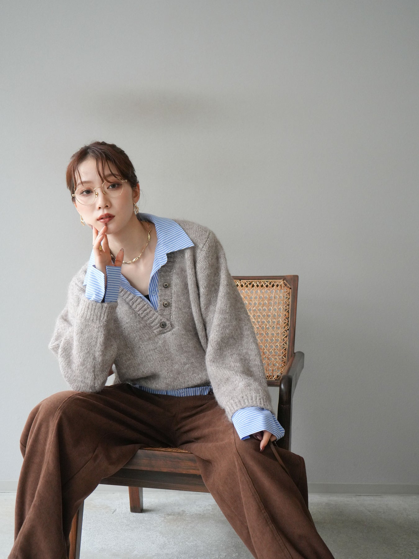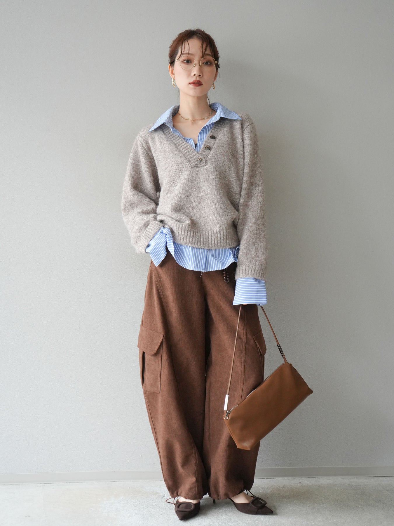 ストライプシャツをレイヤードしたようなデザインが魅力のドッキングニットプルオーバー。 表情豊かなミックスヤーン素材がシーズンムードを高め、着るだけでこなれた印象に仕上がります。 シャツの襟元や裾、袖口から覗くストライプがアクセントとなり、上品な抜け感を演出。 ゆったりとしたシルエットでリラックス感がありながらも、程よいきちんと感を兼ね備えています。 デニムやスカートなど、カジュアルからフェミニンまで幅広く着回せる万能トップスです。 ※ボトムス、キャミソール(インナー)以外の商品は一律でインナーは付属していません。