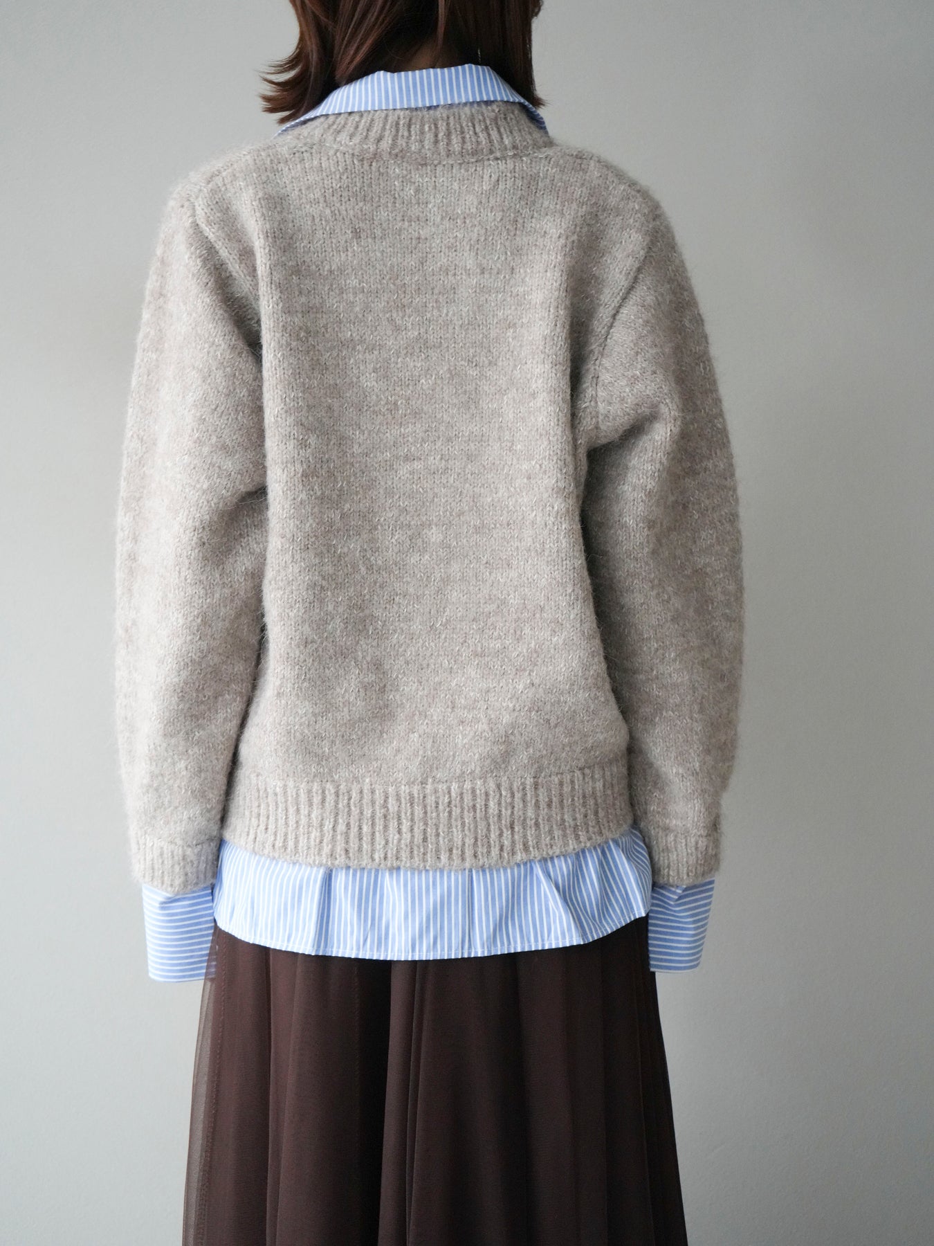 [予約]ストライプシャツドッキングMIXヤーンニットプルオーバー/beige