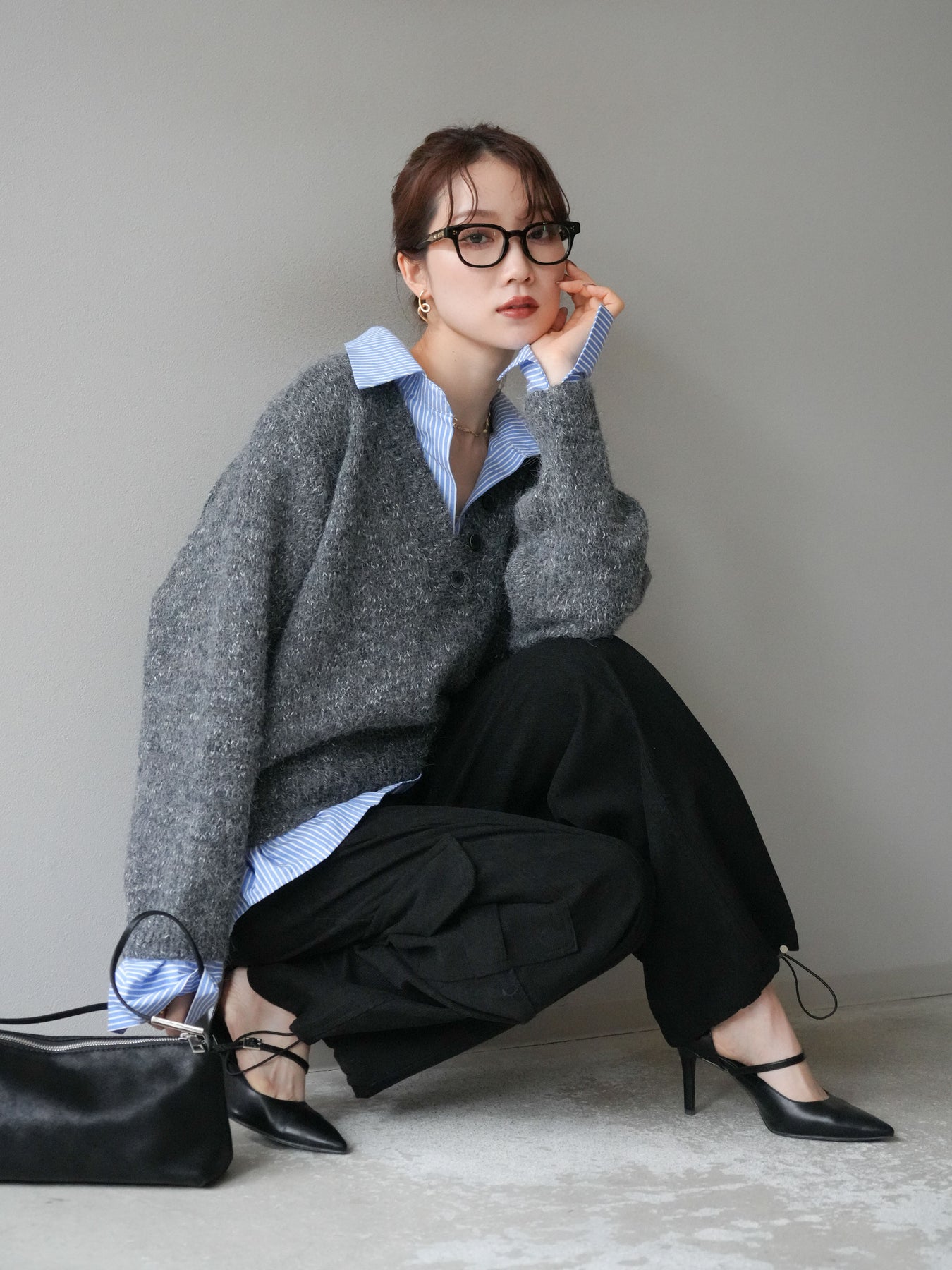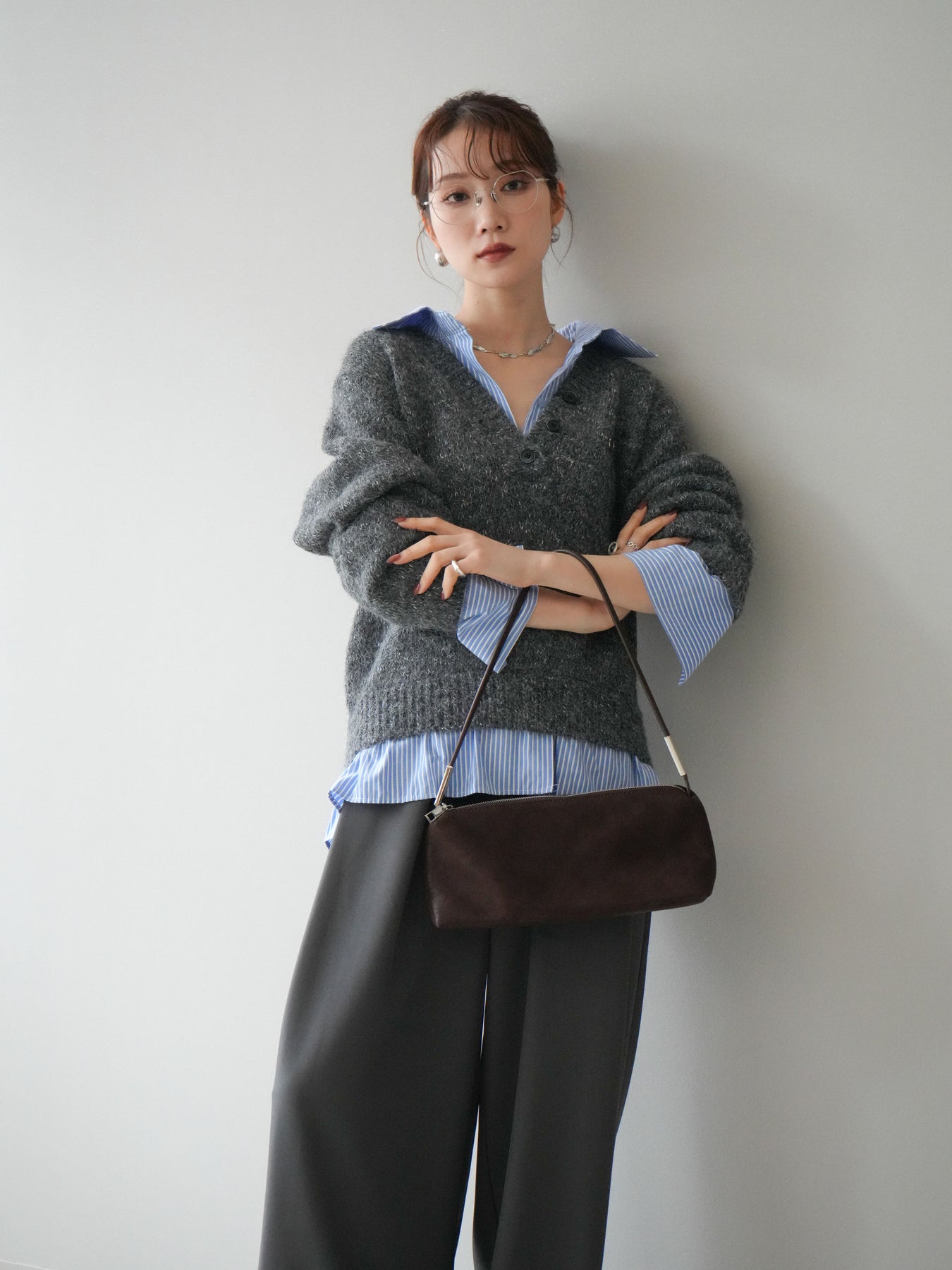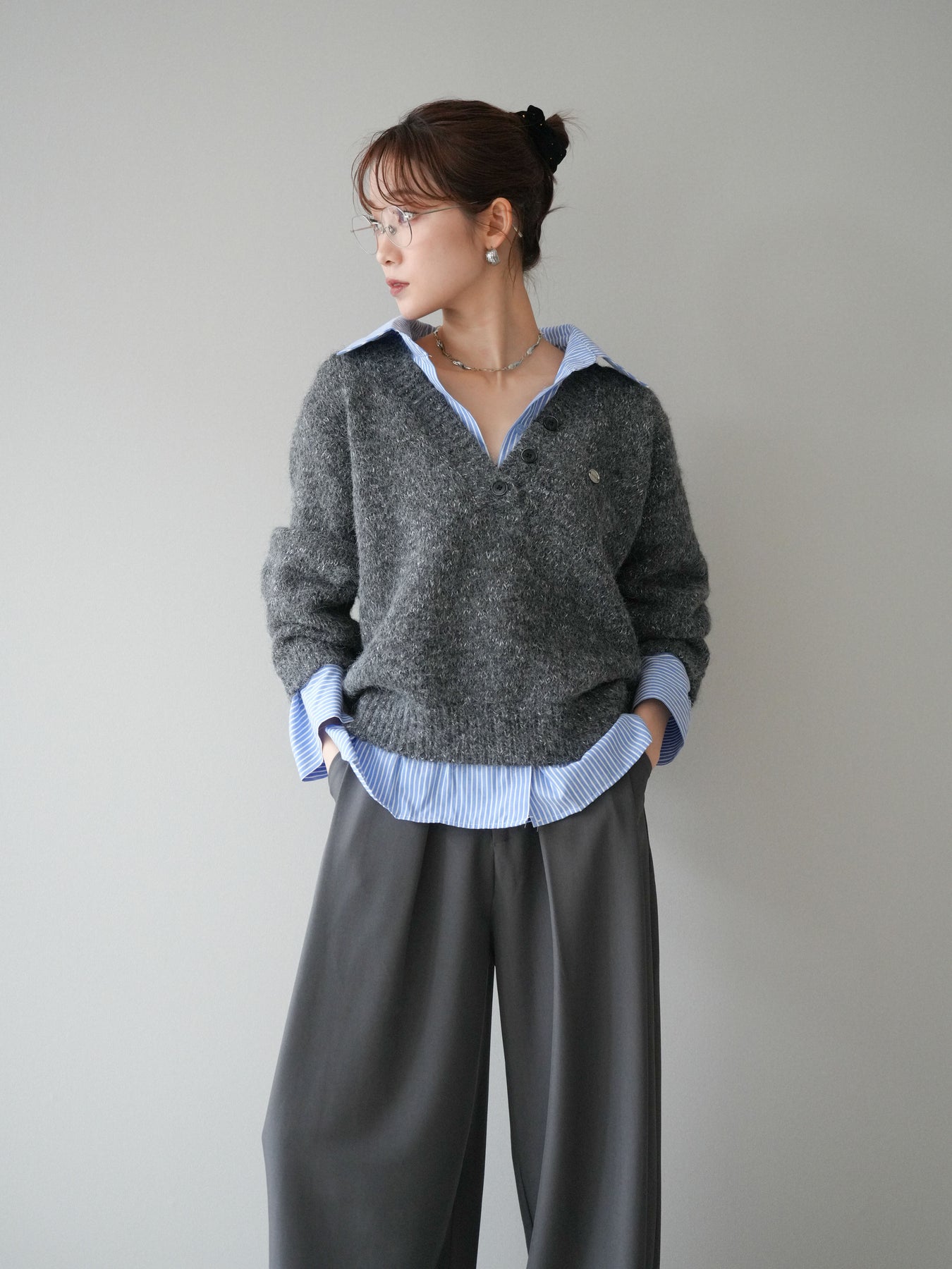 [予約]ストライプシャツドッキングMIXヤーンニットプルオーバー/charcoal