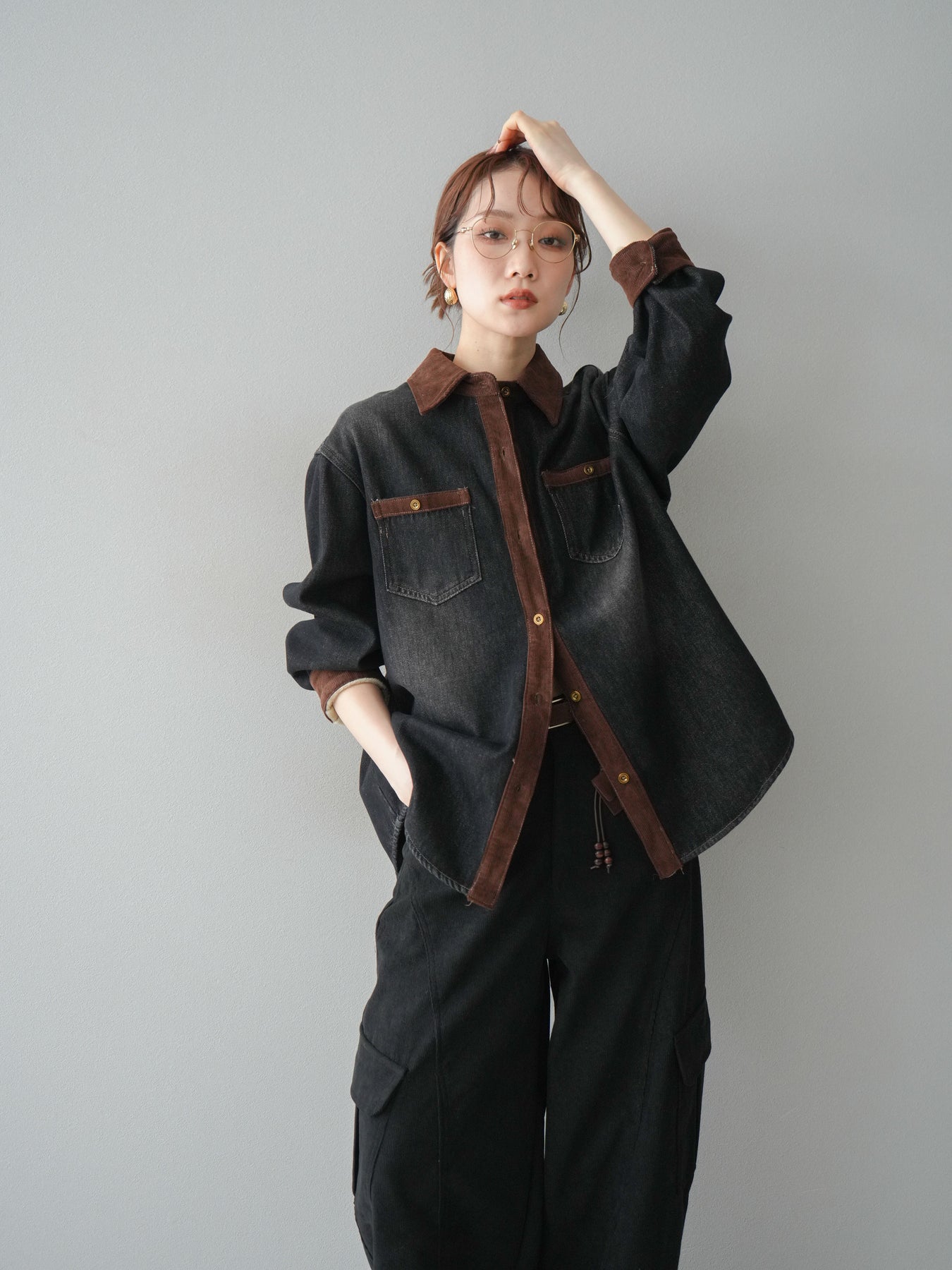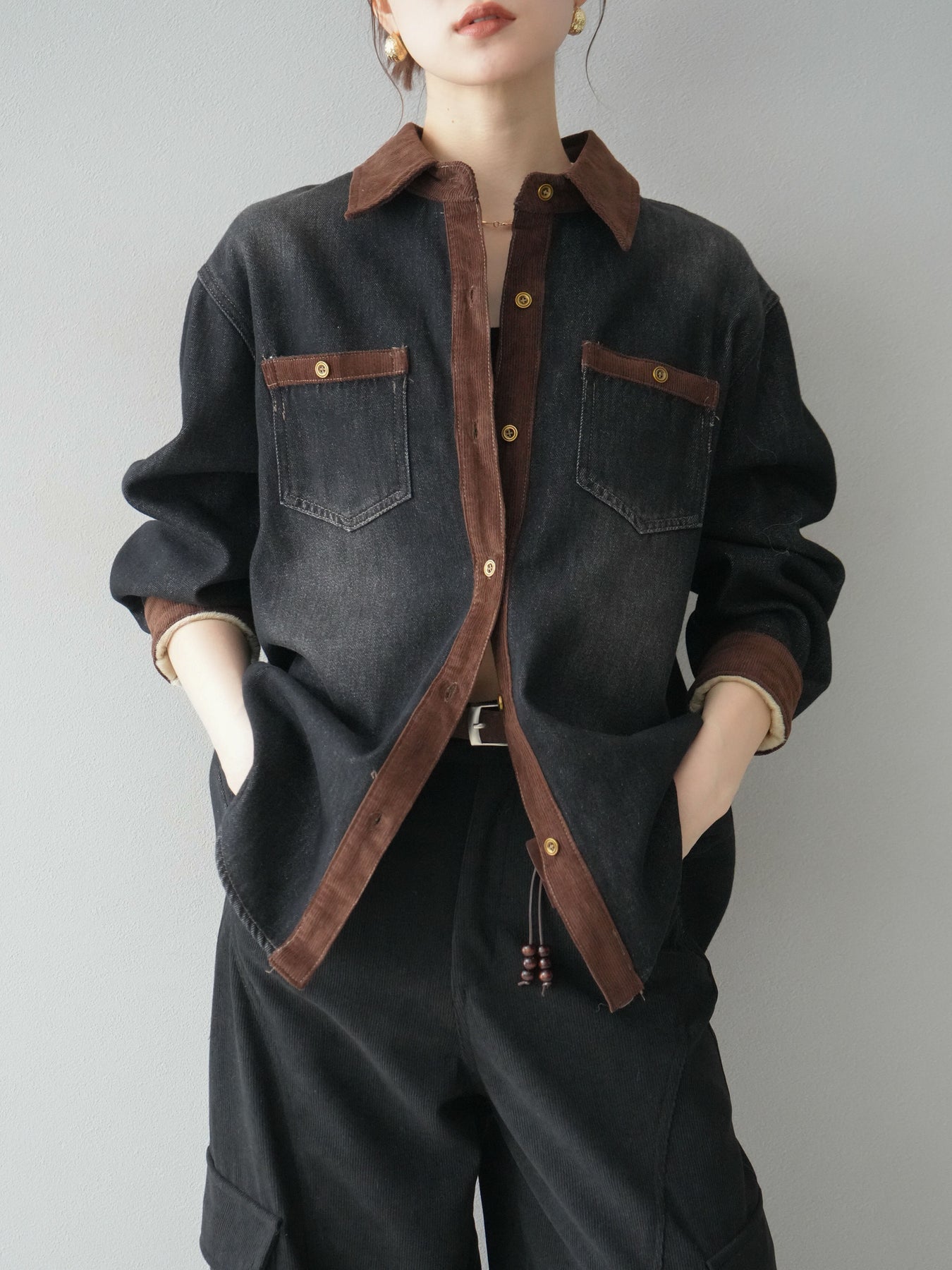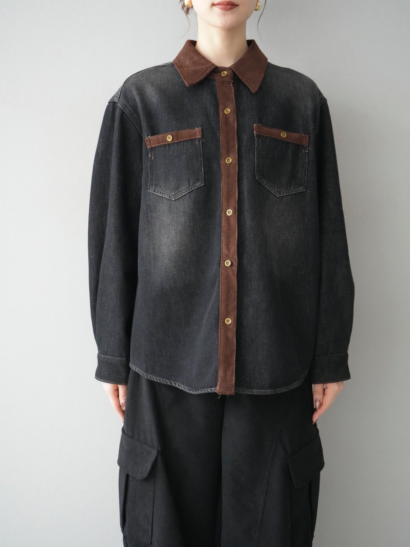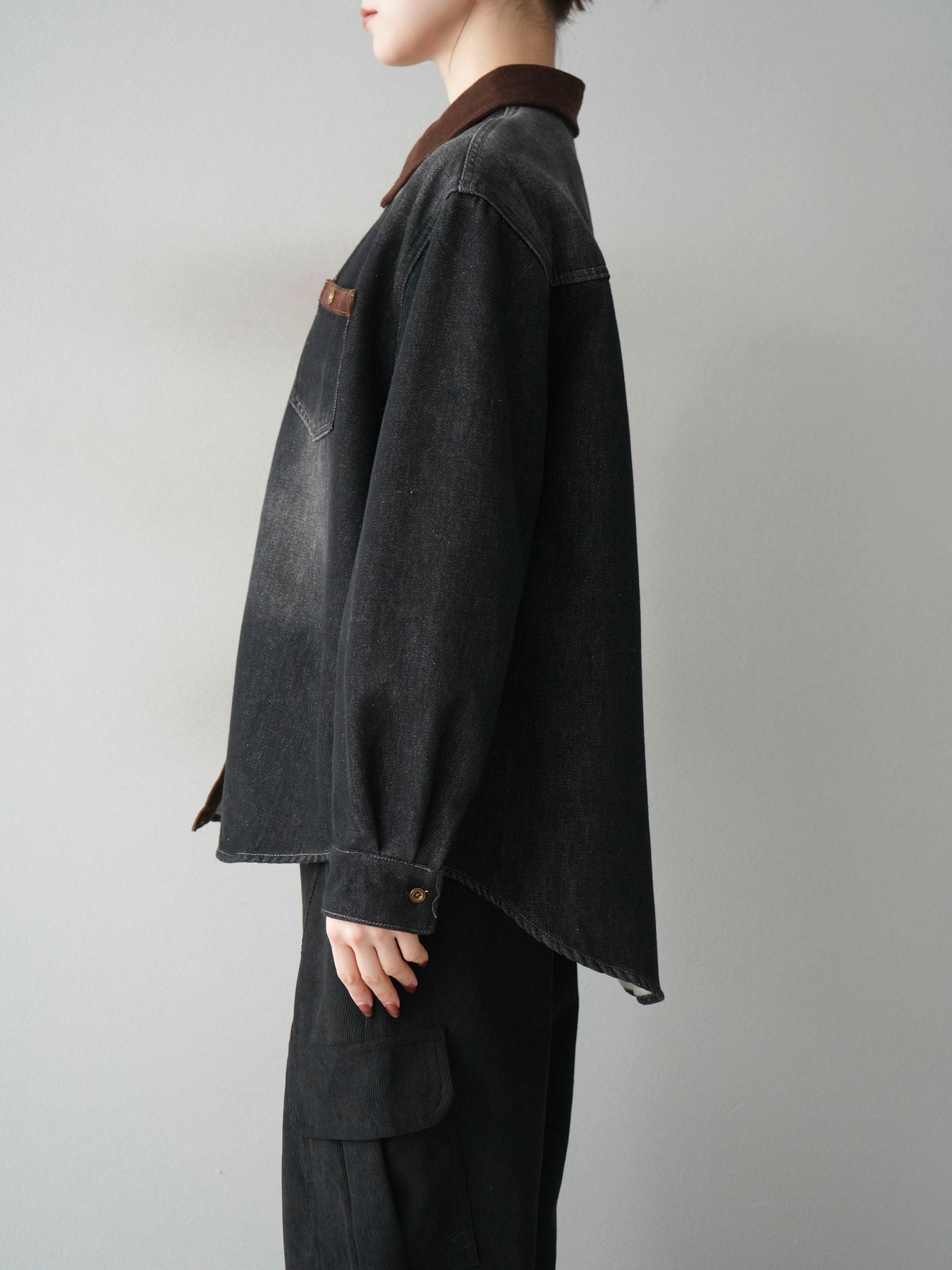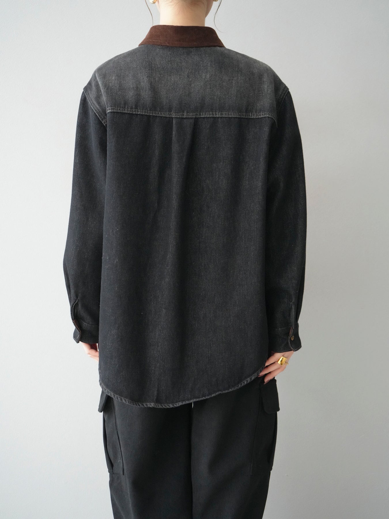 [予約]裏起毛コーデュロイ襟デニムシャツジャケット/black