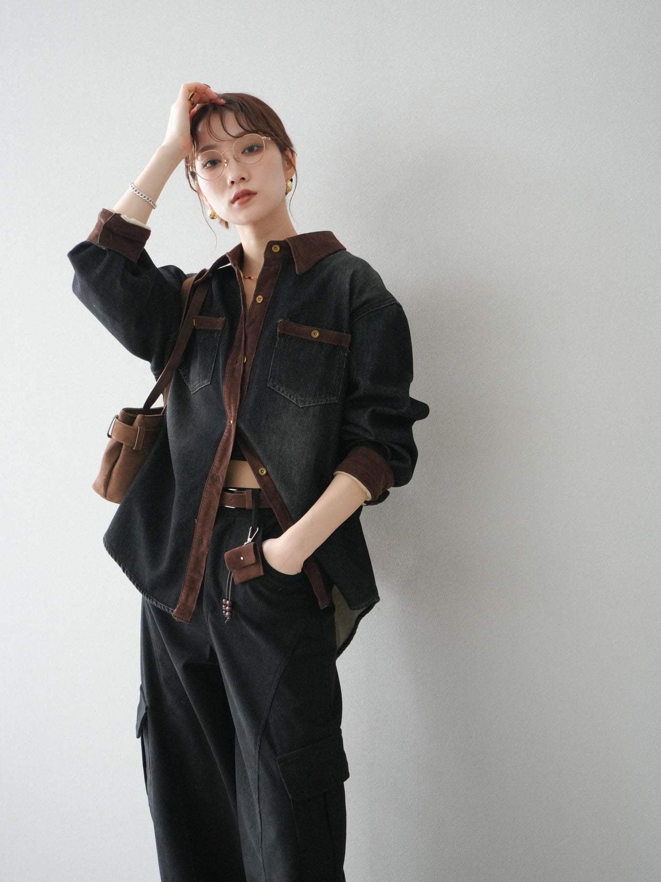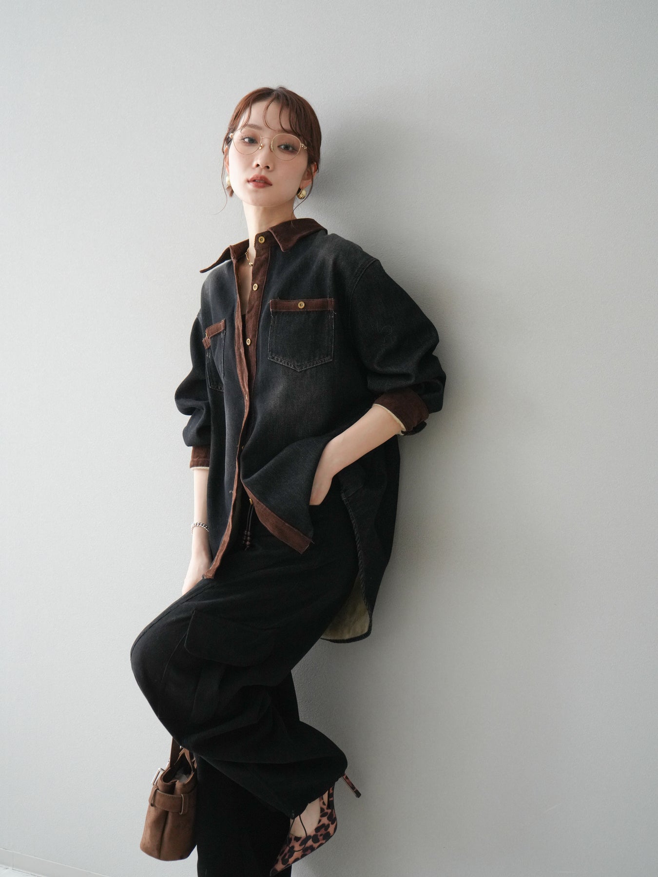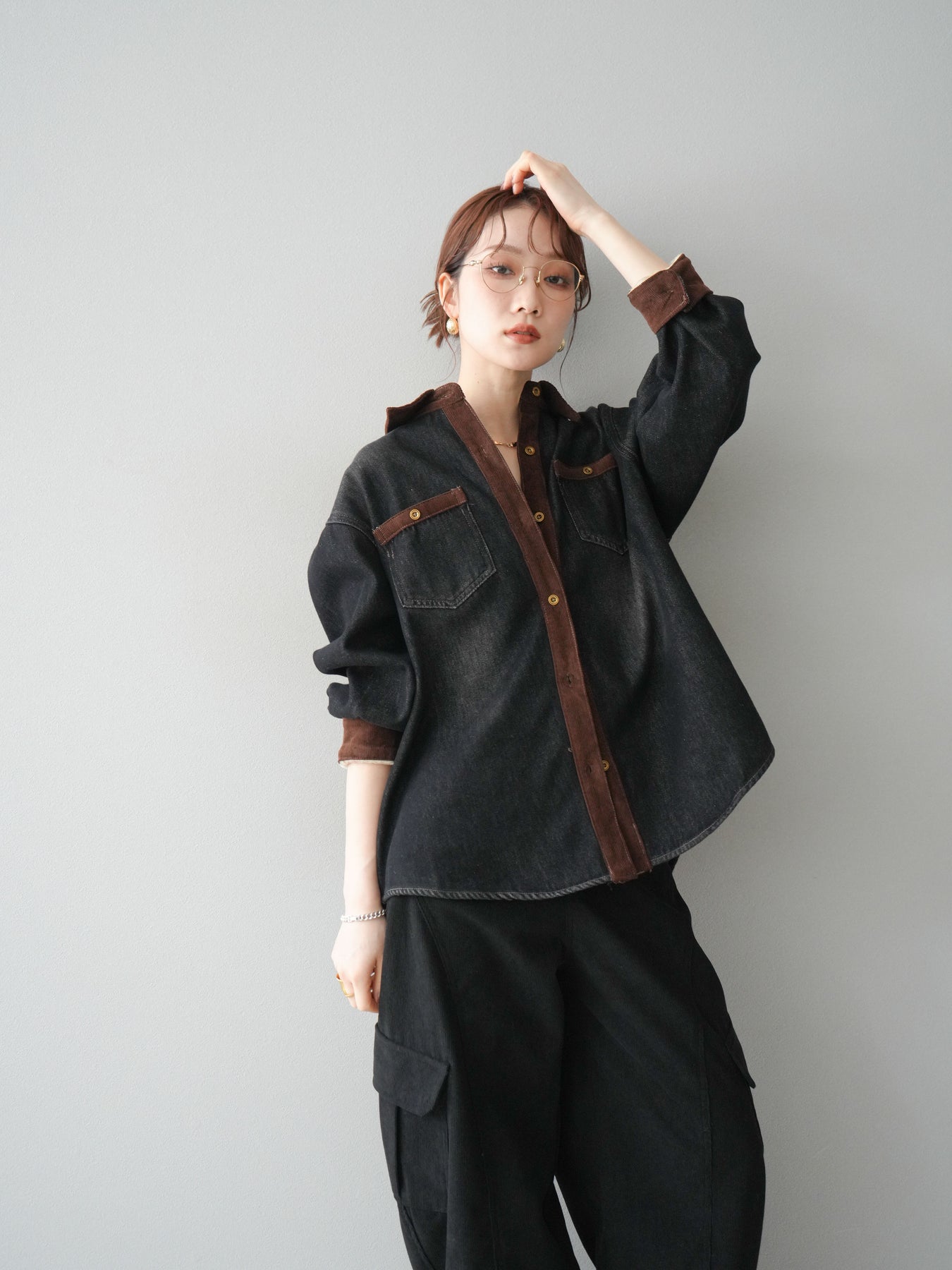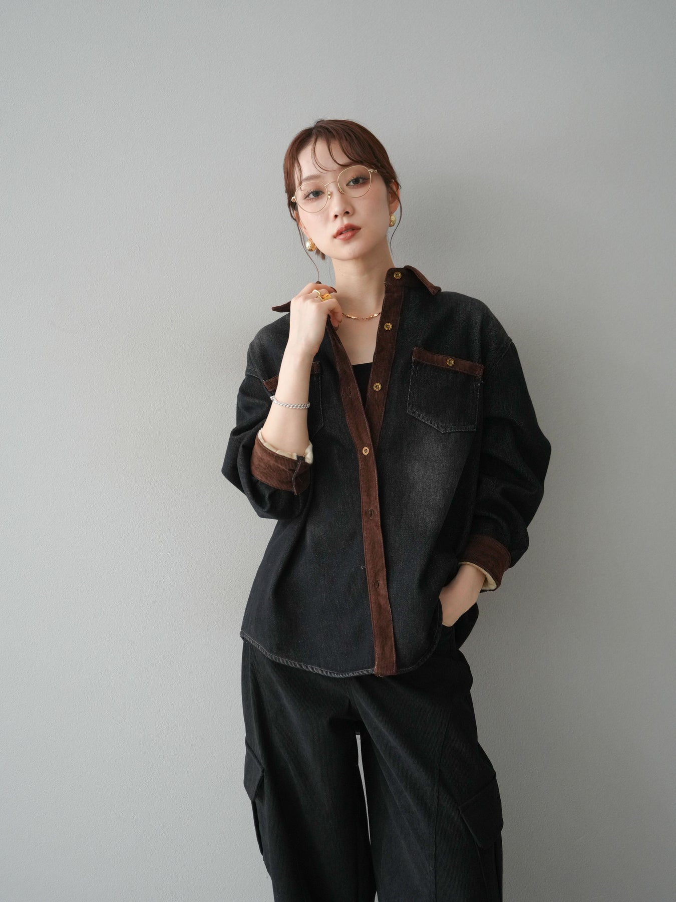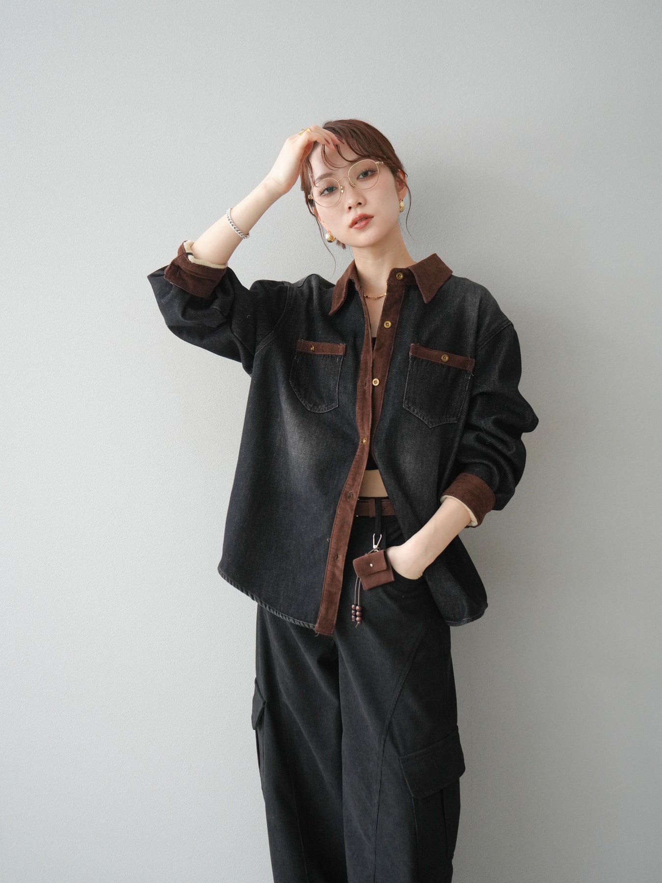 [予約]裏起毛コーデュロイ襟デニムシャツジャケット/black