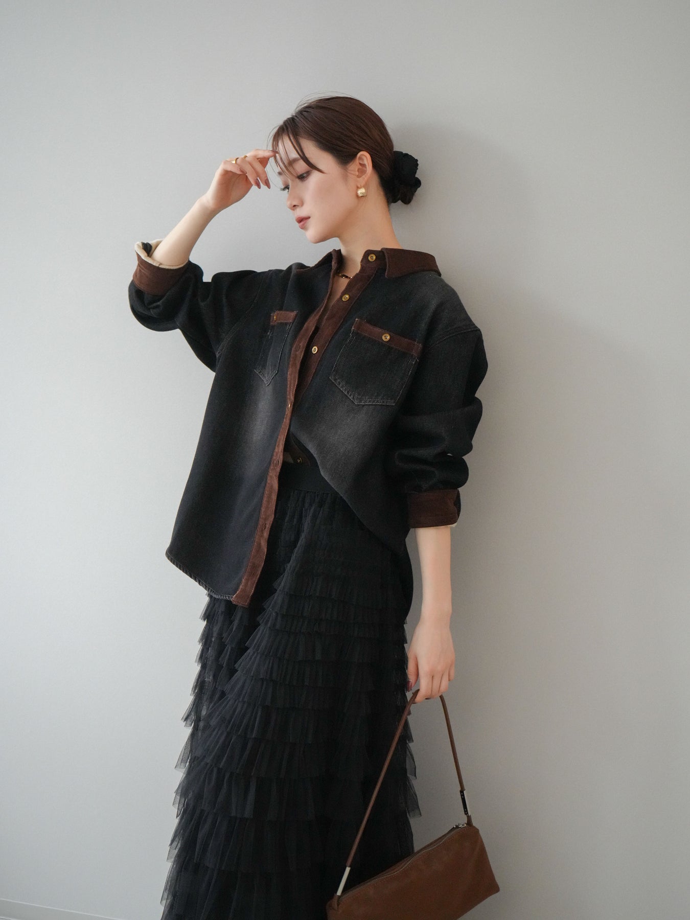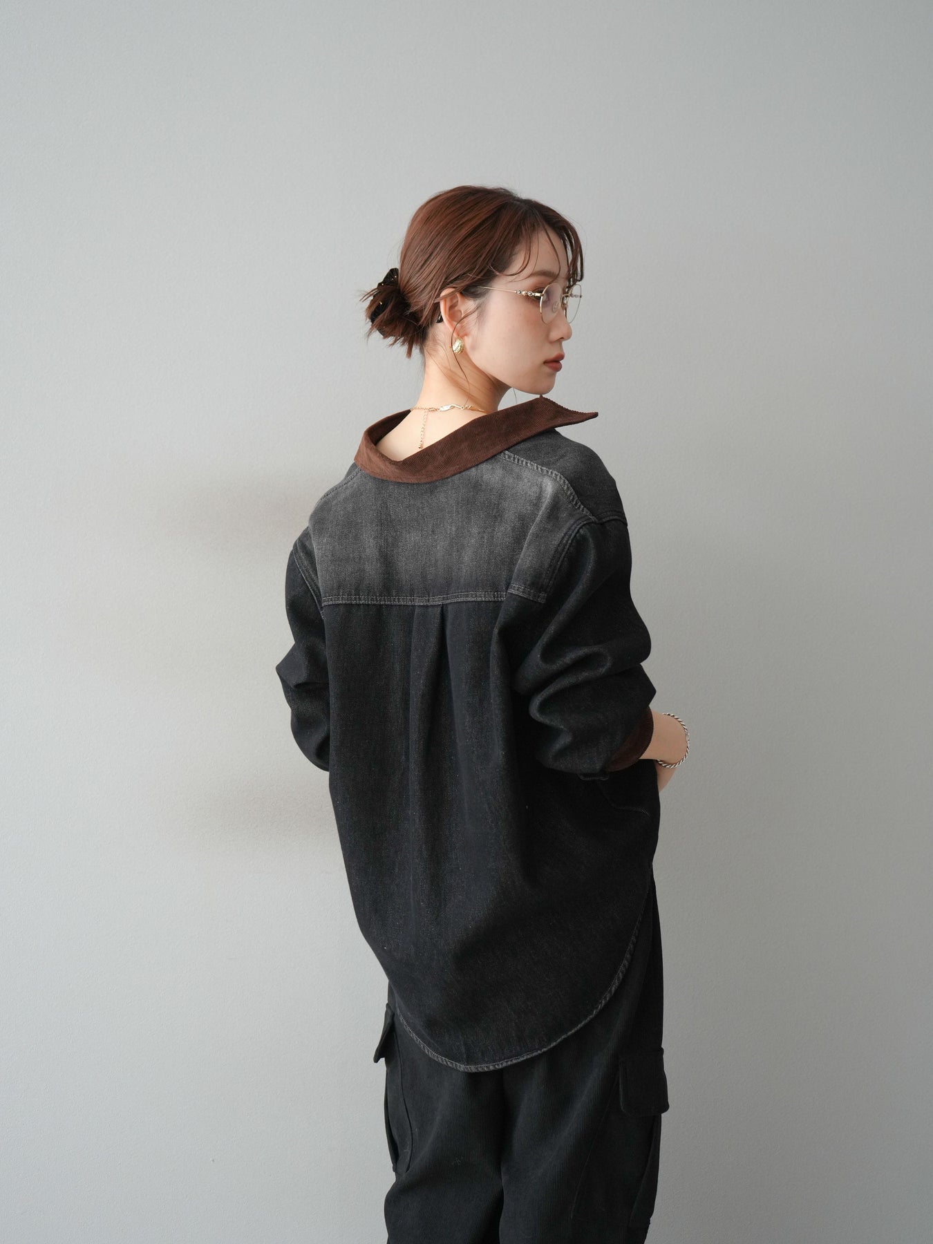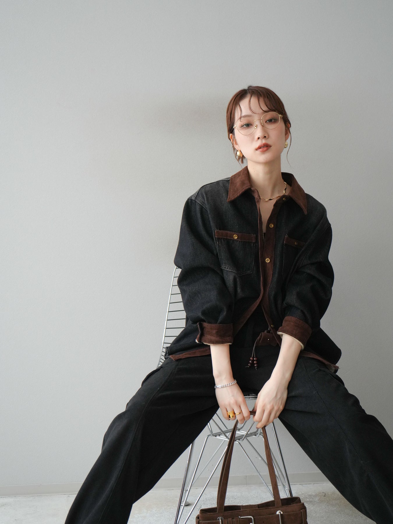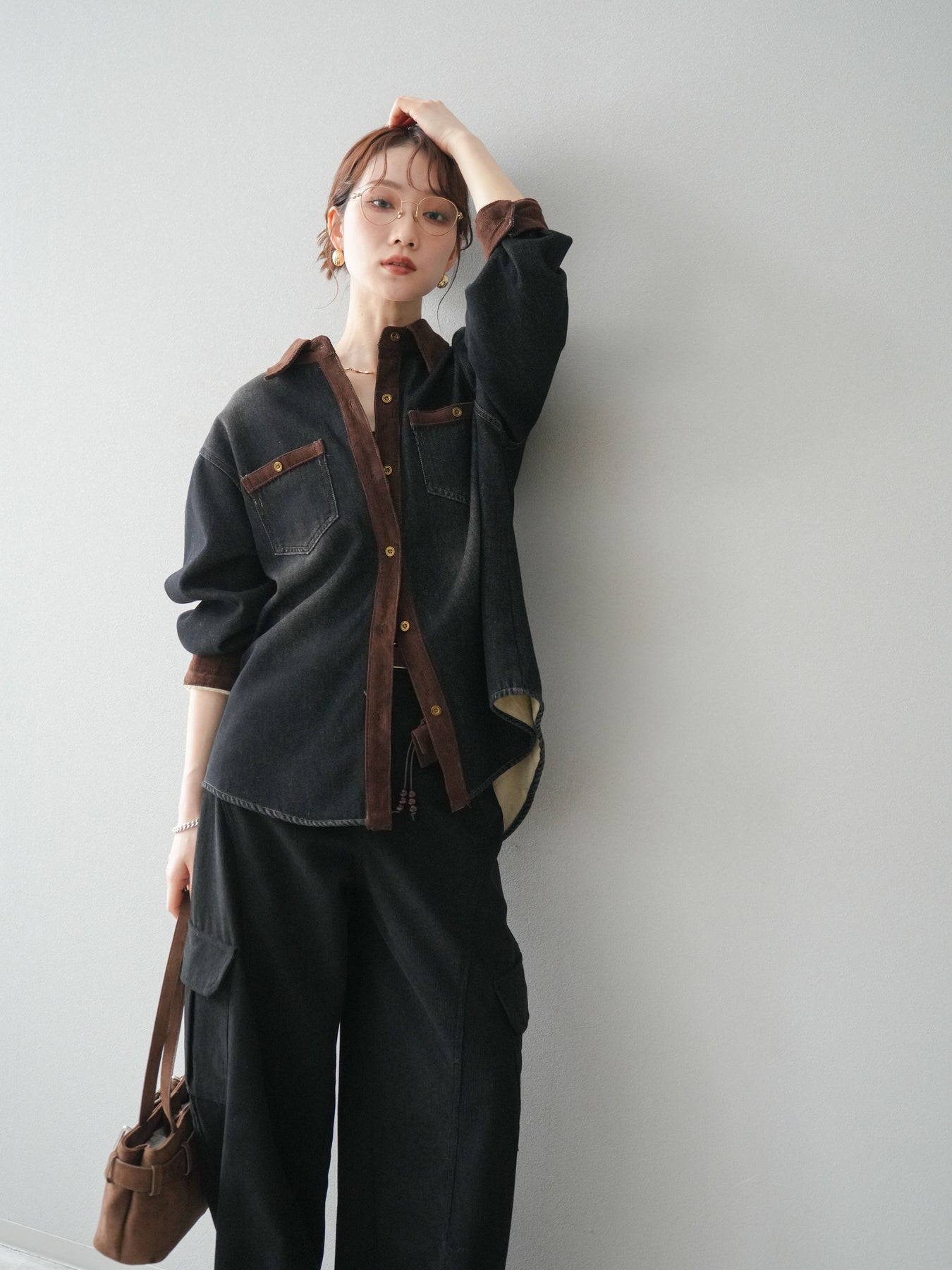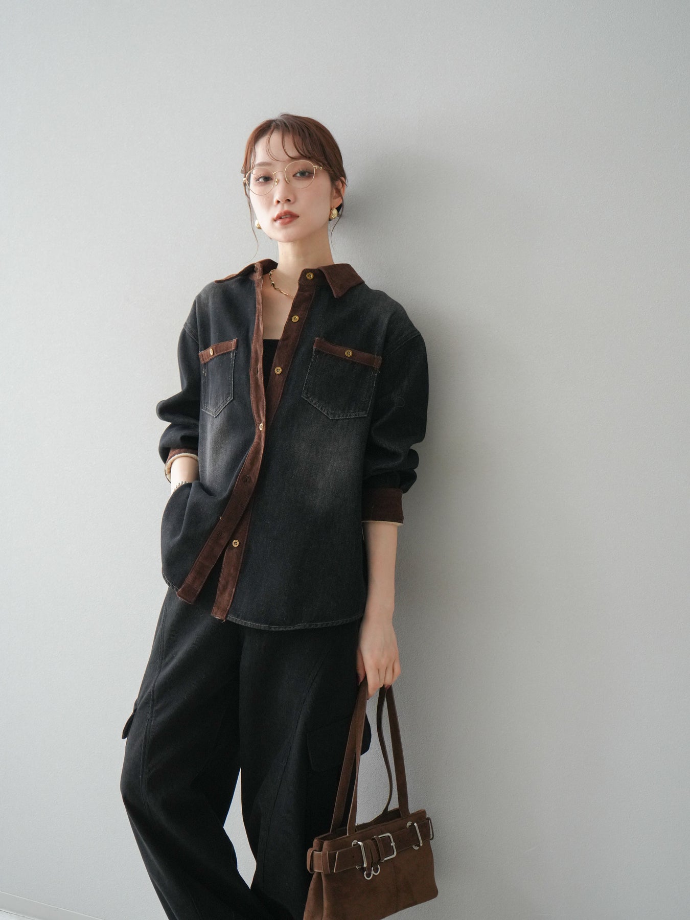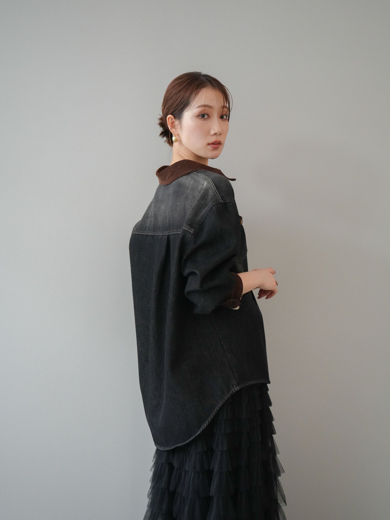 [予約]裏起毛コーデュロイ襟デニムシャツジャケット/black