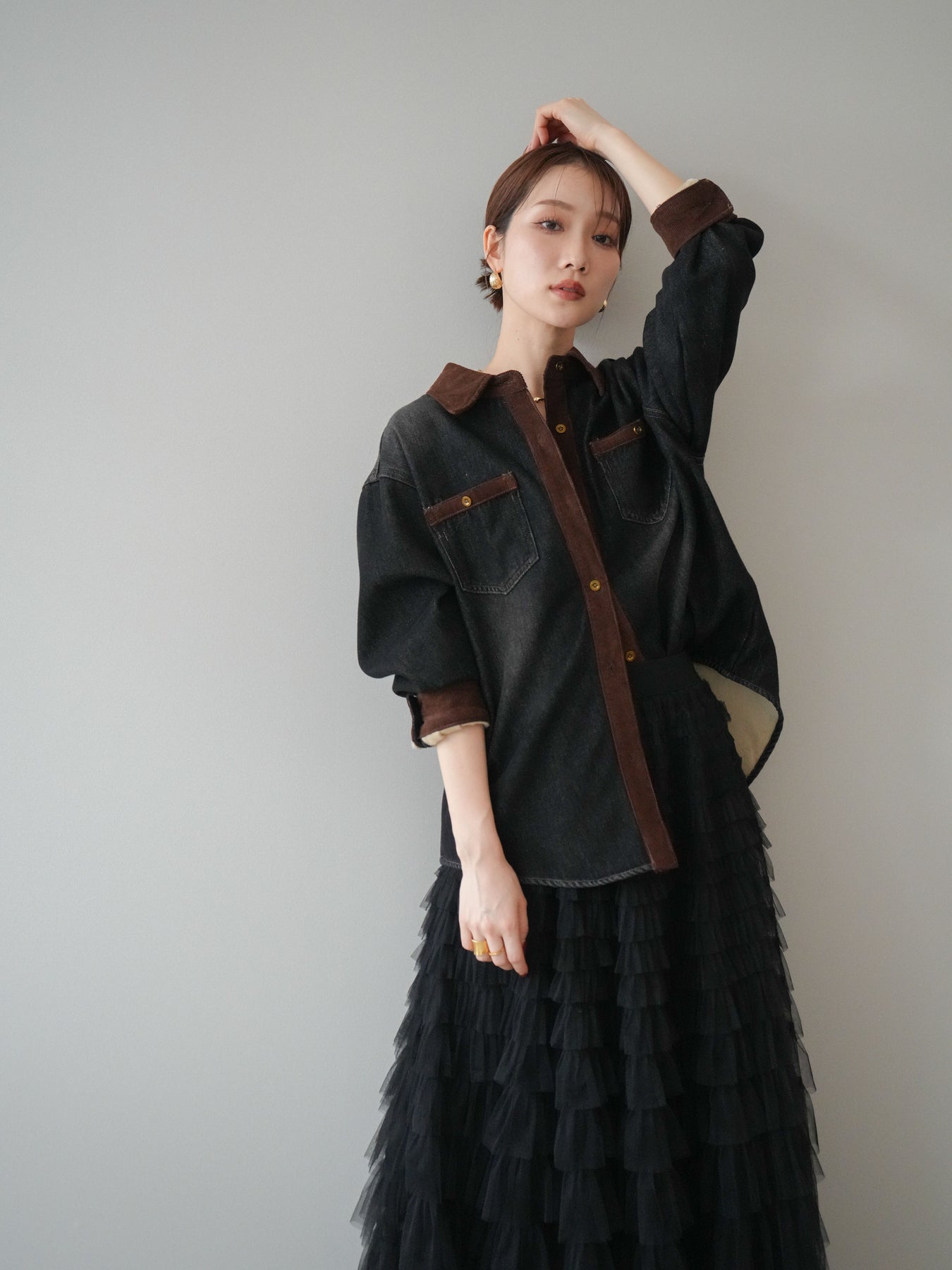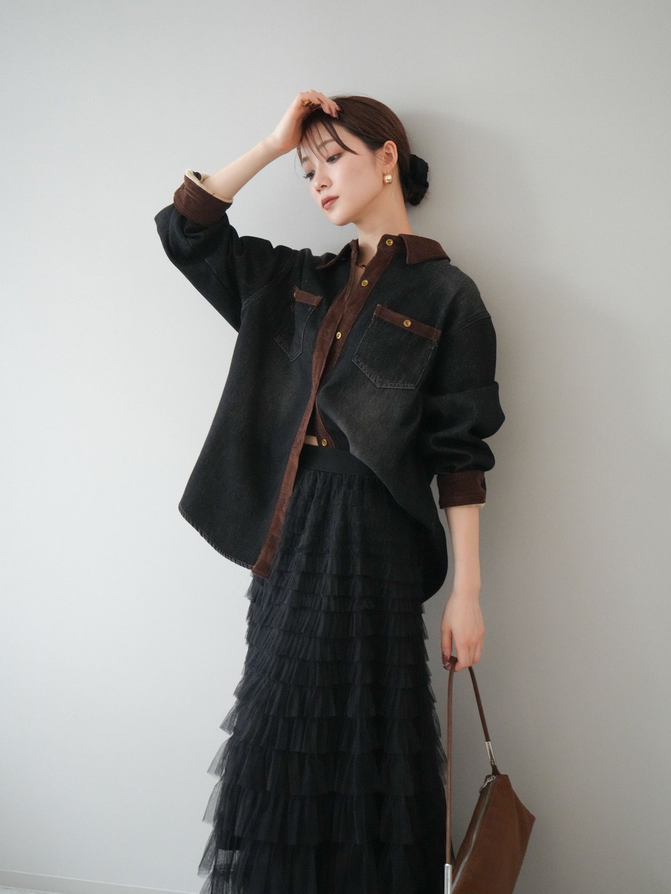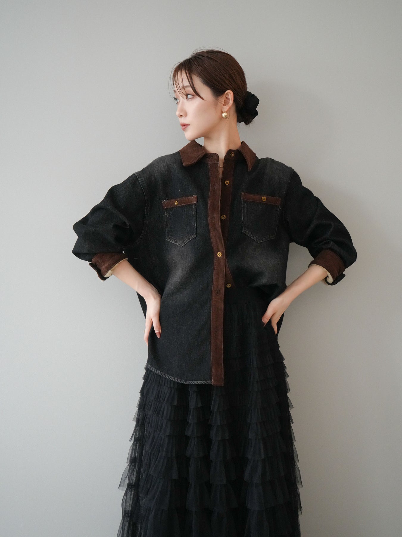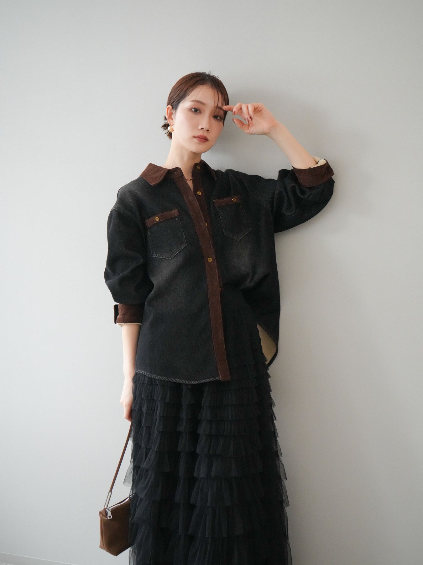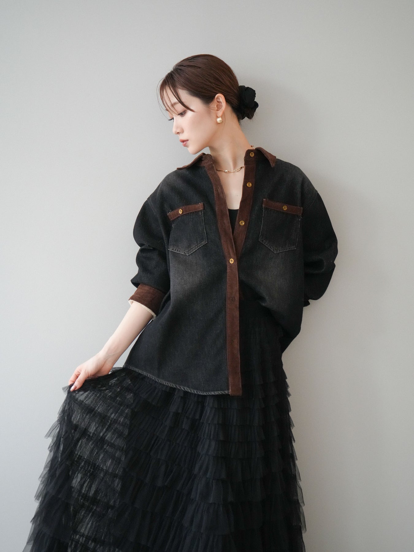 [予約]裏起毛コーデュロイ襟デニムシャツジャケット/black