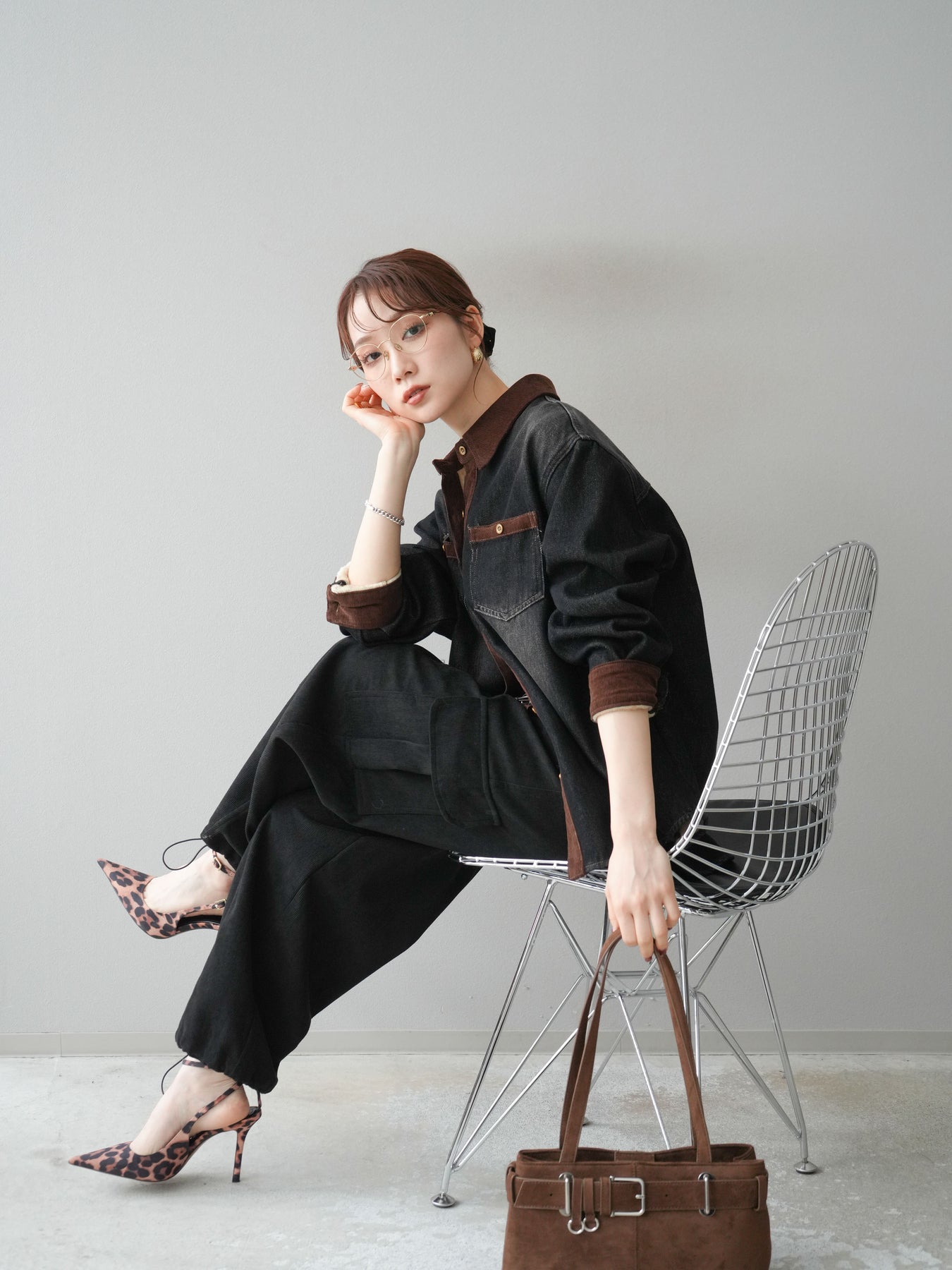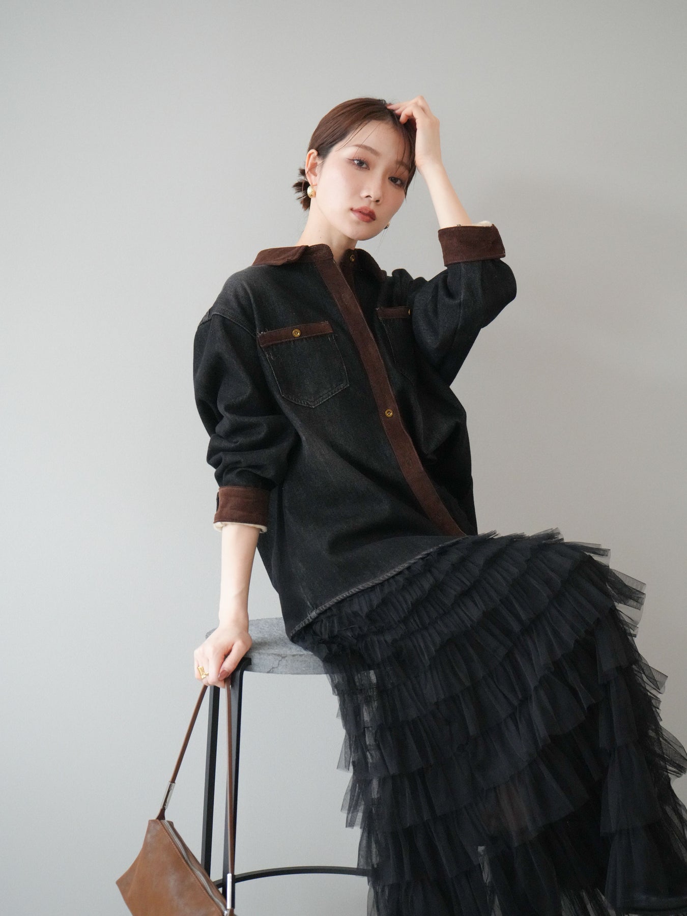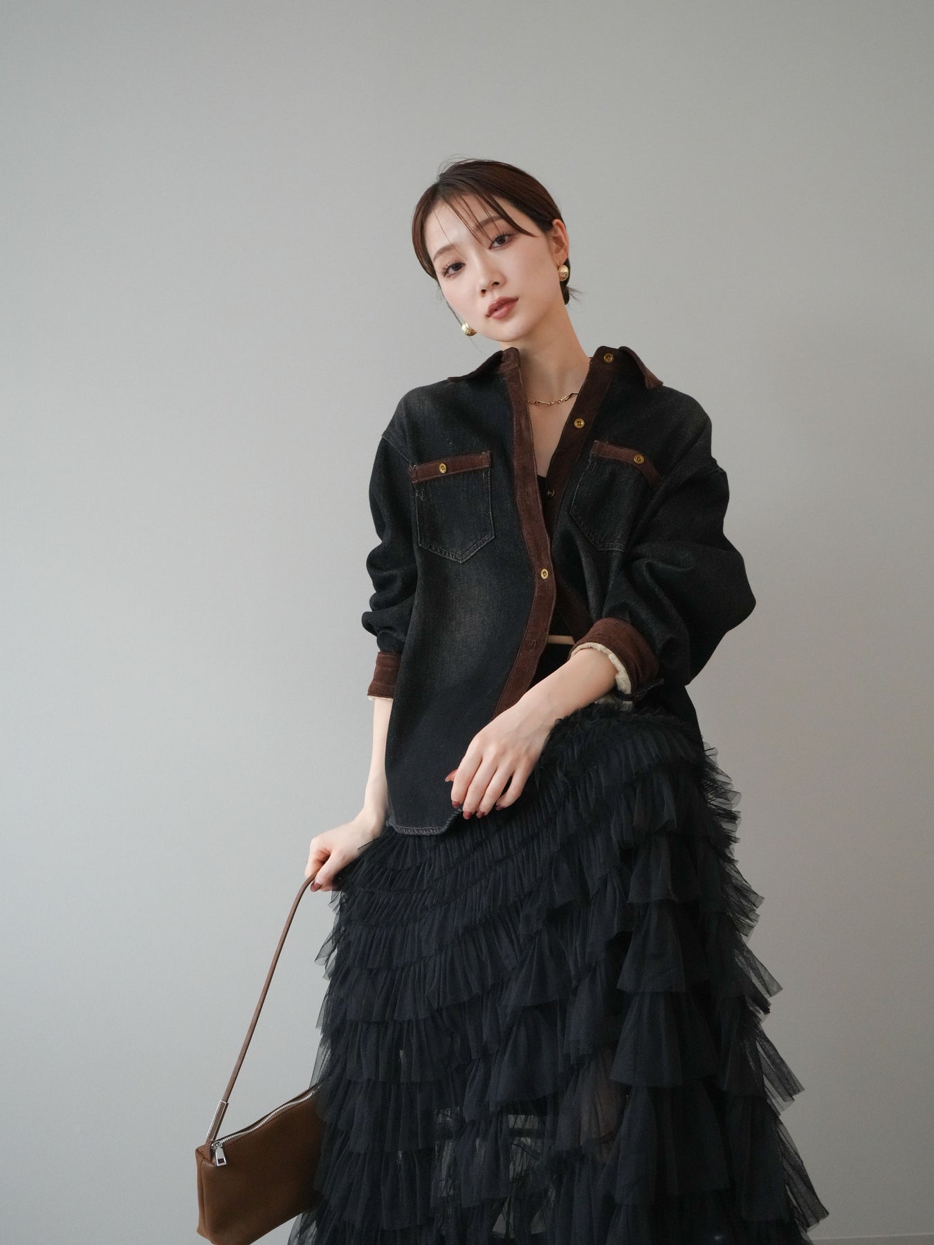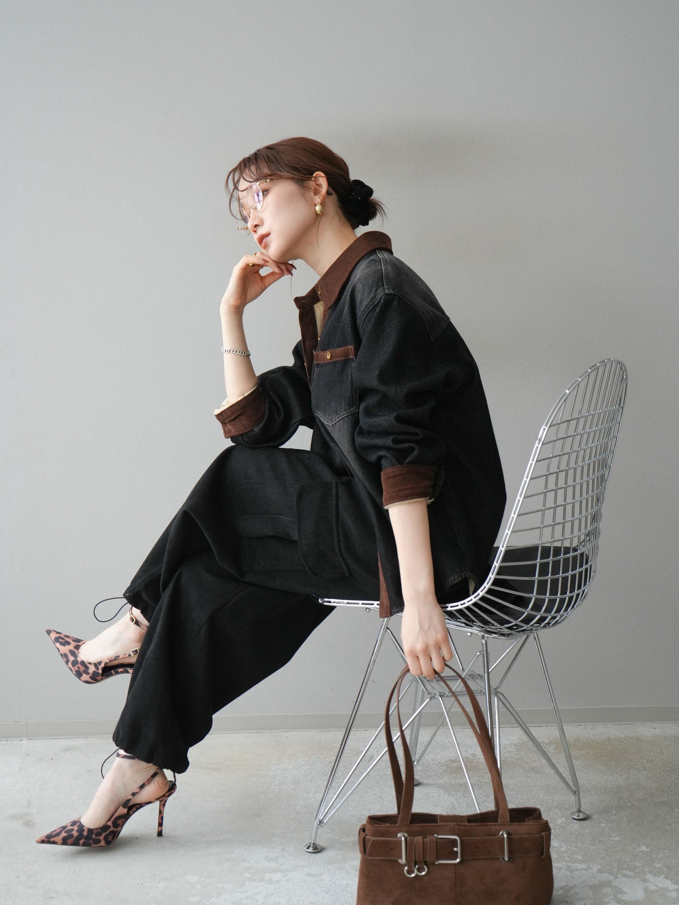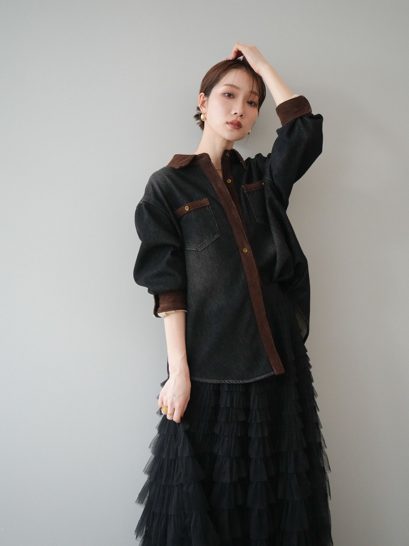 [予約]裏起毛コーデュロイ襟デニムシャツジャケット/black