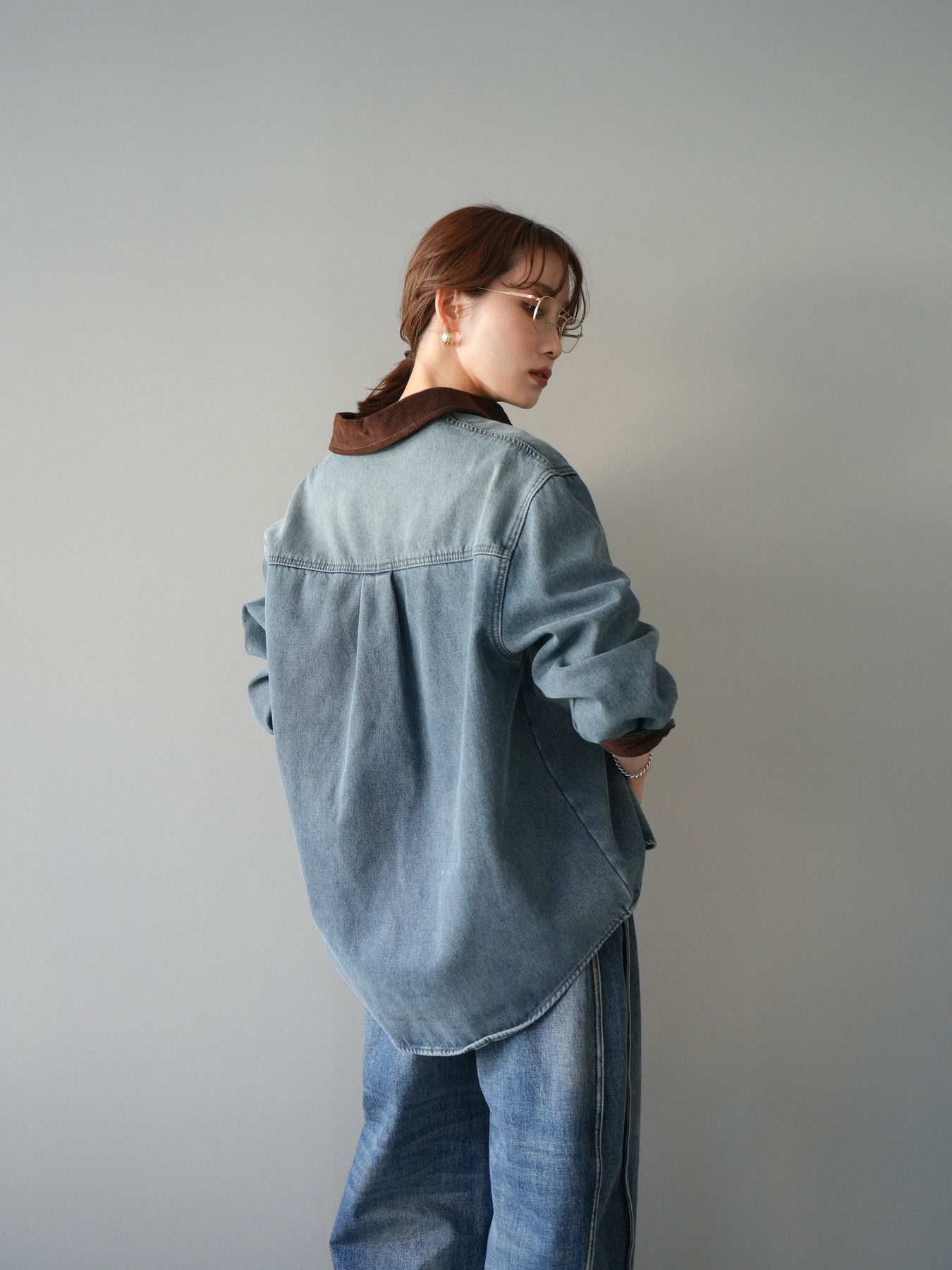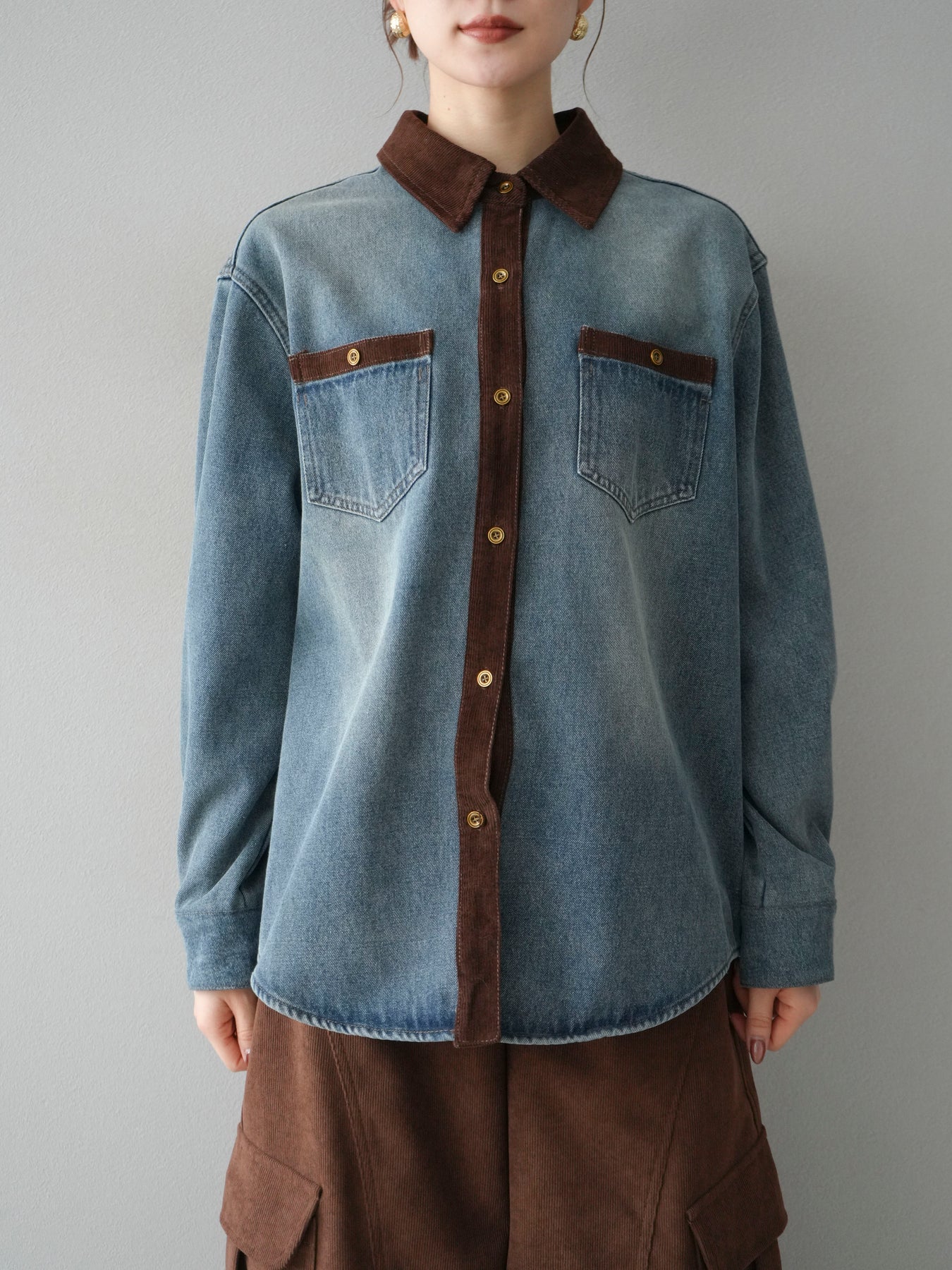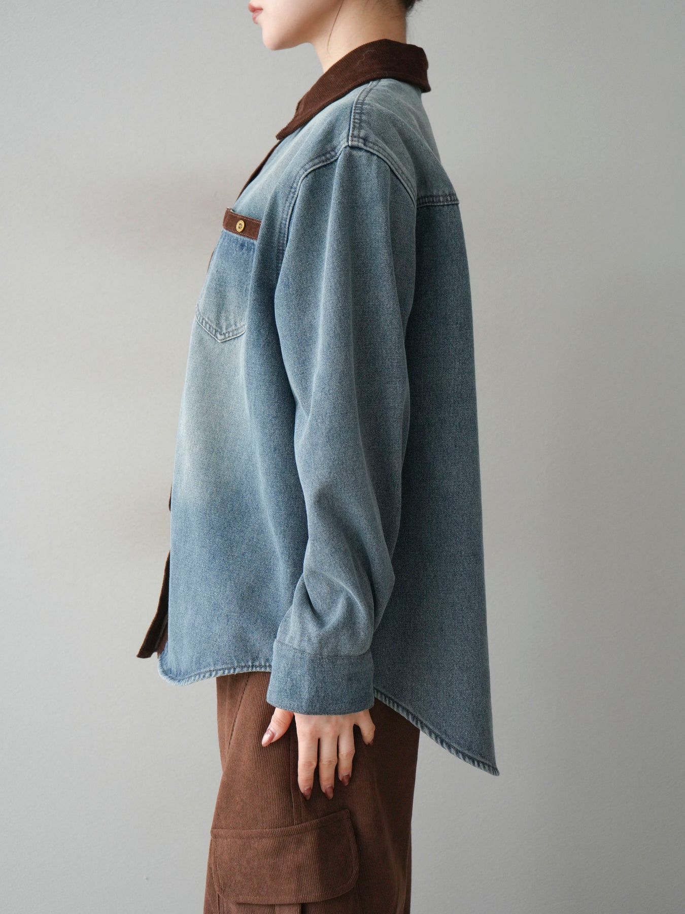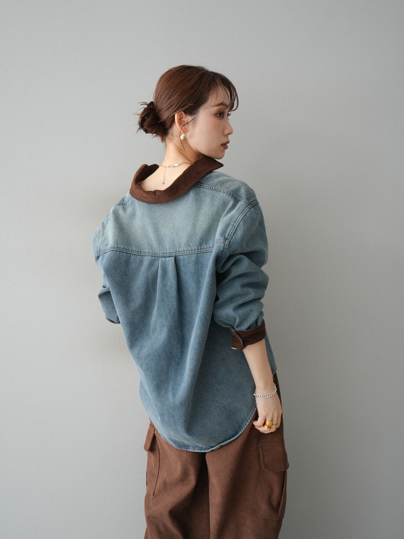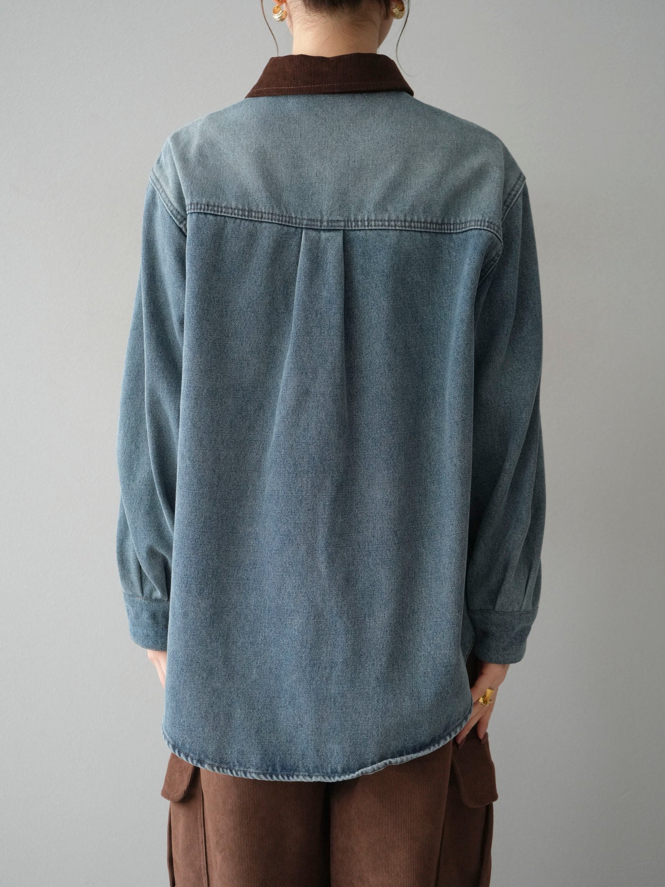 [予約]裏起毛コーデュロイ襟デニムシャツジャケット/ blue