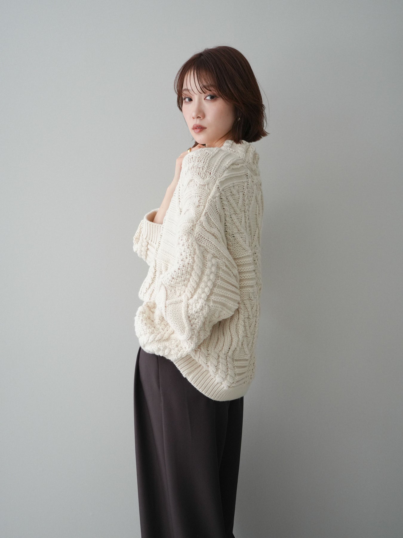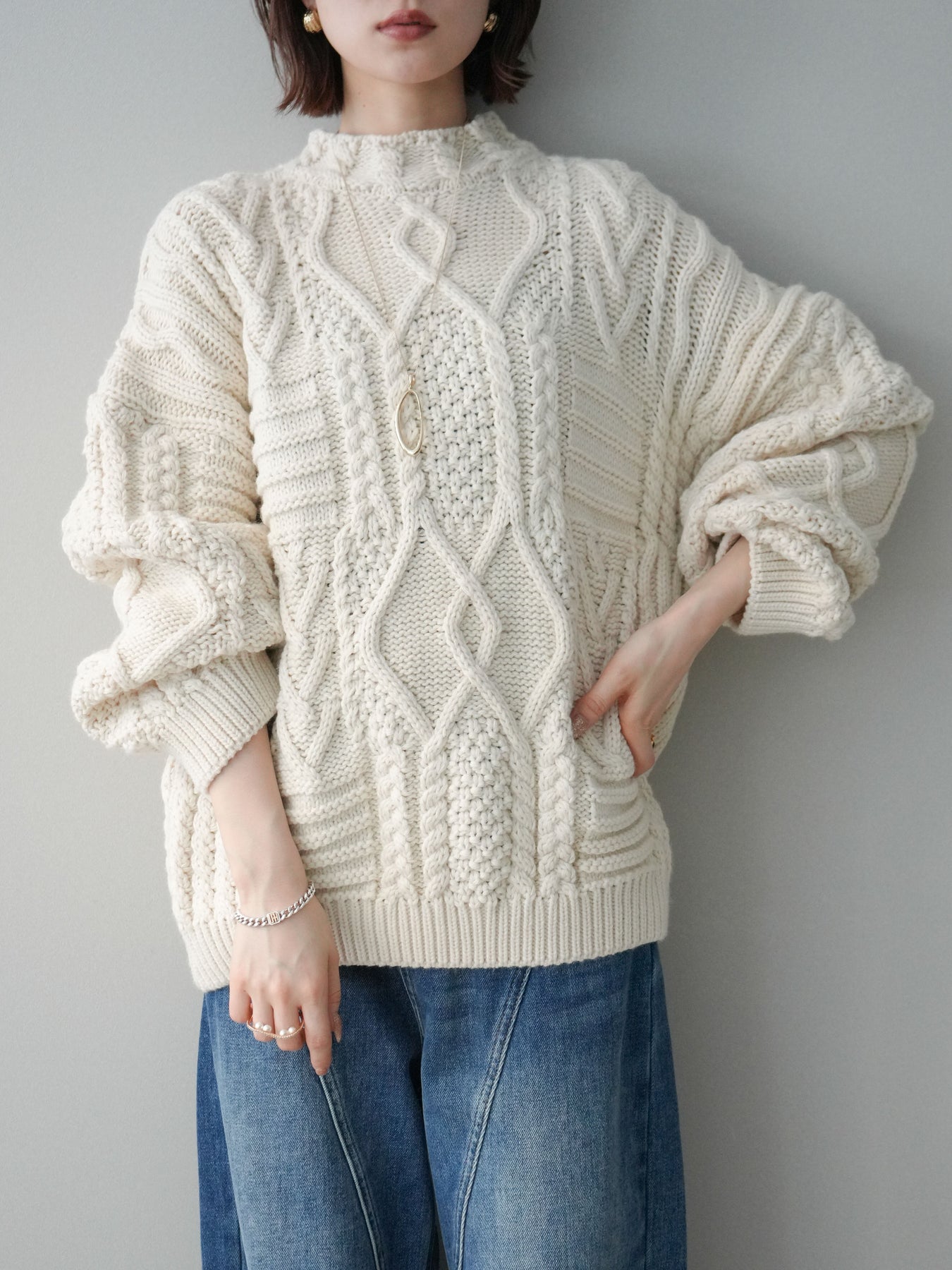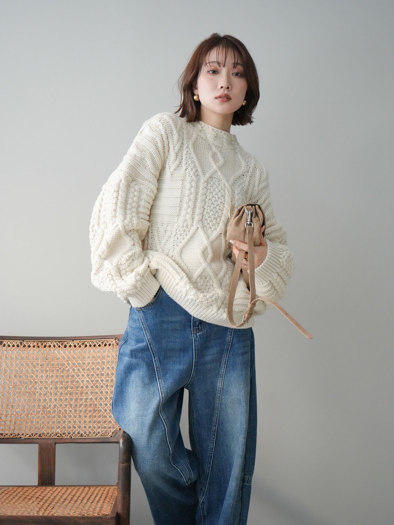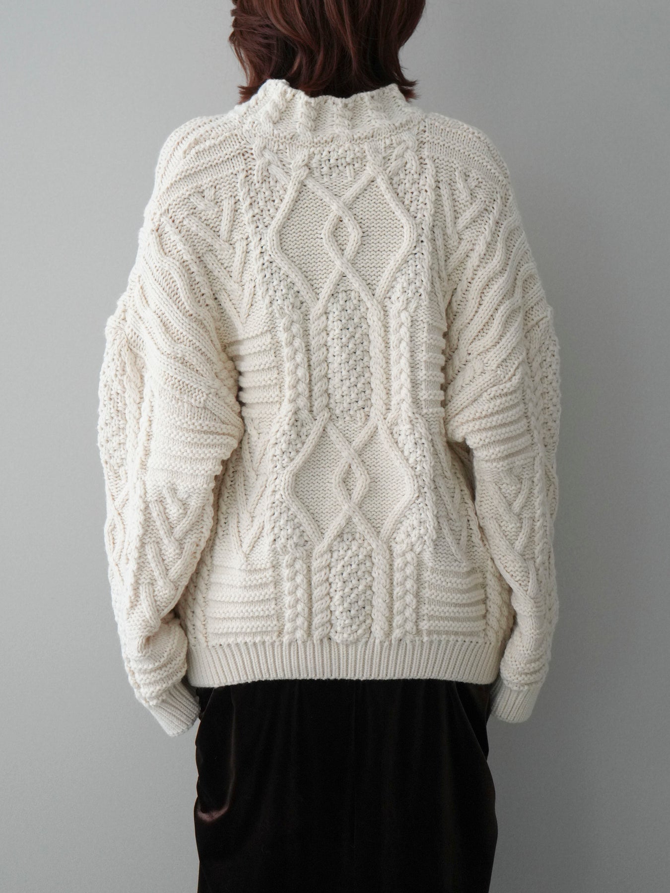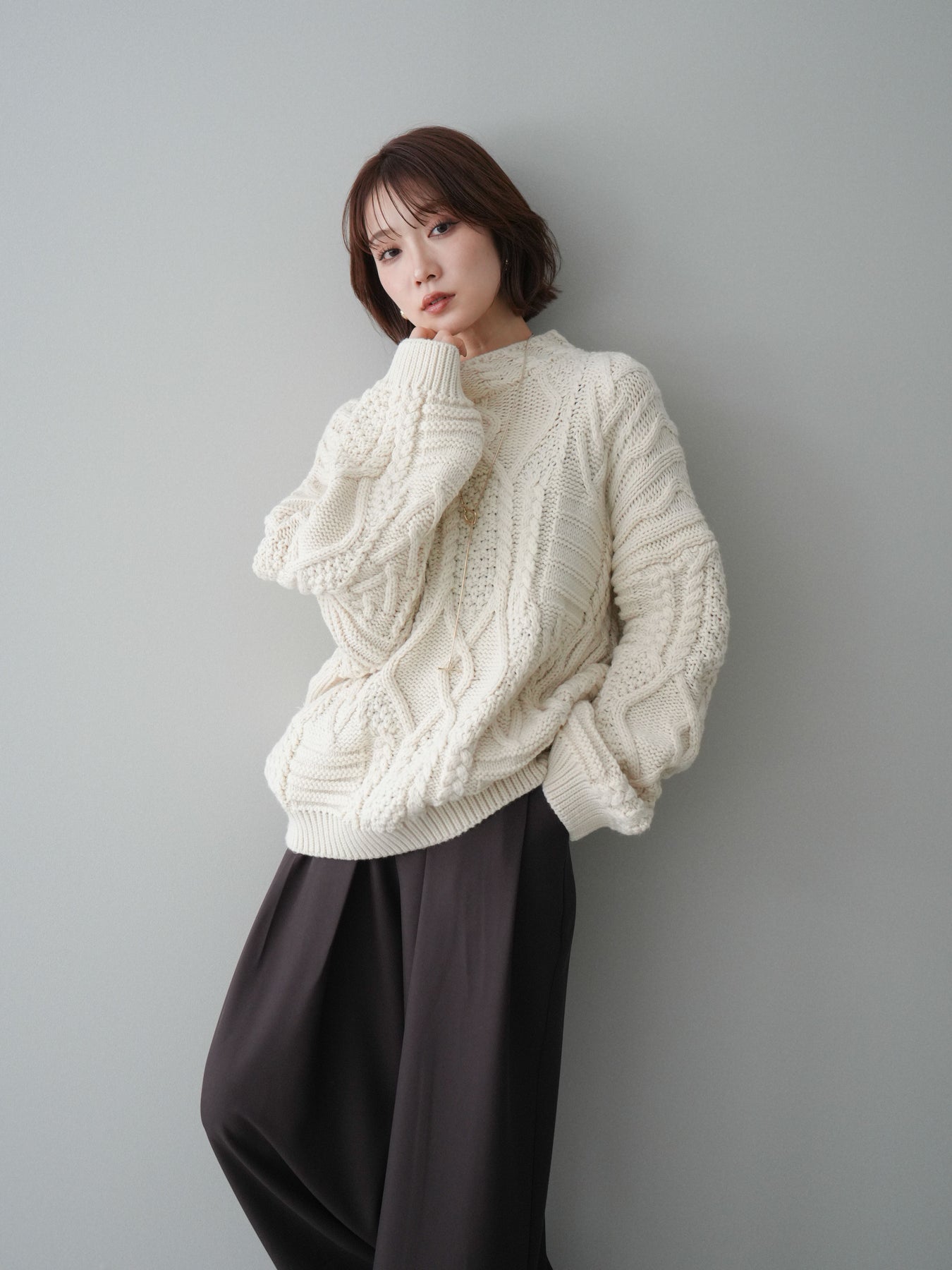 [予約]ケーブル編みモックネックニットプルオーバー/ivory