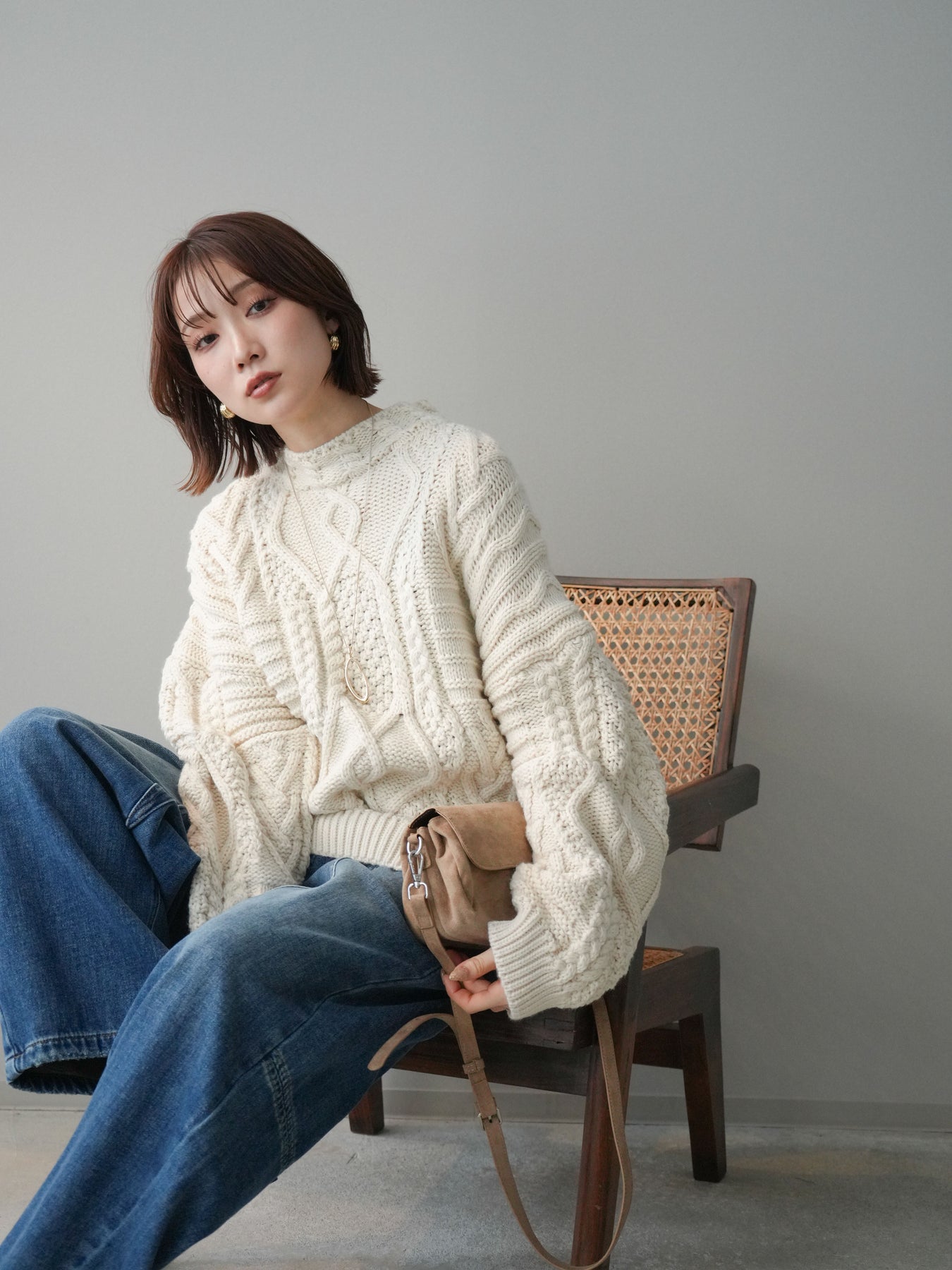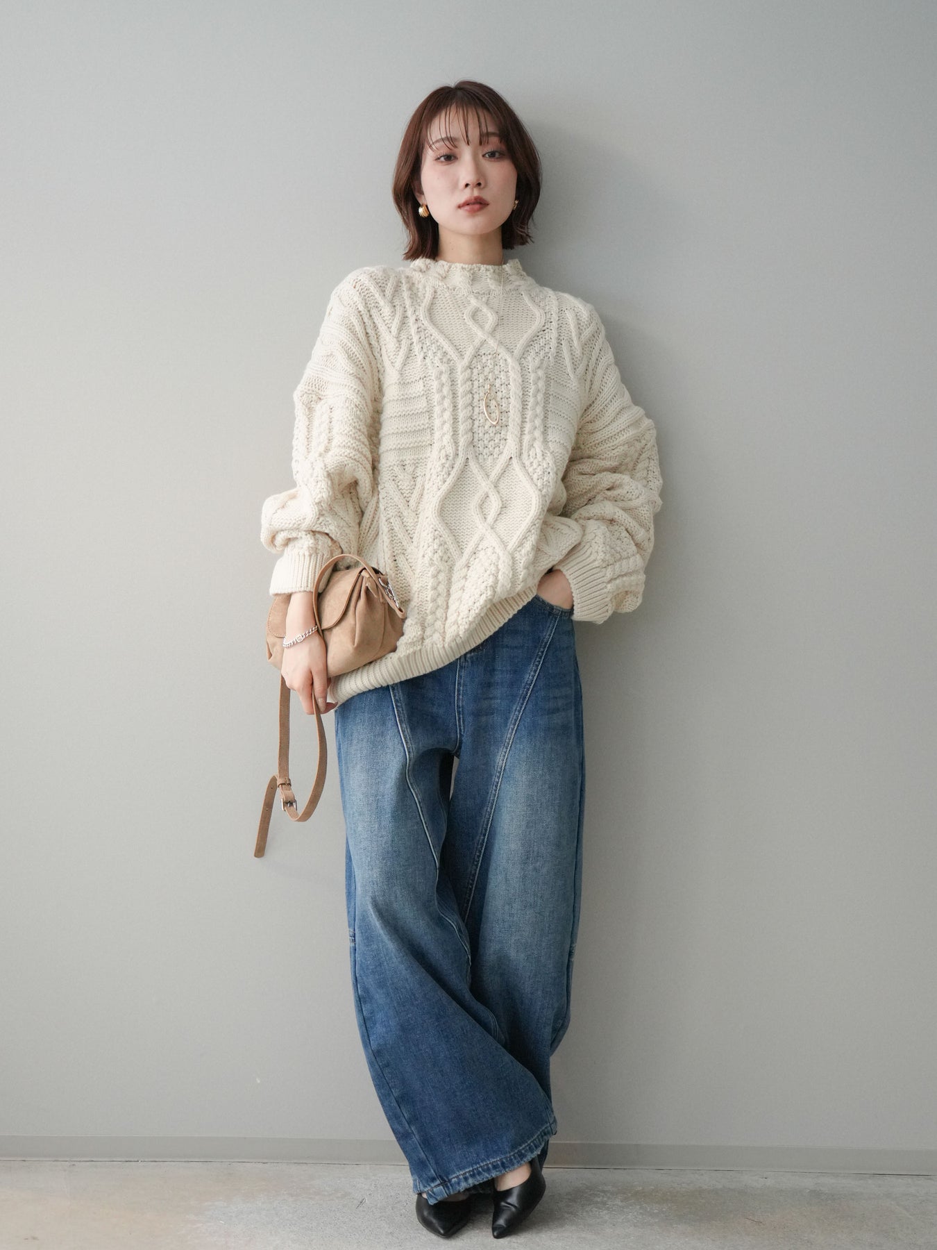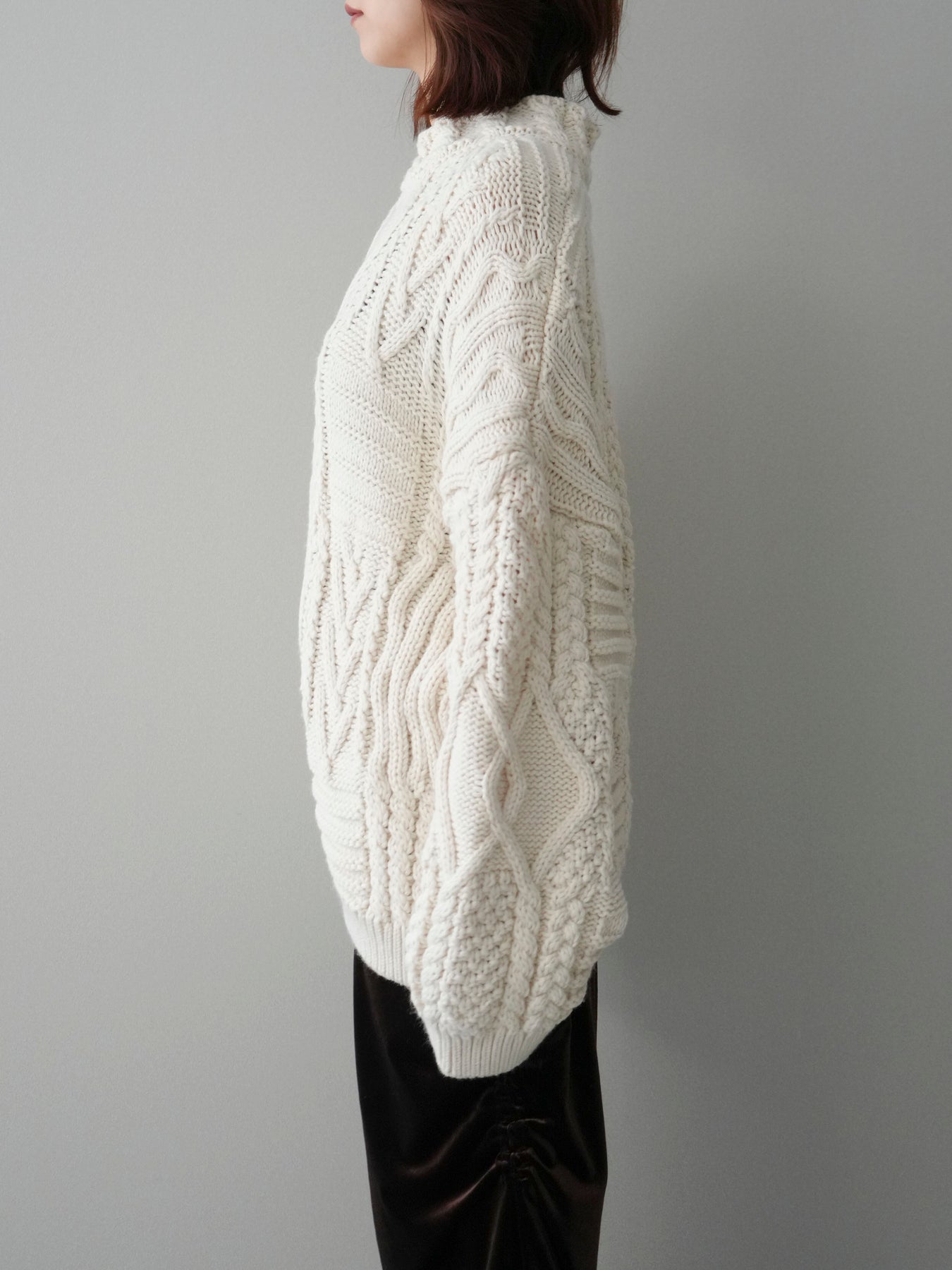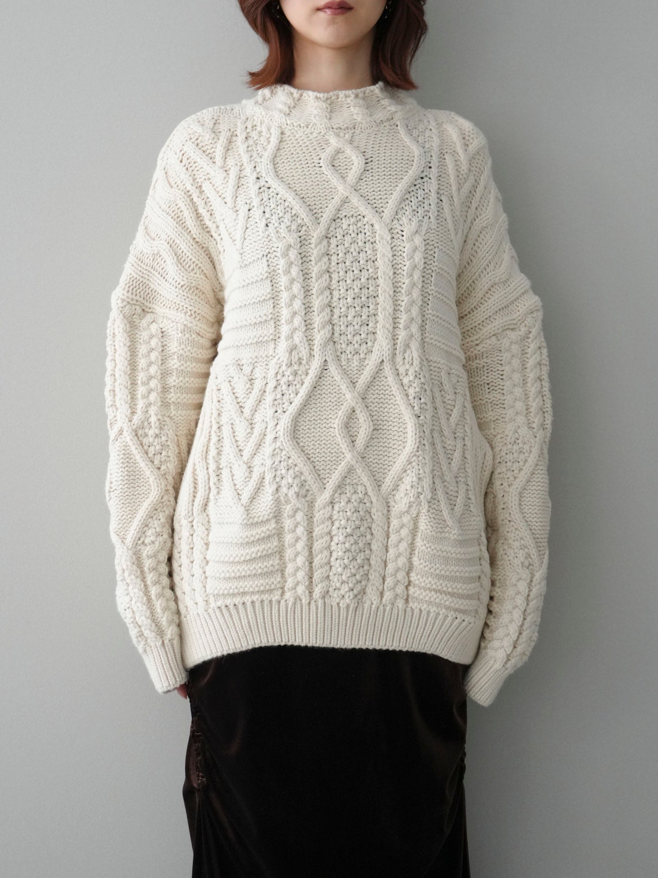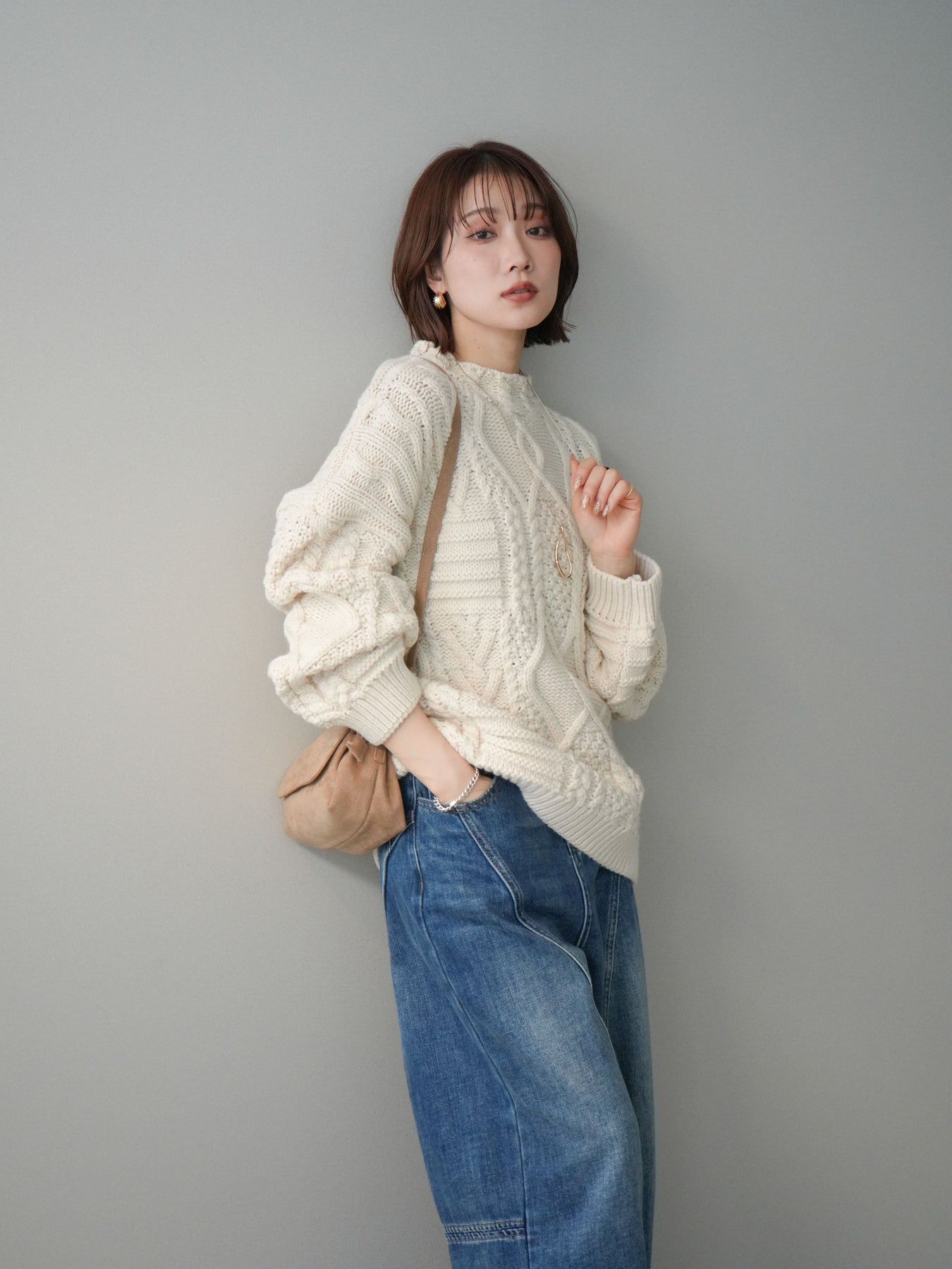 [予約]ケーブル編みモックネックニットプルオーバー/ivory