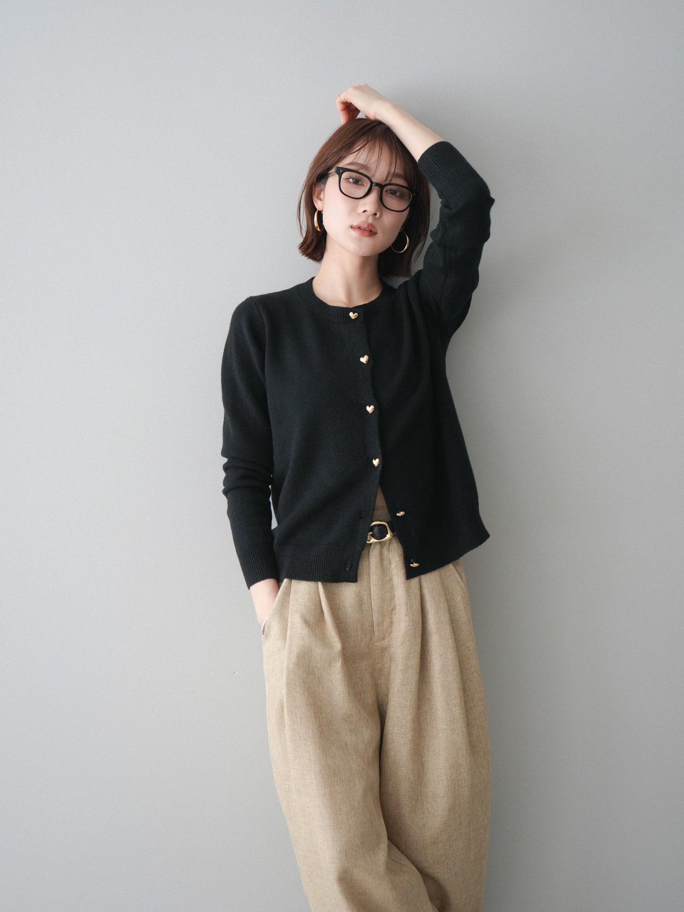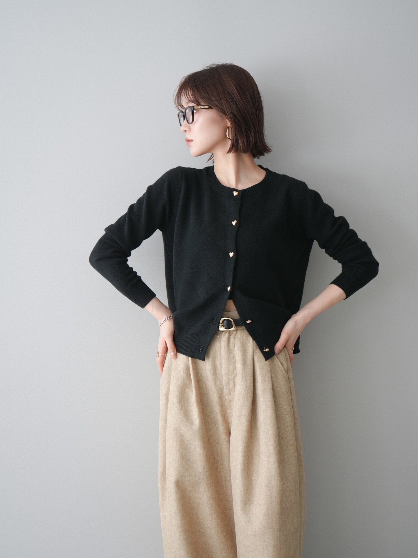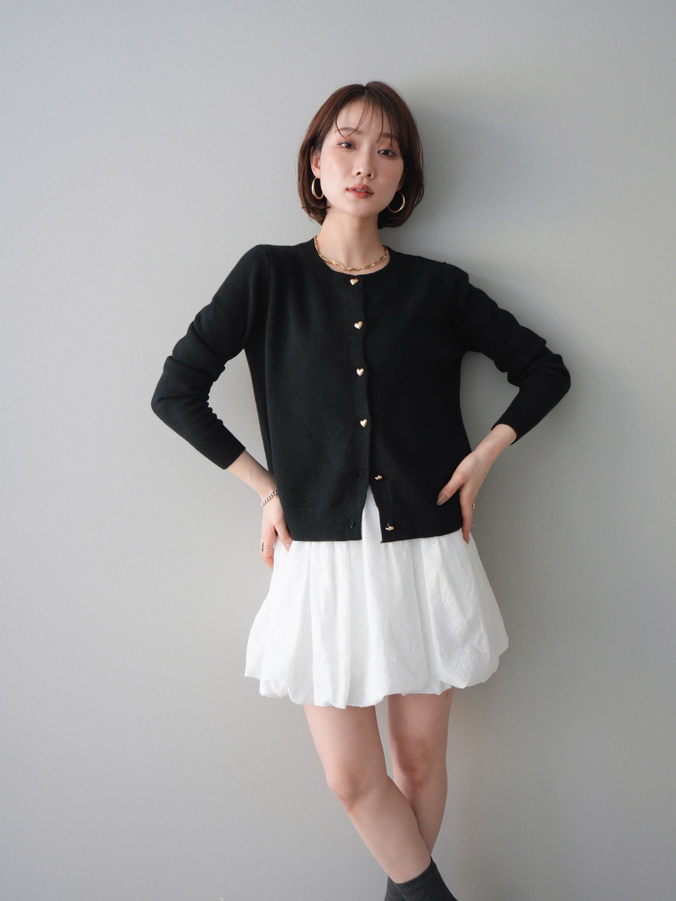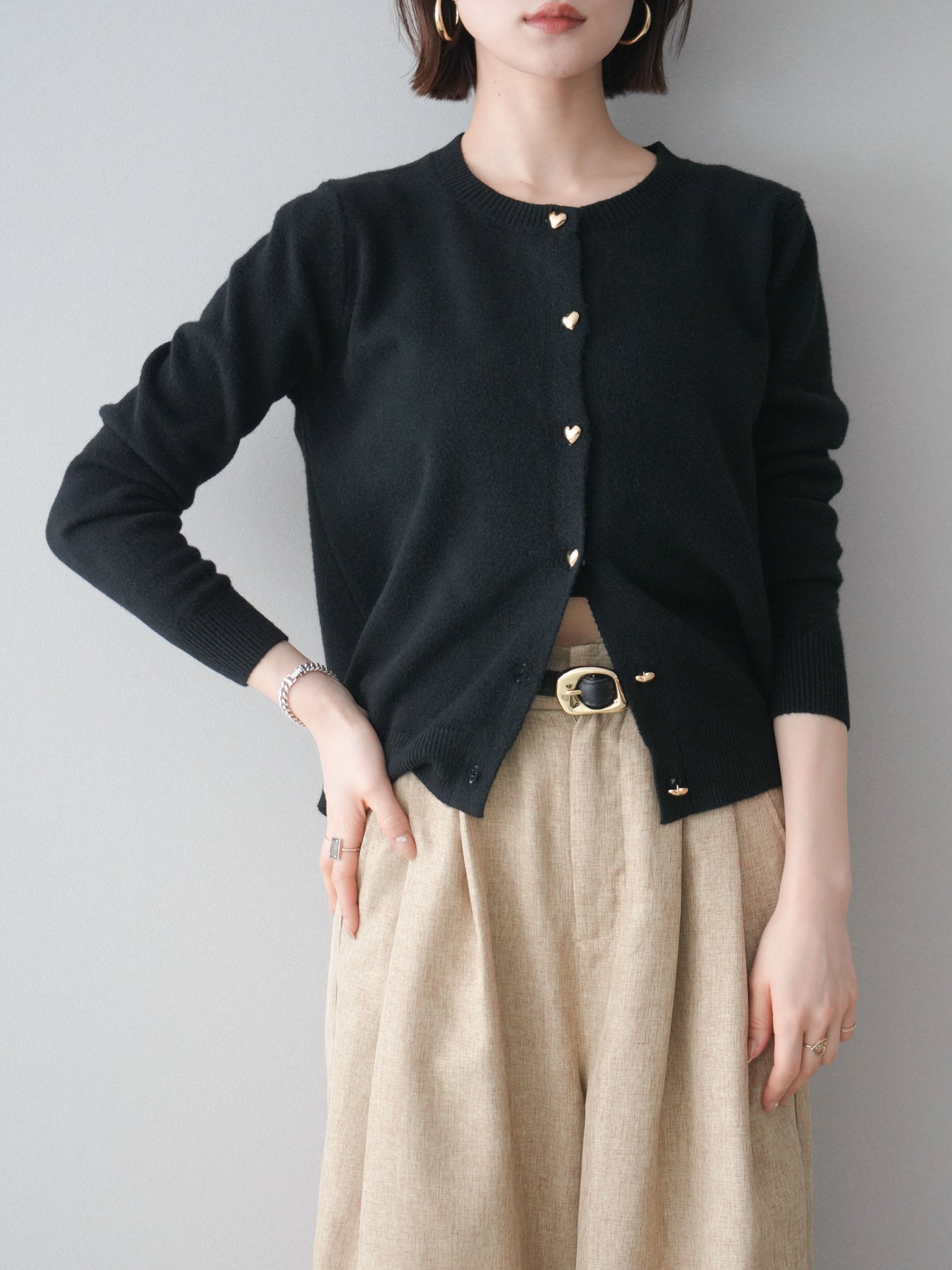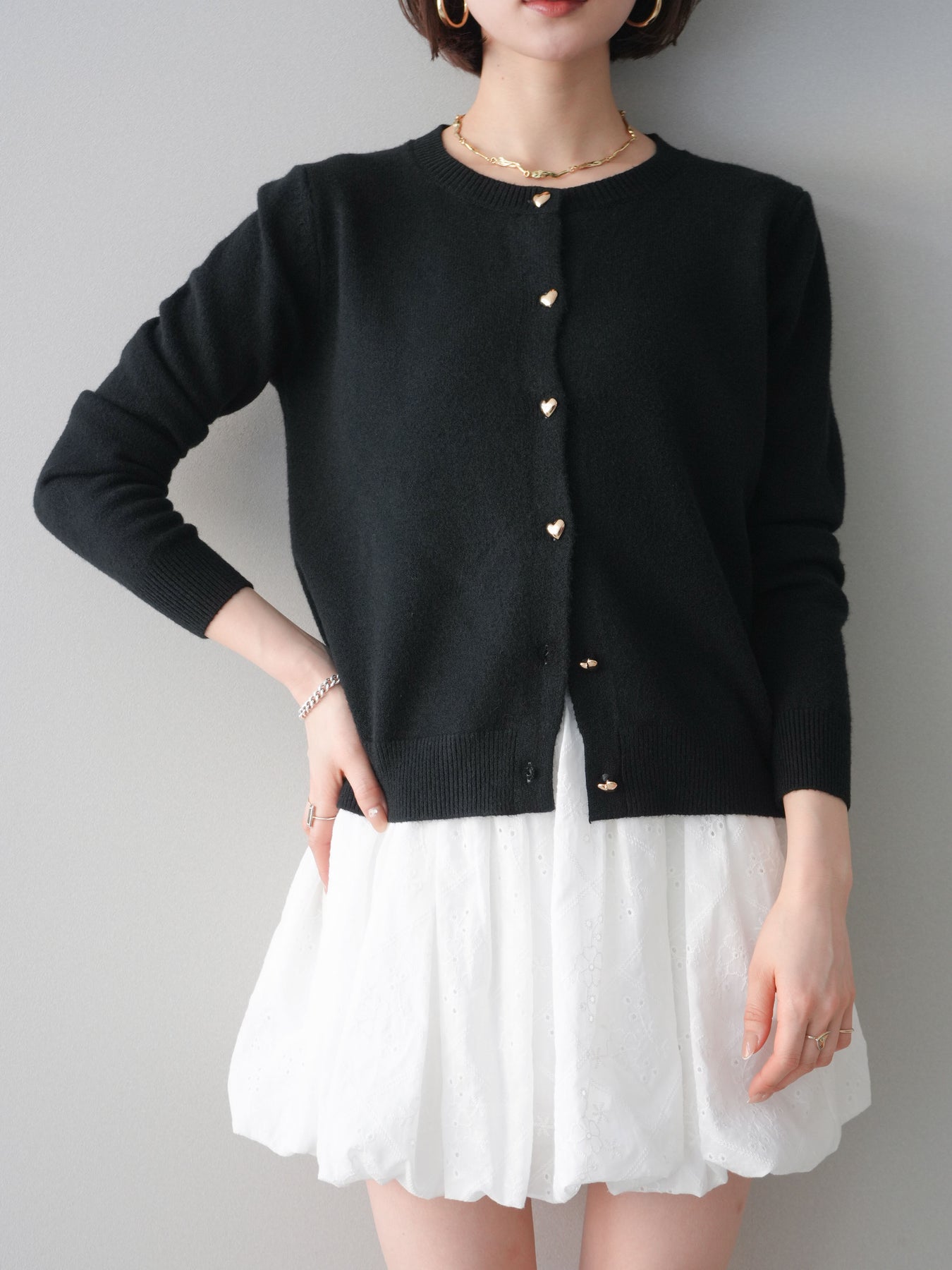 [予約]ハートボタンニットカーディガン/black