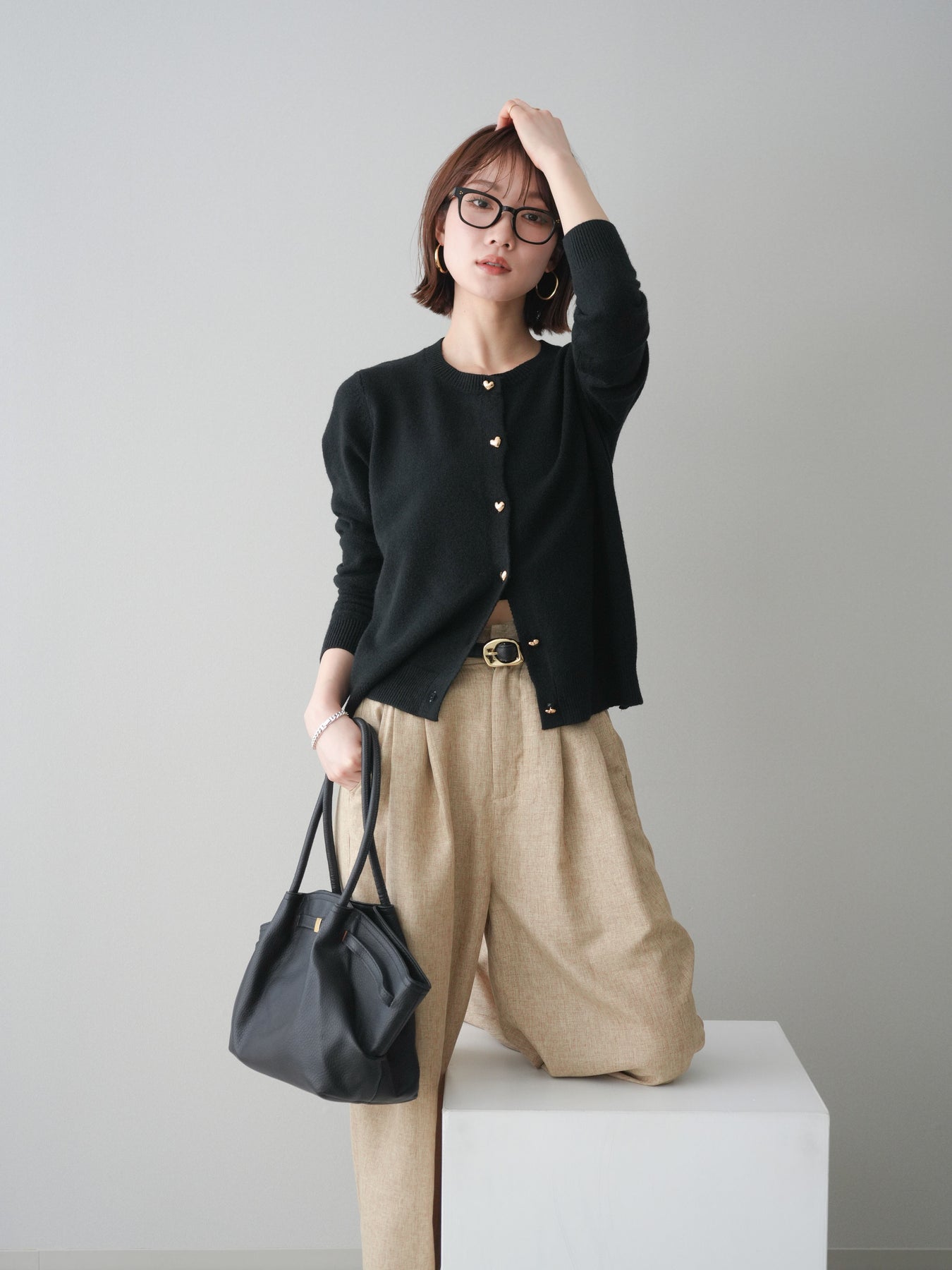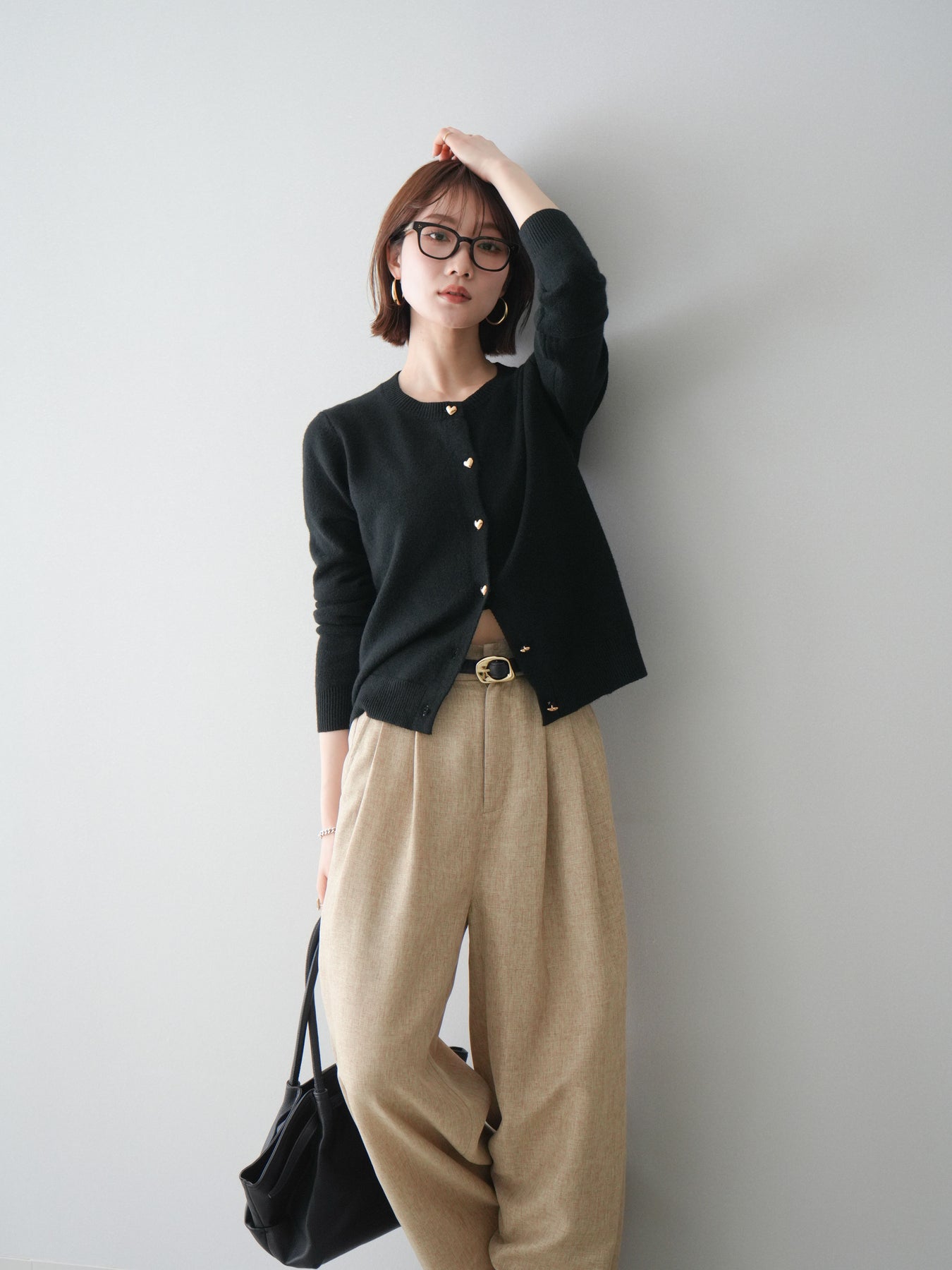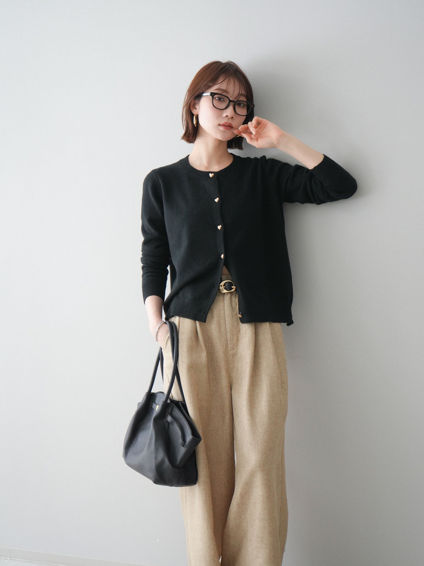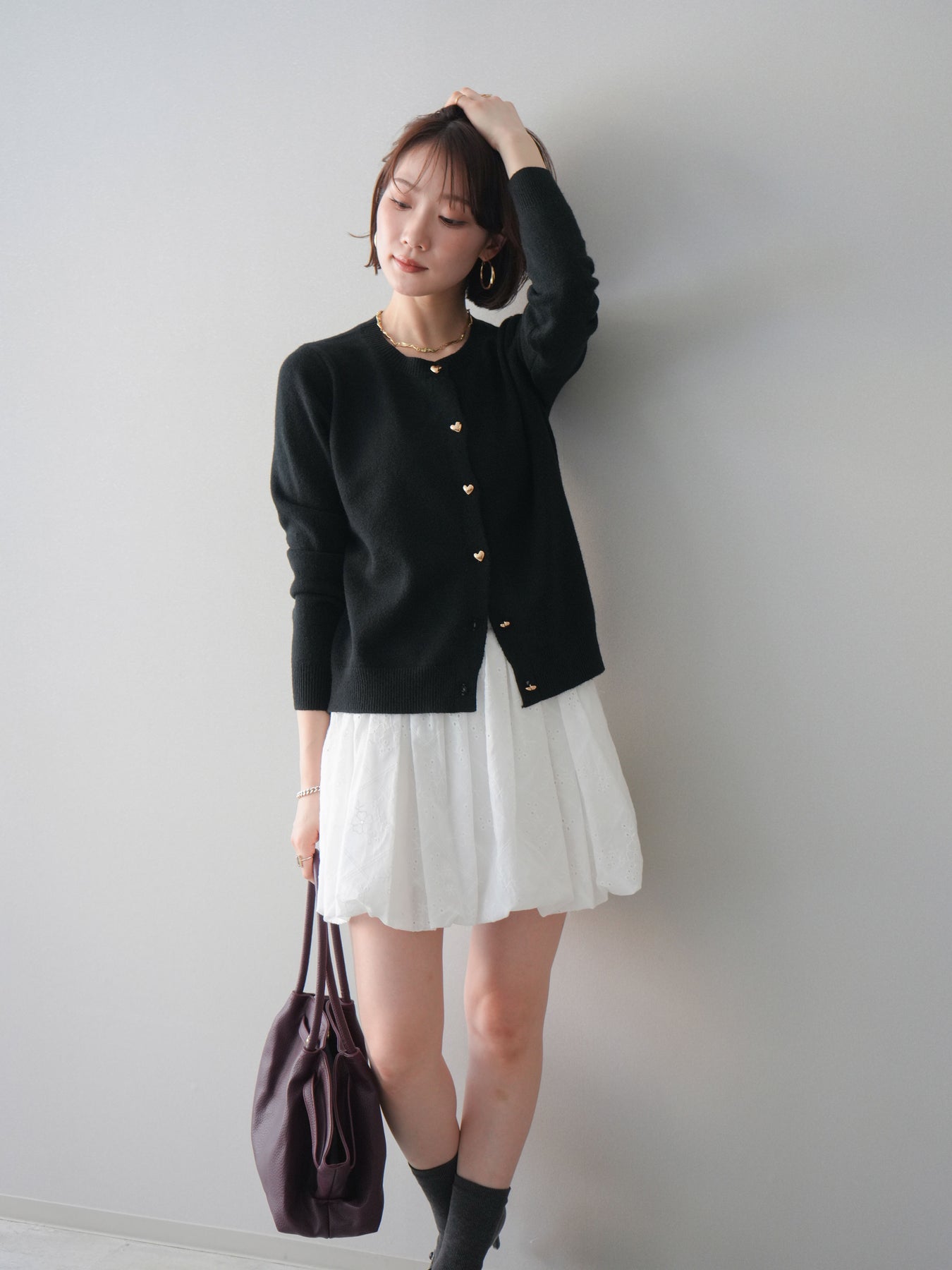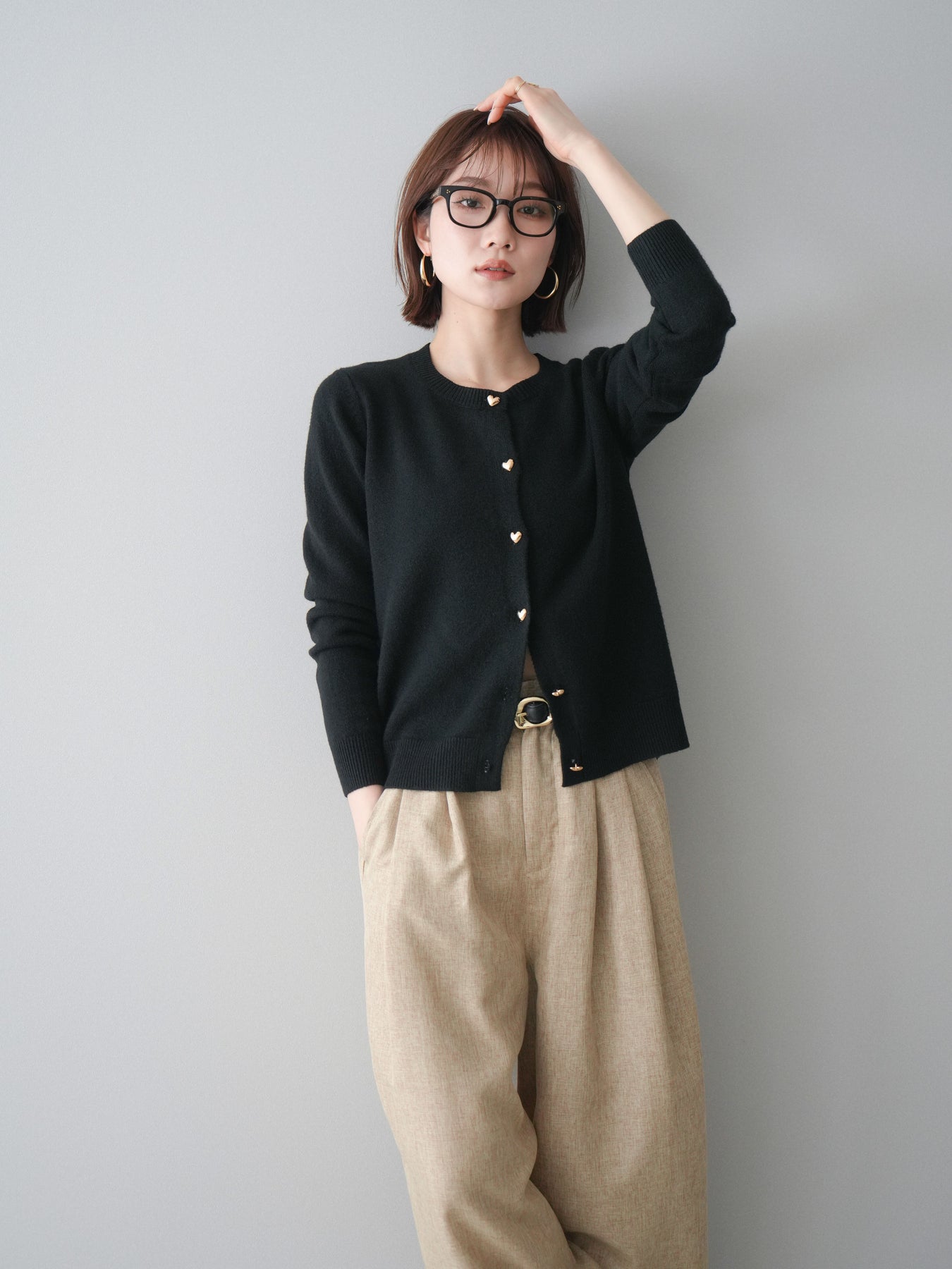 [予約]ハートボタンニットカーディガン/black