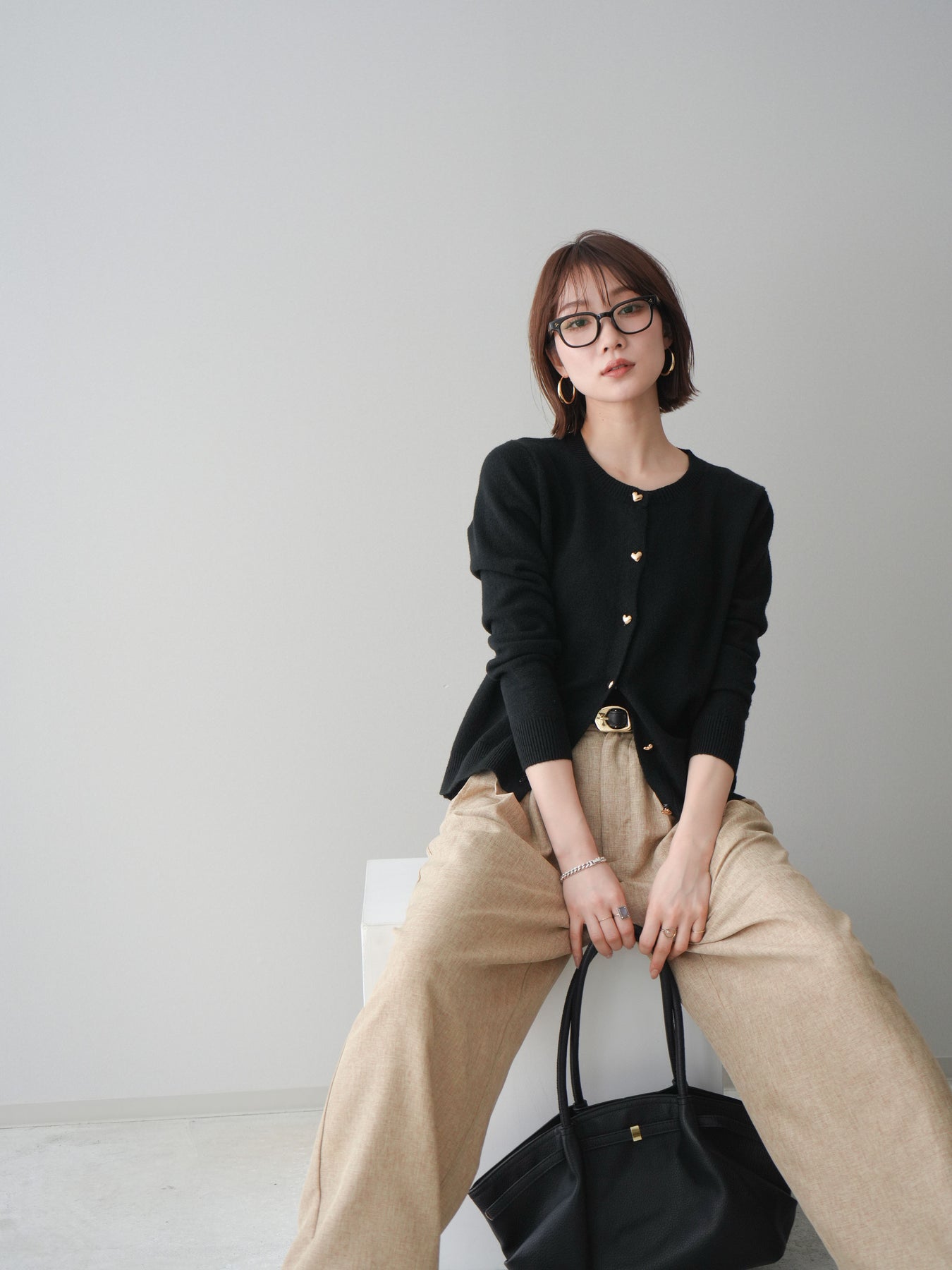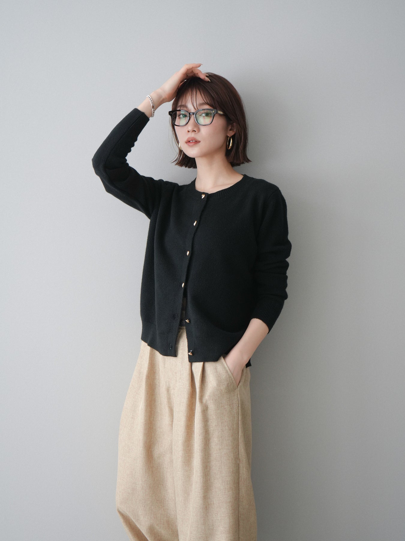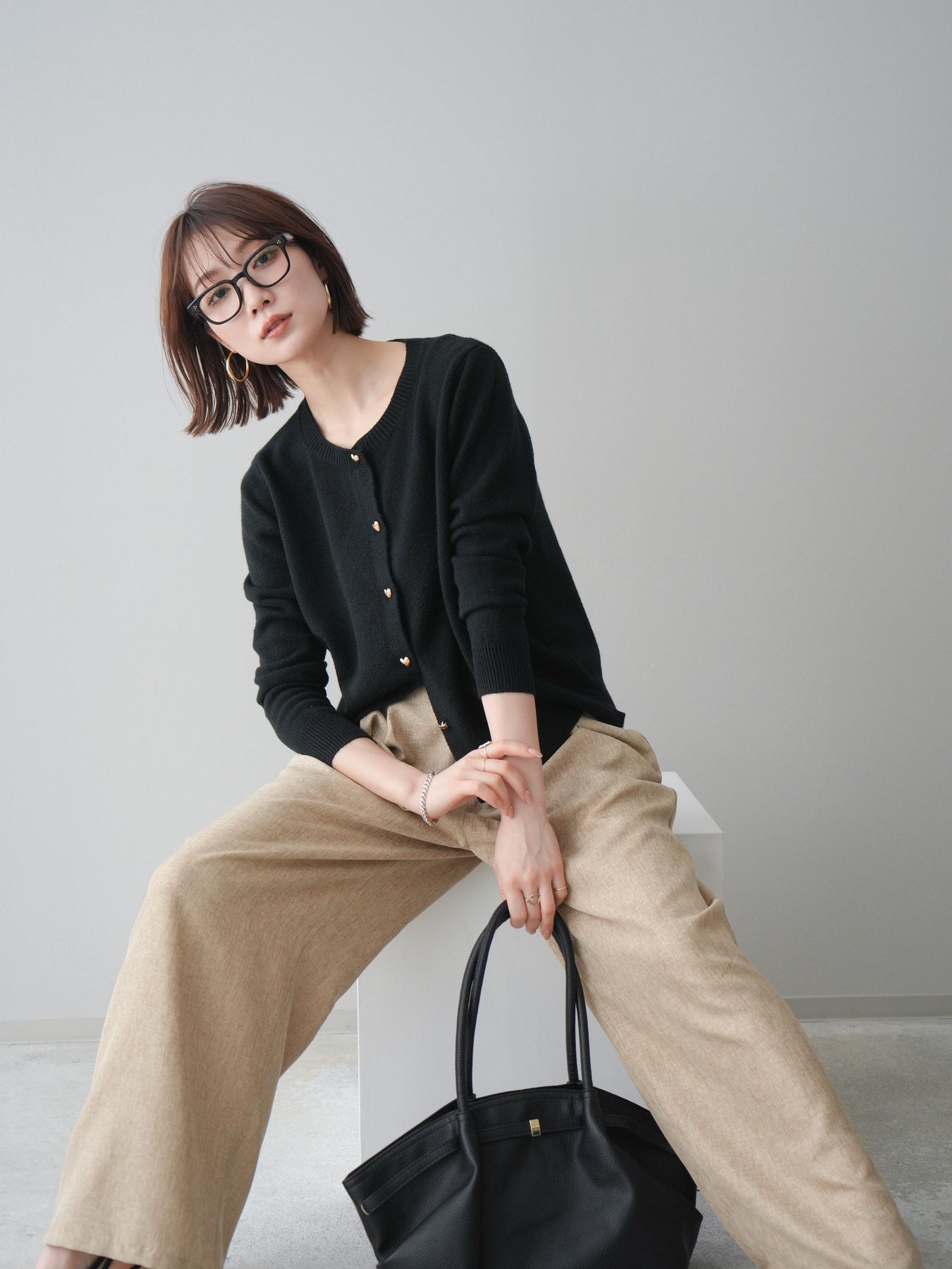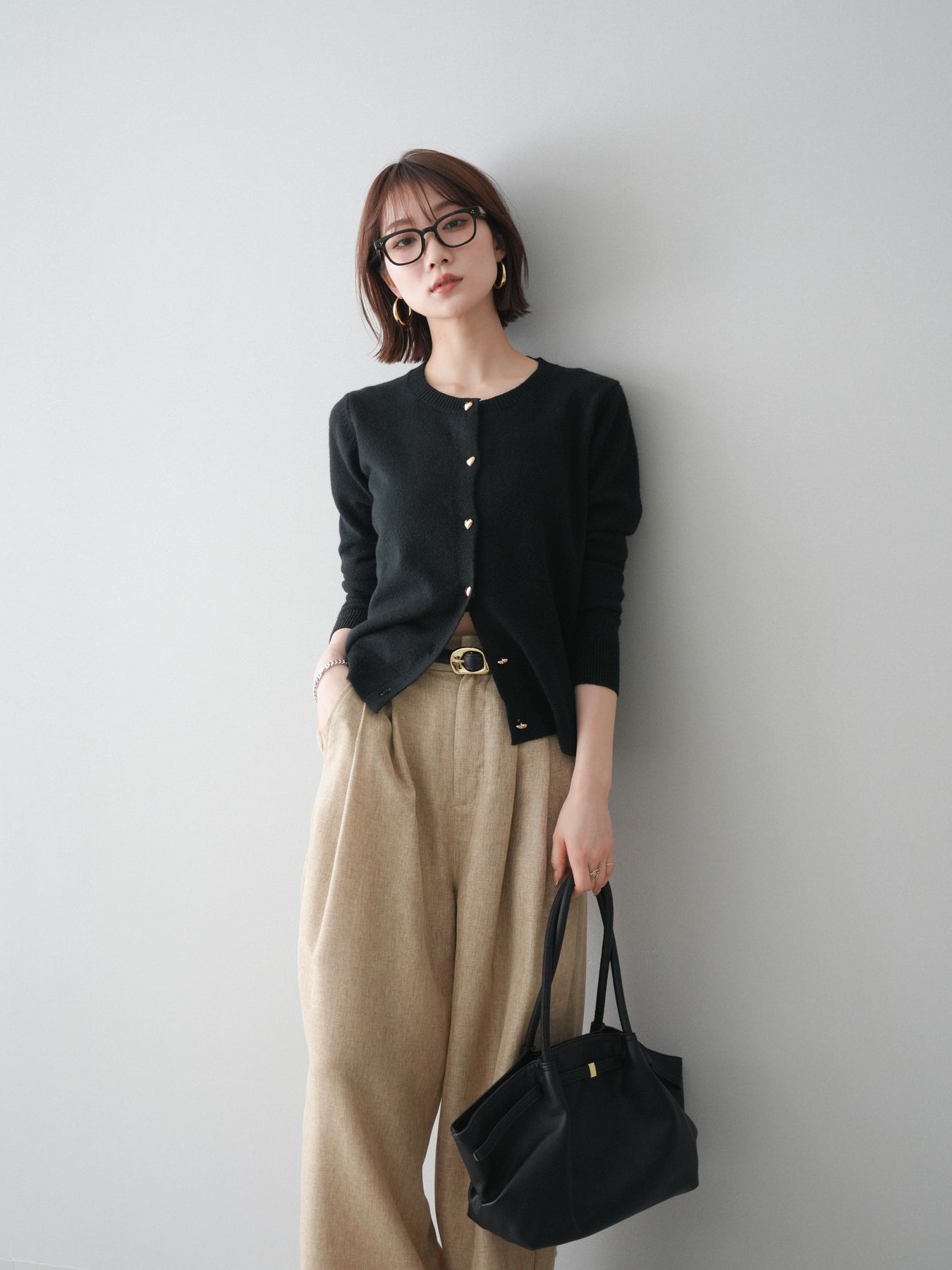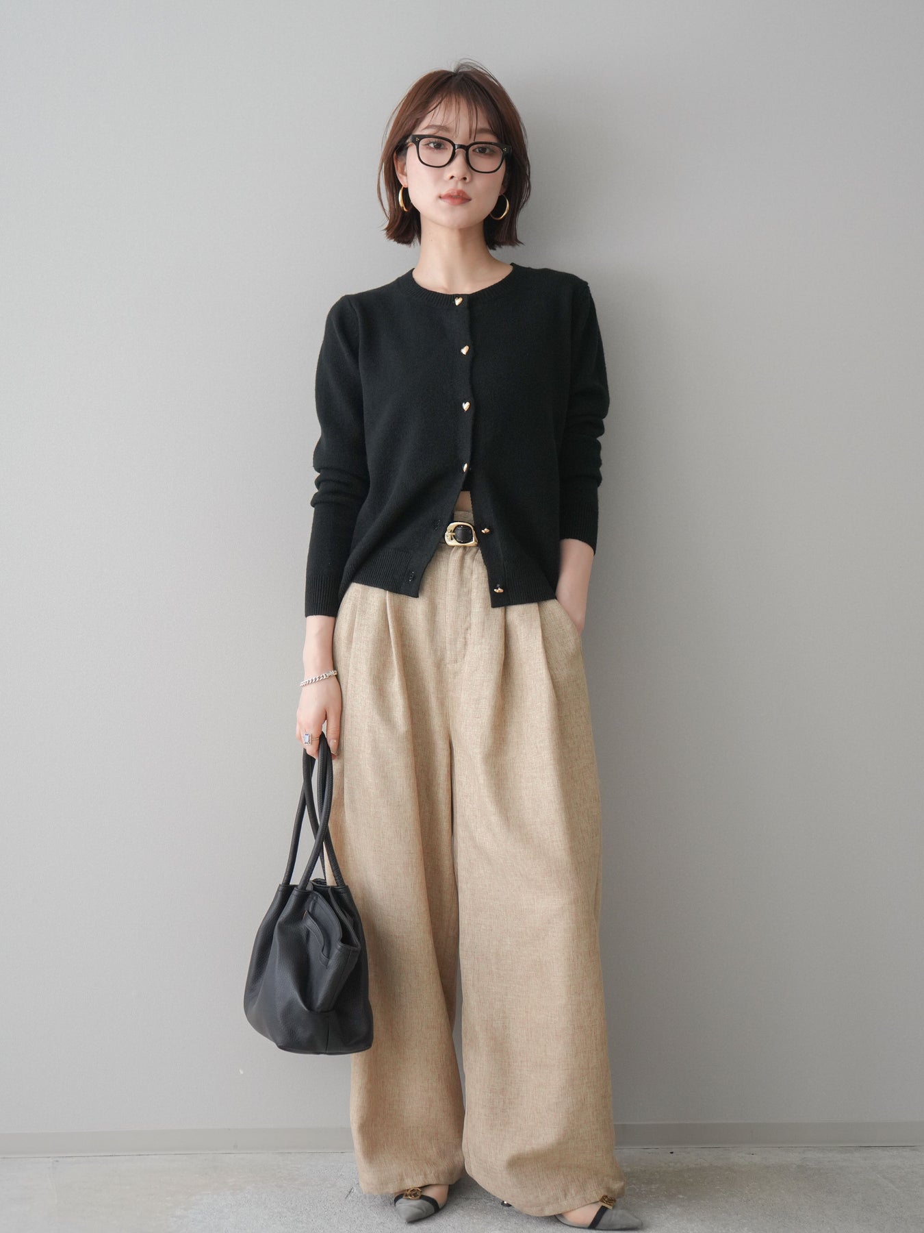 [予約]ハートボタンニットカーディガン/black