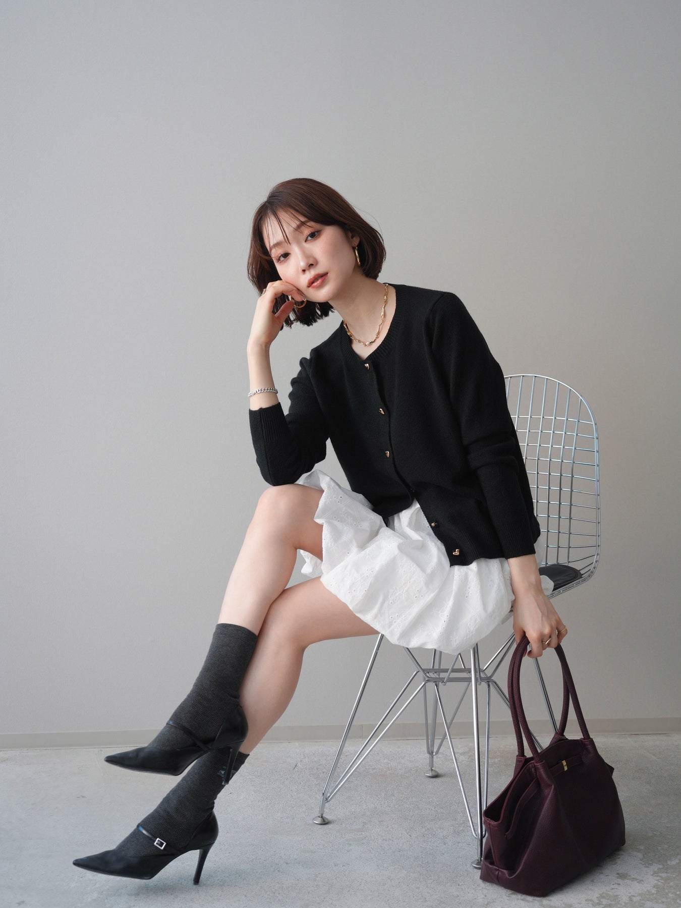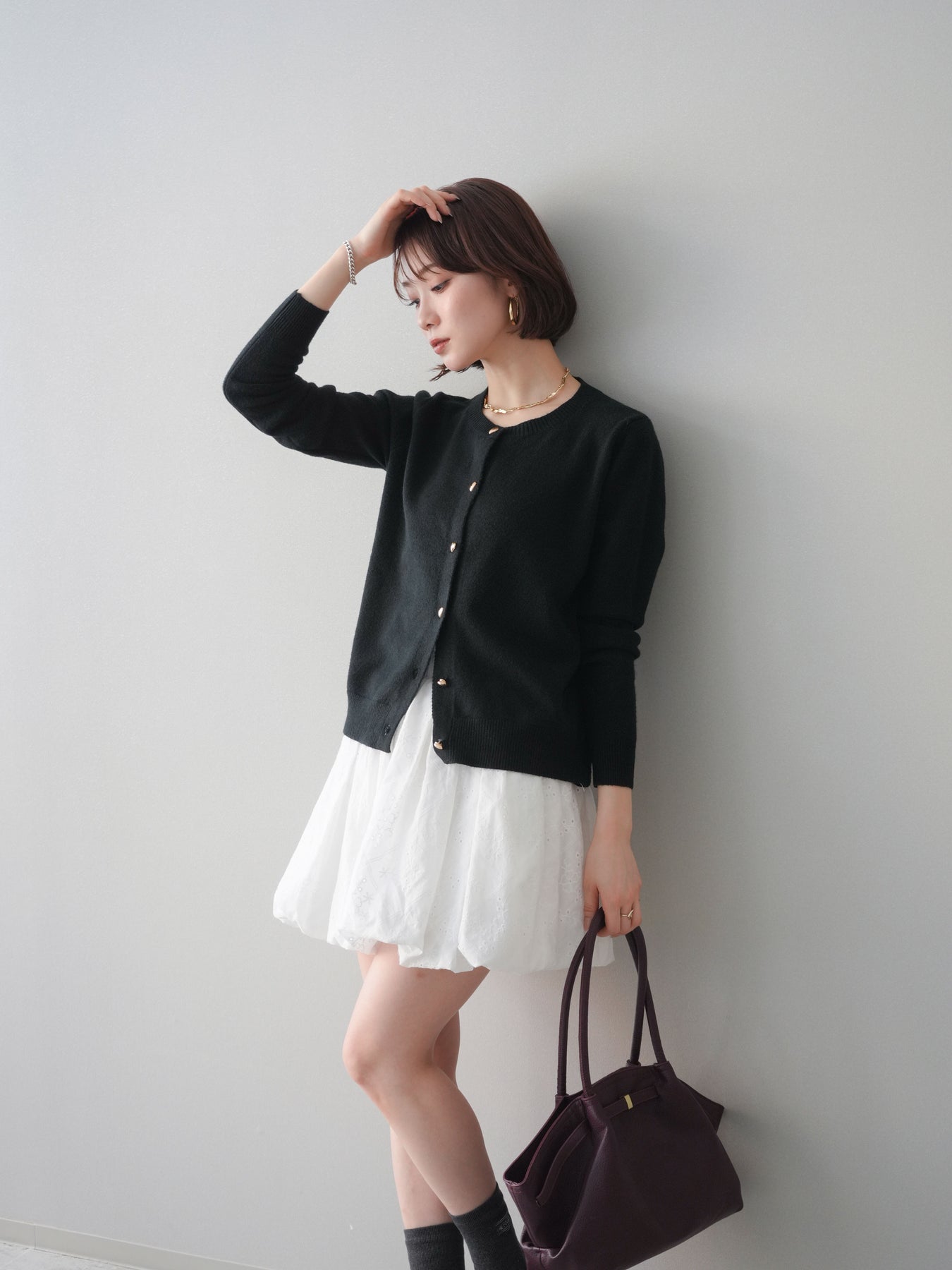 フロントにあしらったハートボタンが目を引くニットカーディガン。シンプルなクルーネックデザインにさりげない甘さをプラスし、コーディネートのアクセントになります。程よくゆとりのあるシルエットで、トップスとしても羽織りとしても着回しやすい一着。デニムやスラックスはもちろん、ワンピースに重ねたスタイリングもおすすめです。 ※ボトムス、キャミソール(インナー)以外の商品は一律でインナーは付属していません。