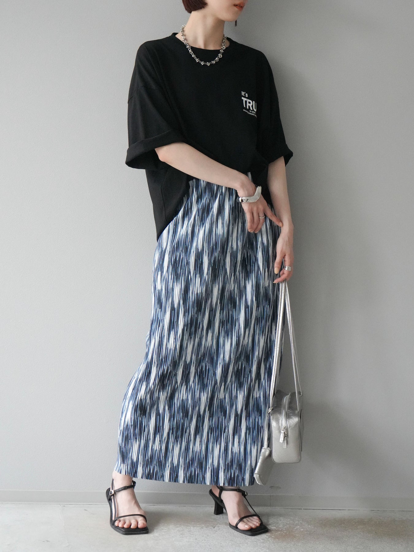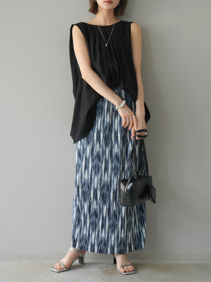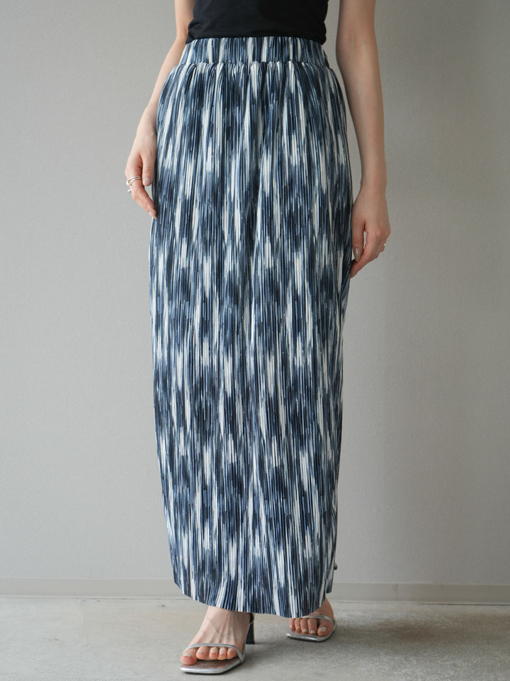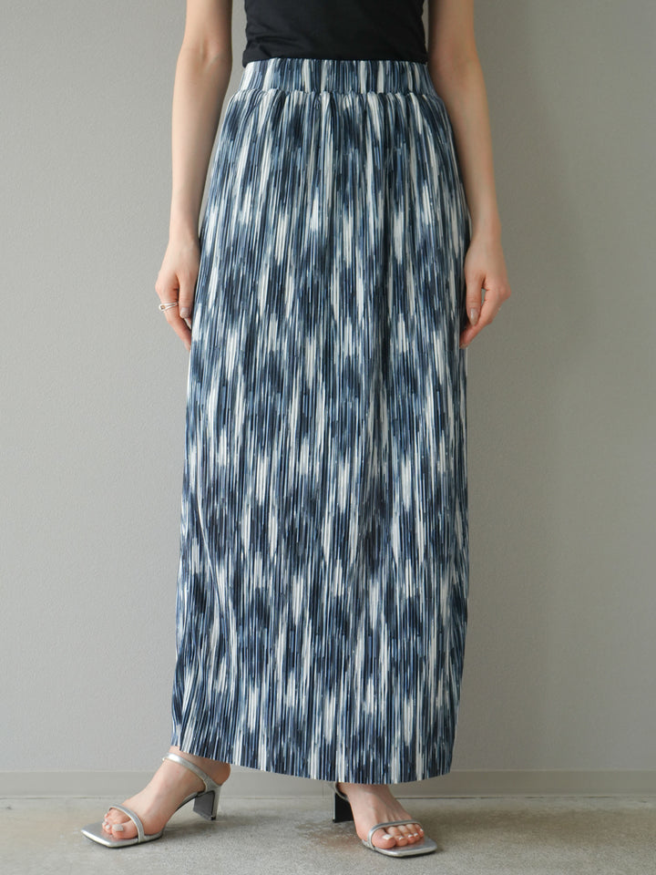 [予約]ニュアンスプリントプリーツスカート/ネイビー