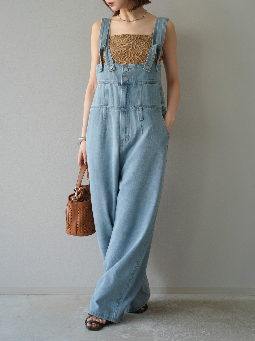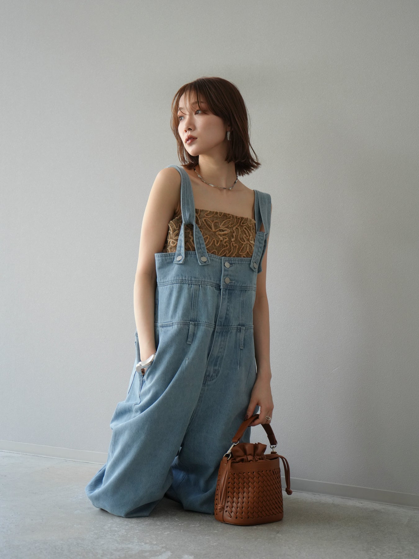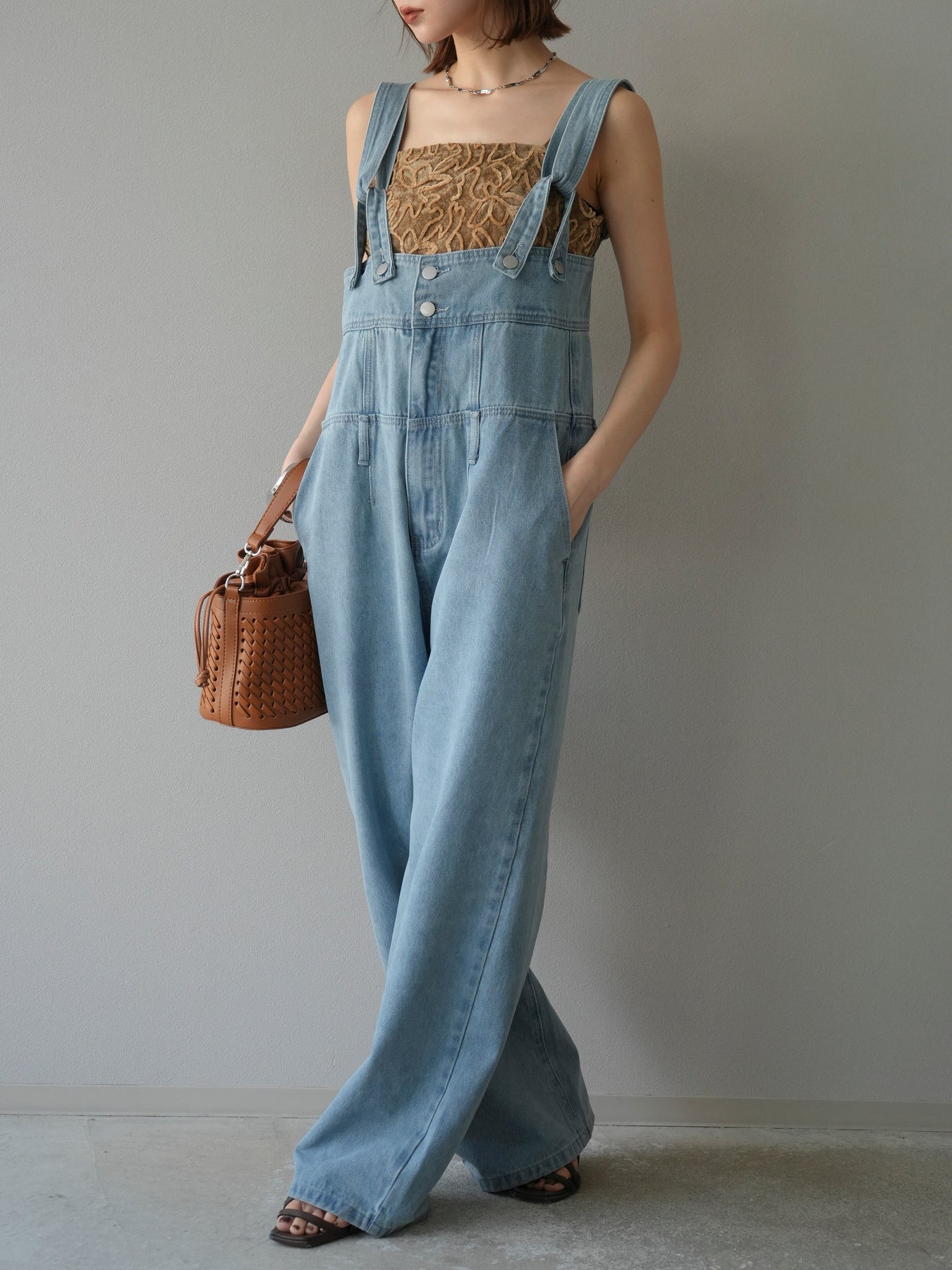存在感のあるハイウエスト仕様とワイドストレートシルエットが、スタイルアップを叶えるサロペット。ウエストまわりをしっかりホールドしつつ、身体のラインを拾わないゆったりとしたシルエットで、抜け感のある大人カジュアルに仕上がります。肩紐は調節可能で、インナーを変えることでロングシーズン活躍。シンプルなトップスに合わせるだけでこなれ感のある着こなしが完成する、1枚で主役になるアイテムです。 ※ボトムス、キャミソール(インナー)以外の商品は一律でインナーは付属していません。