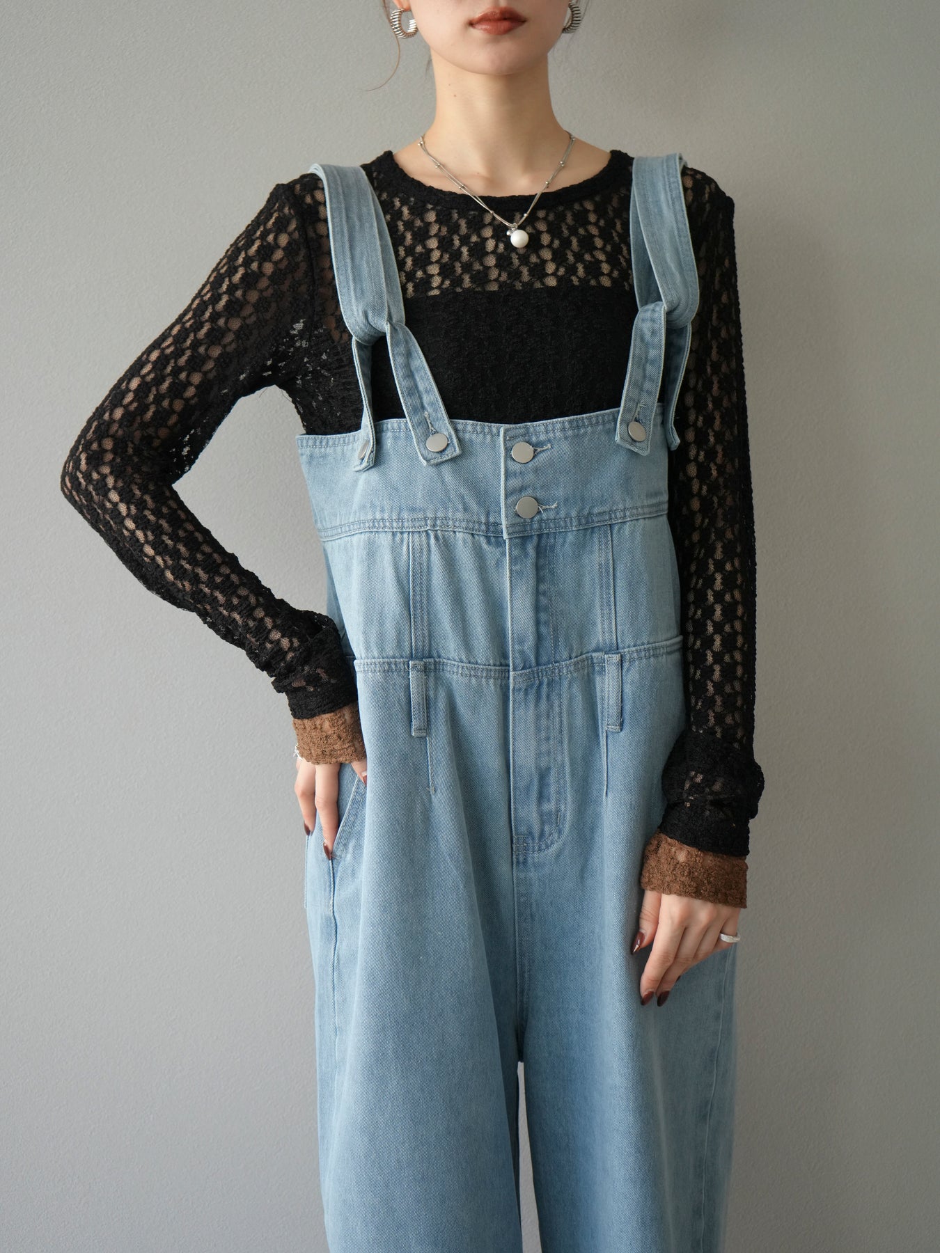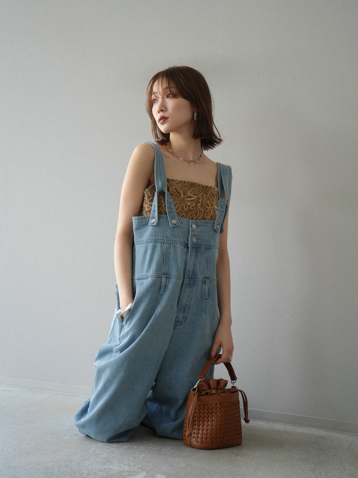 [予約]デニムオーバーハイウエストサロペット/ブルー