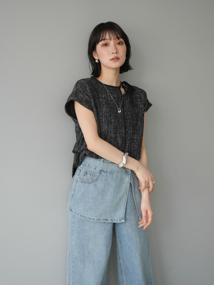 [予約]サマーツイードケープデザインプルオーバー/ブラックホワイト