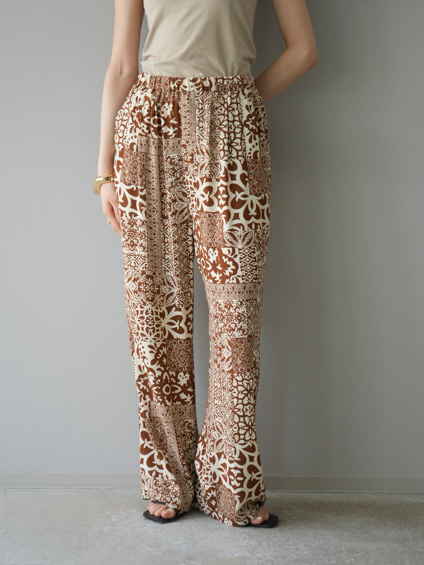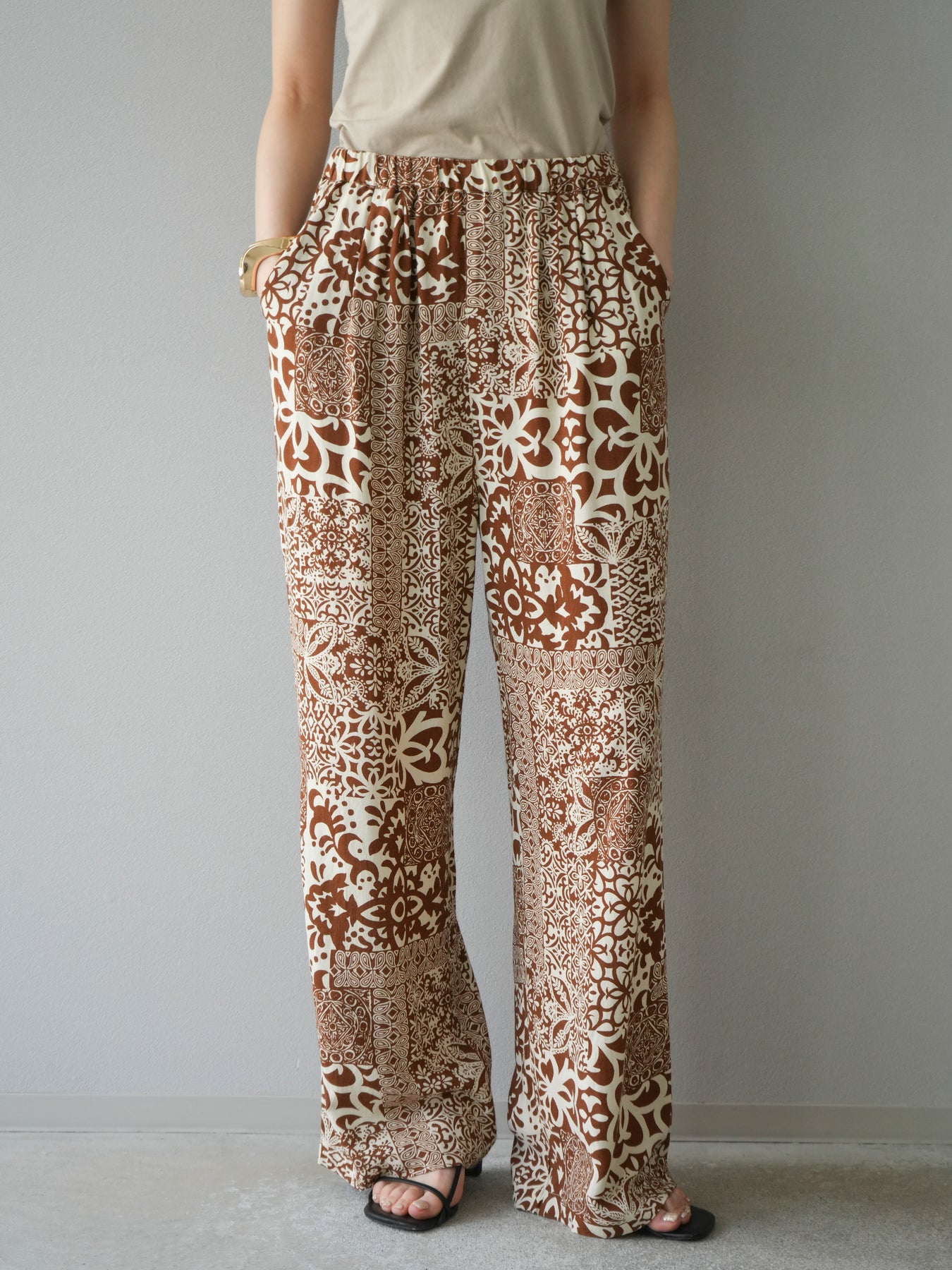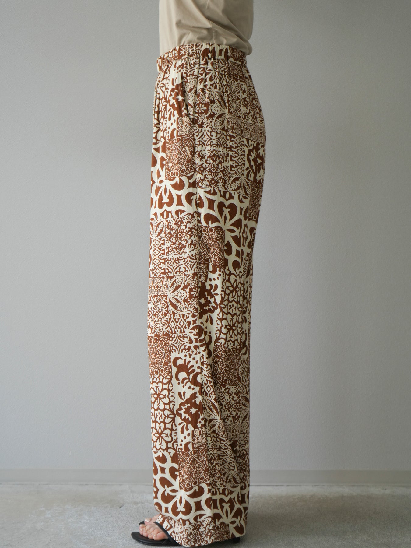 [予約]レーヨンフレックススラランダムパターンストレートパンツ/ベージュ
