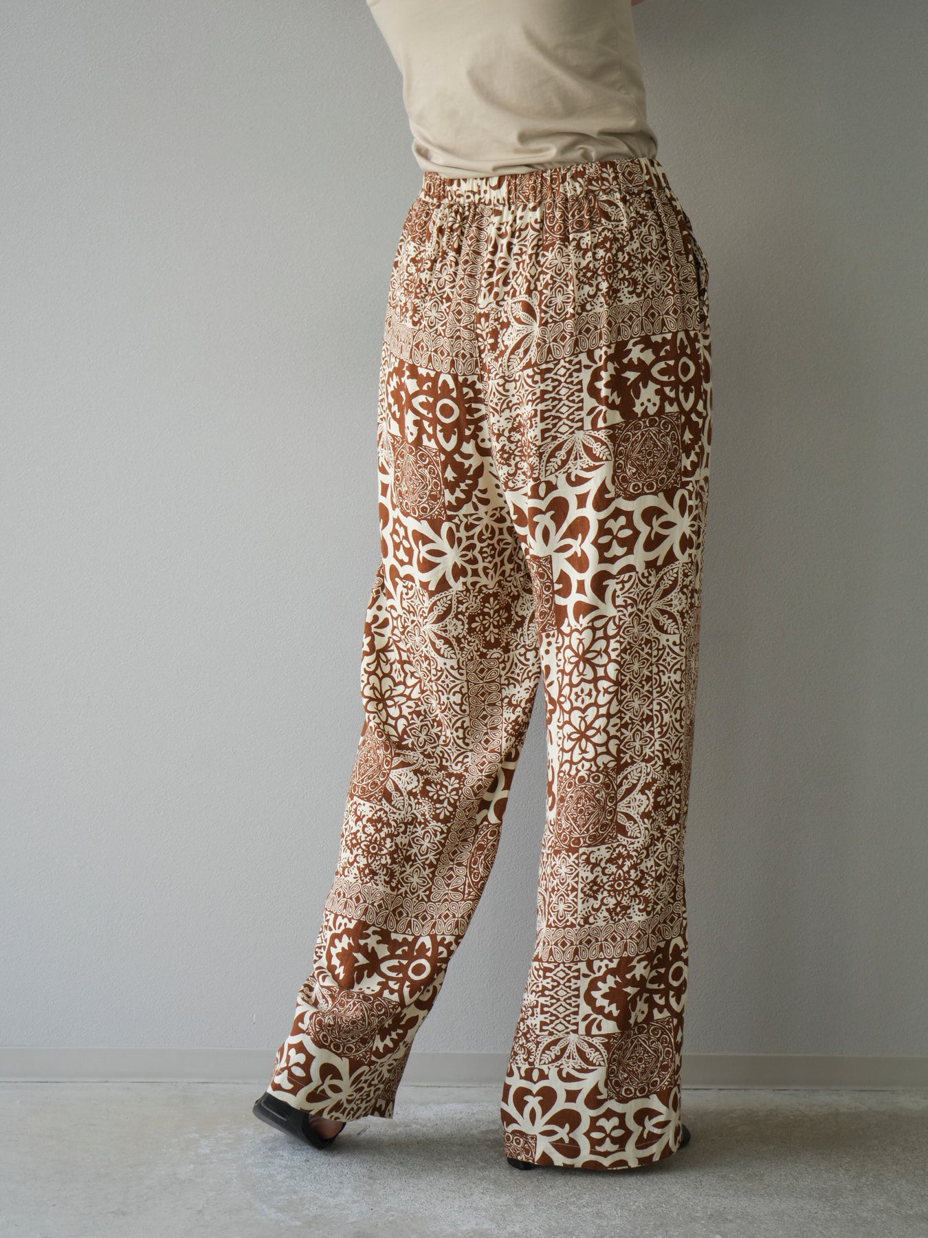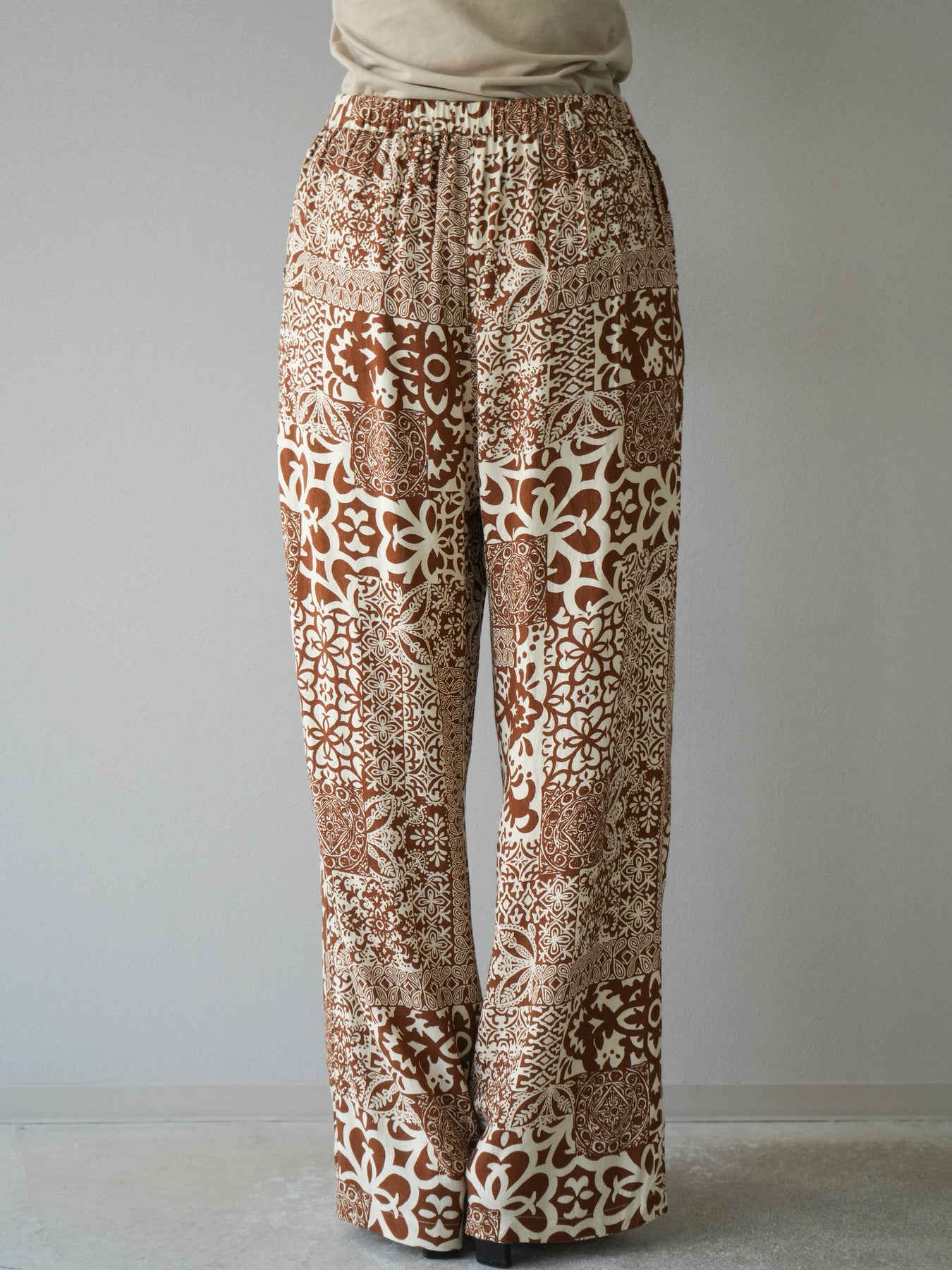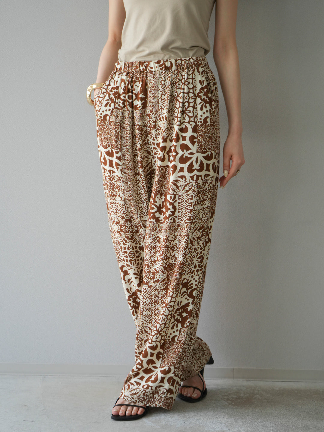 [予約]レーヨンフレックススラランダムパターンストレートパンツ/ベージュ