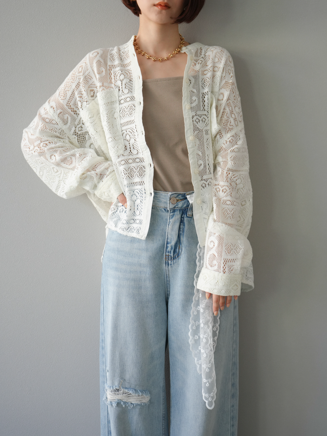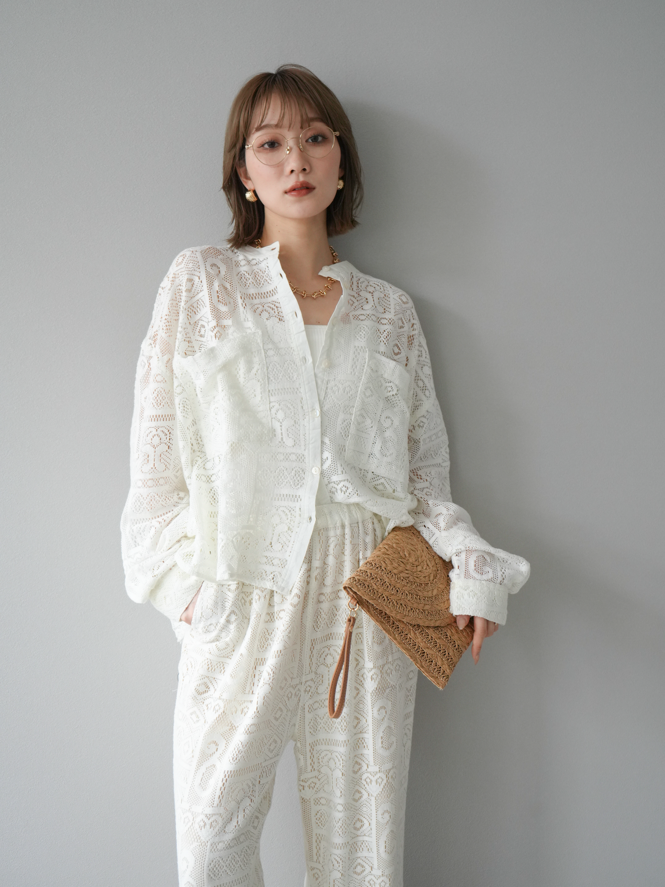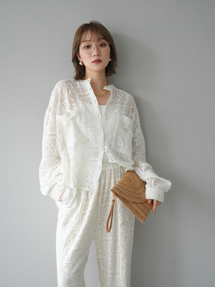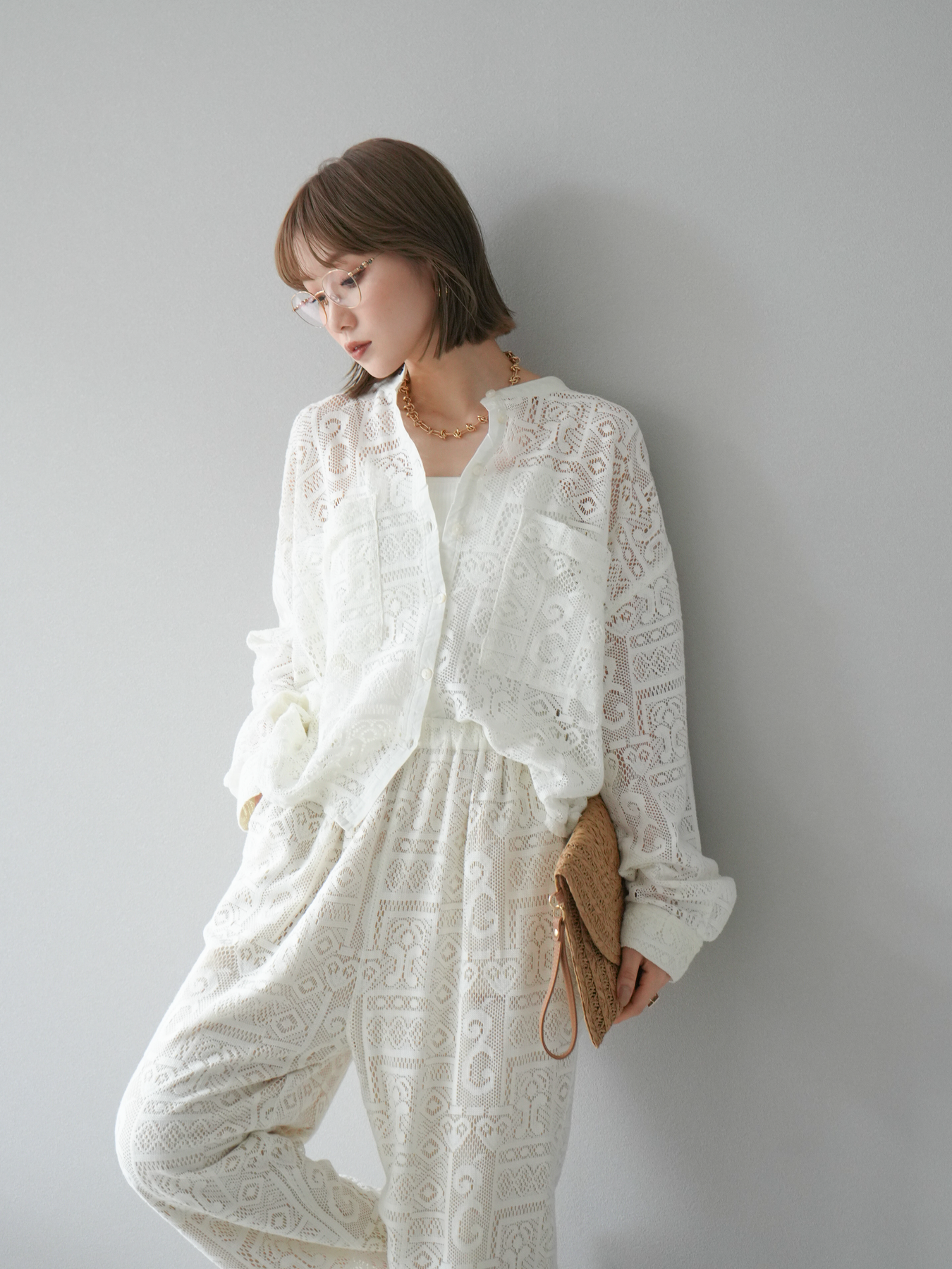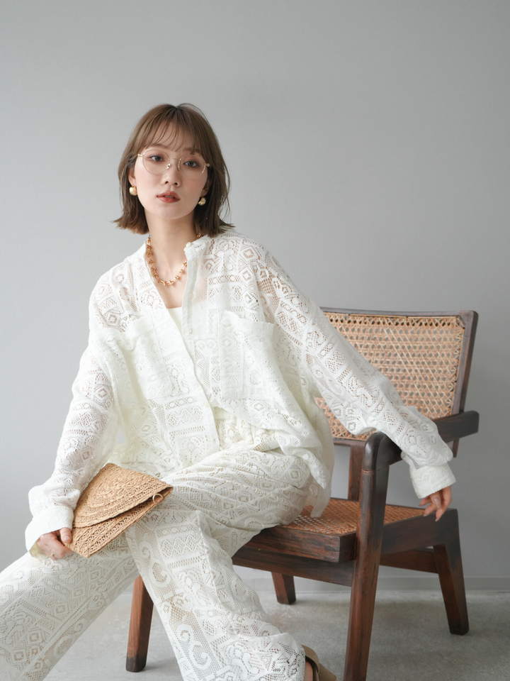 繊細なインド製コットンレースが目を引くルーズシャツ。透け感のある素材が軽やかで、羽織るだけでスタイリングにこなれた雰囲気をプラスします。ゆったりとしたシルエットでリラクシーに着こなせ、トップスとしても羽織としても活躍。ナチュラルな風合いと程よい甘さがトレンド感を引き立てます。 ※ボトムス、キャミソール(インナー)以外の商品は一律でインナーは付属していません