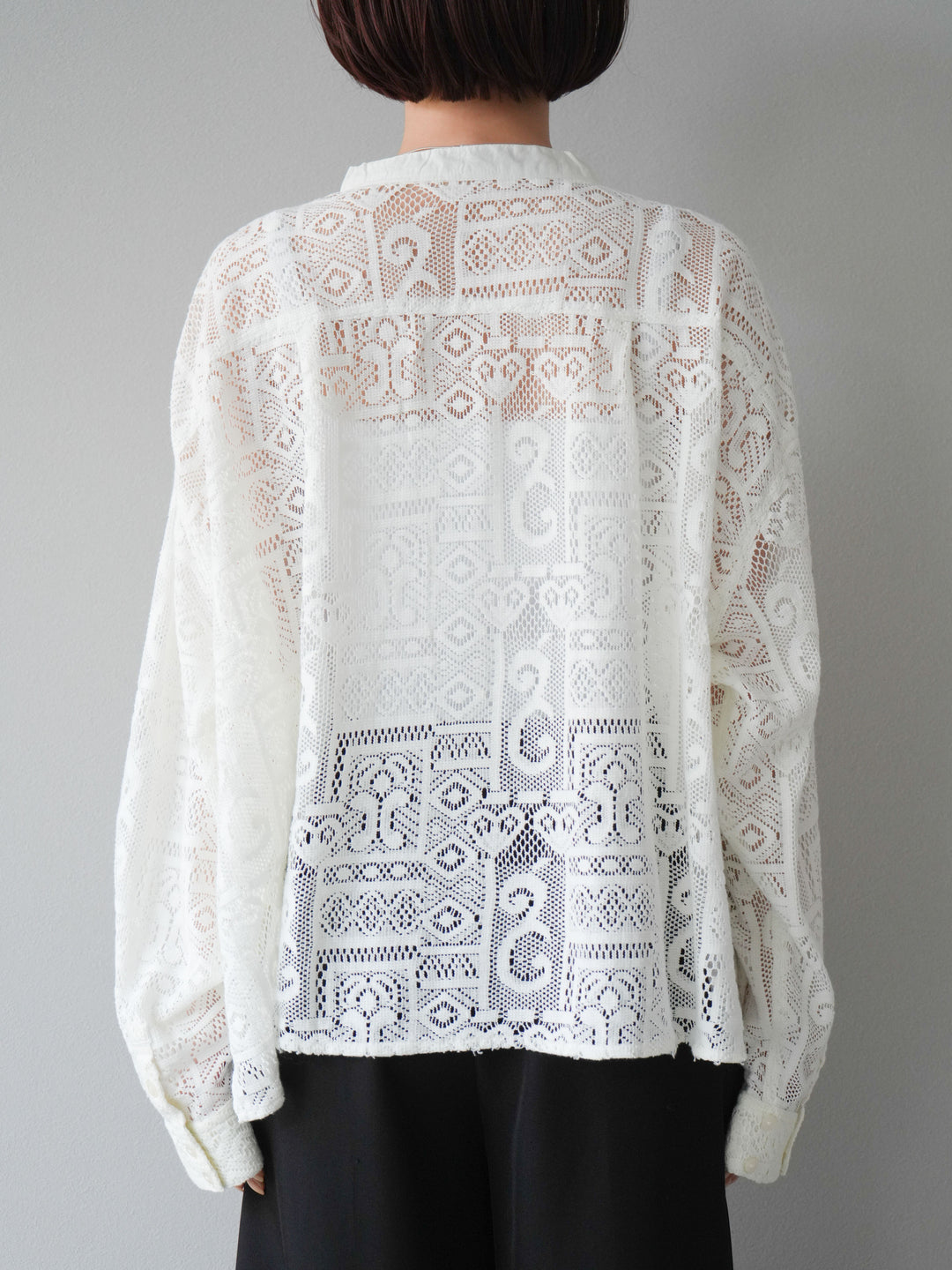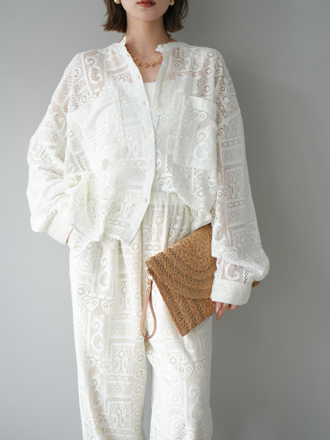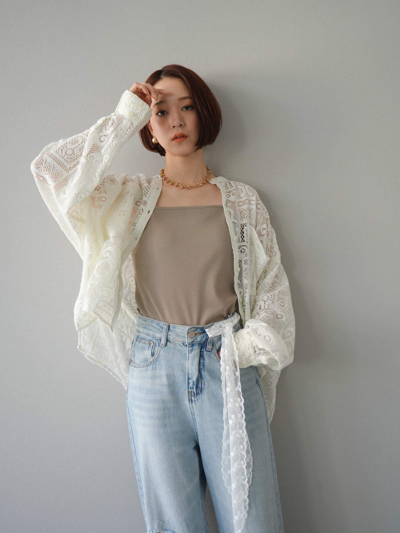 繊細なインド製コットンレースが目を引くルーズシャツ。透け感のある素材が軽やかで、羽織るだけでスタイリングにこなれた雰囲気をプラスします。ゆったりとしたシルエットでリラクシーに着こなせ、トップスとしても羽織としても活躍。ナチュラルな風合いと程よい甘さがトレンド感を引き立てます。 ※ボトムス、キャミソール(インナー)以外の商品は一律でインナーは付属していません