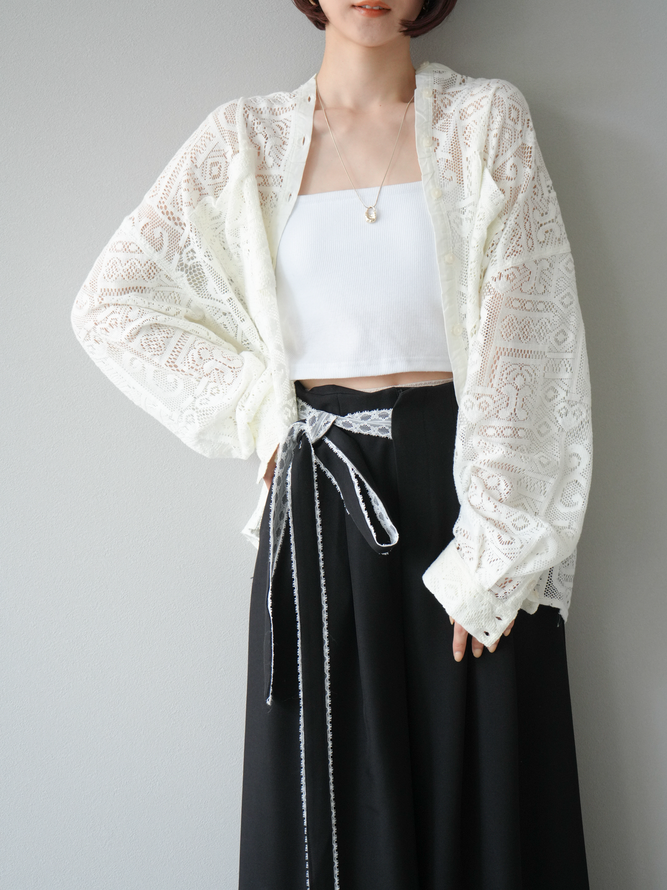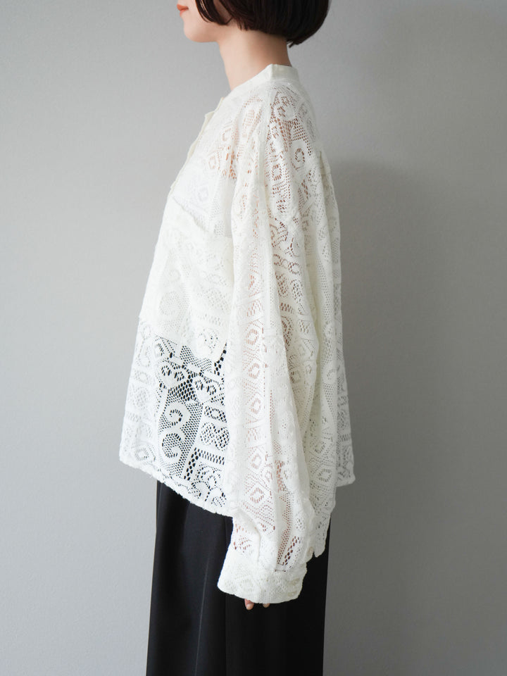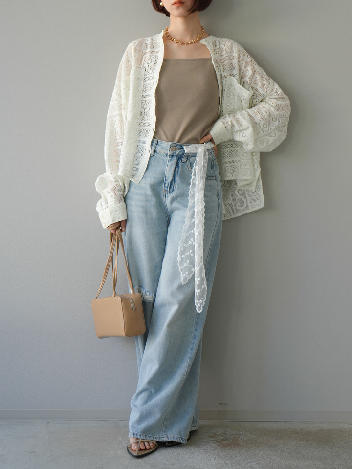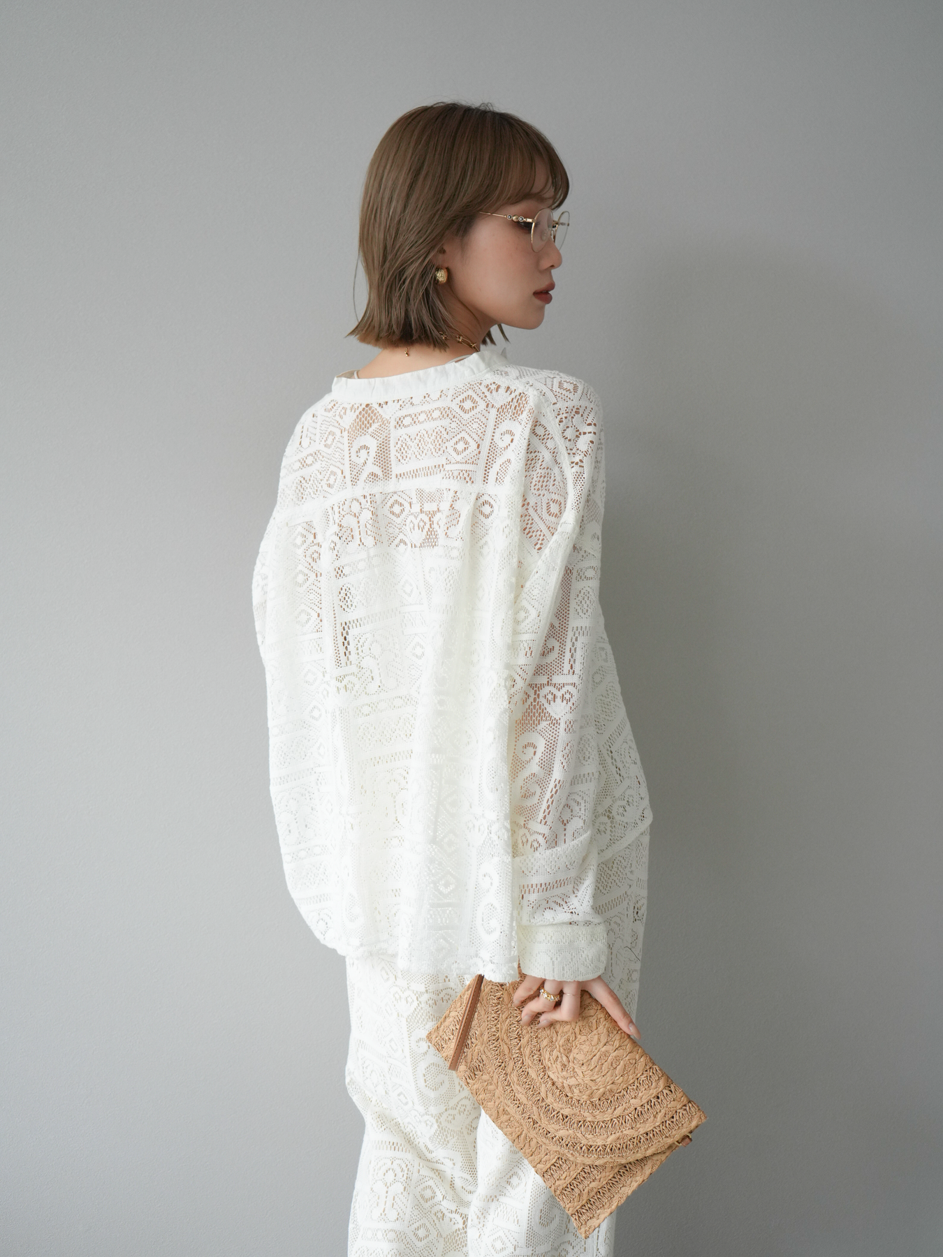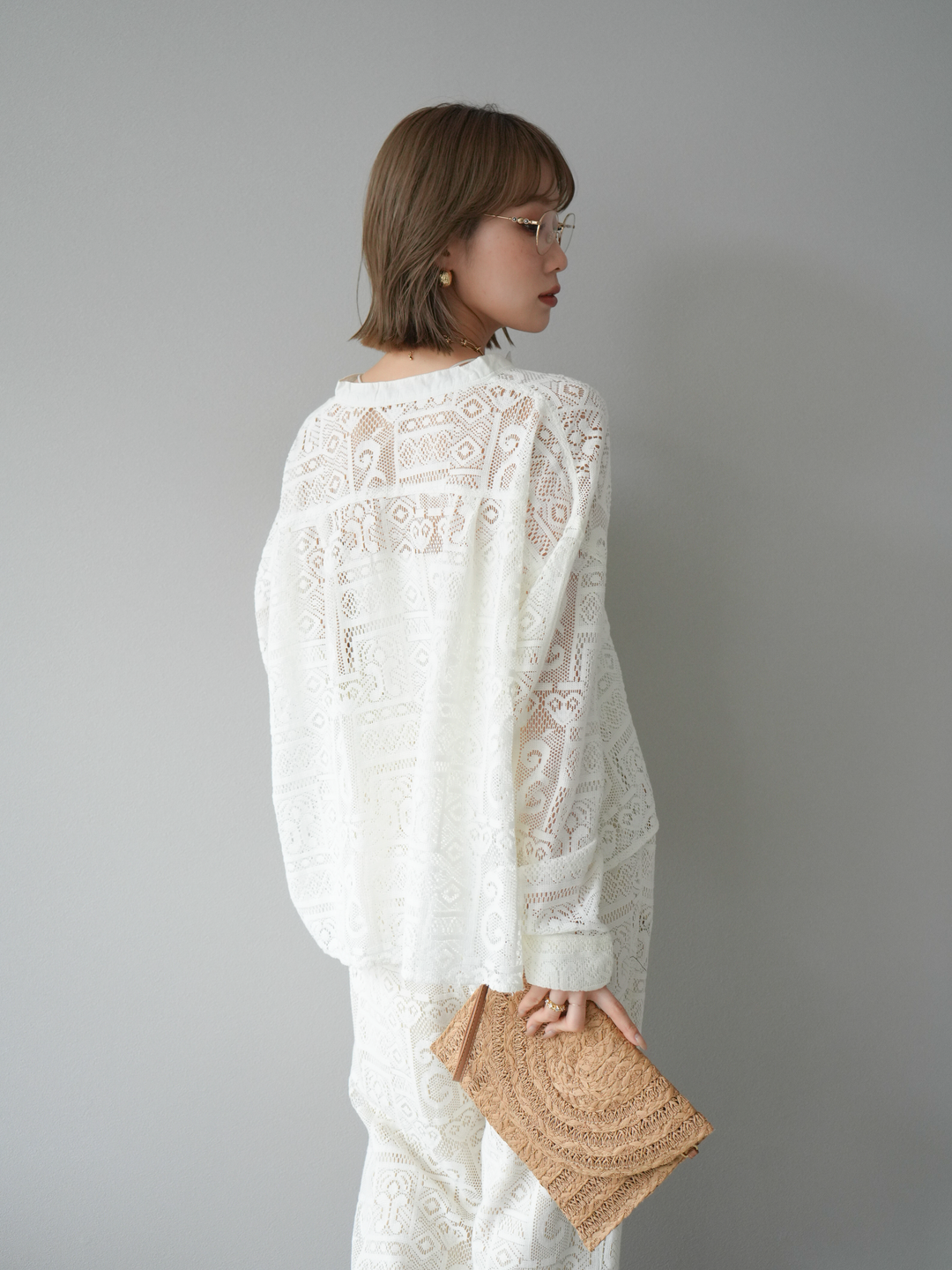 繊細なインド製コットンレースが目を引くルーズシャツ。透け感のある素材が軽やかで、羽織るだけでスタイリングにこなれた雰囲気をプラスします。ゆったりとしたシルエットでリラクシーに着こなせ、トップスとしても羽織としても活躍。ナチュラルな風合いと程よい甘さがトレンド感を引き立てます。 ※ボトムス、キャミソール(インナー)以外の商品は一律でインナーは付属していません