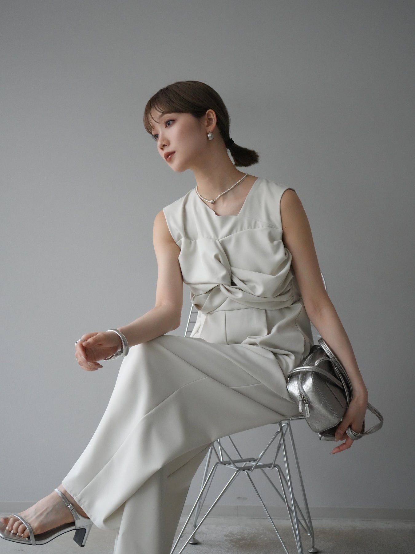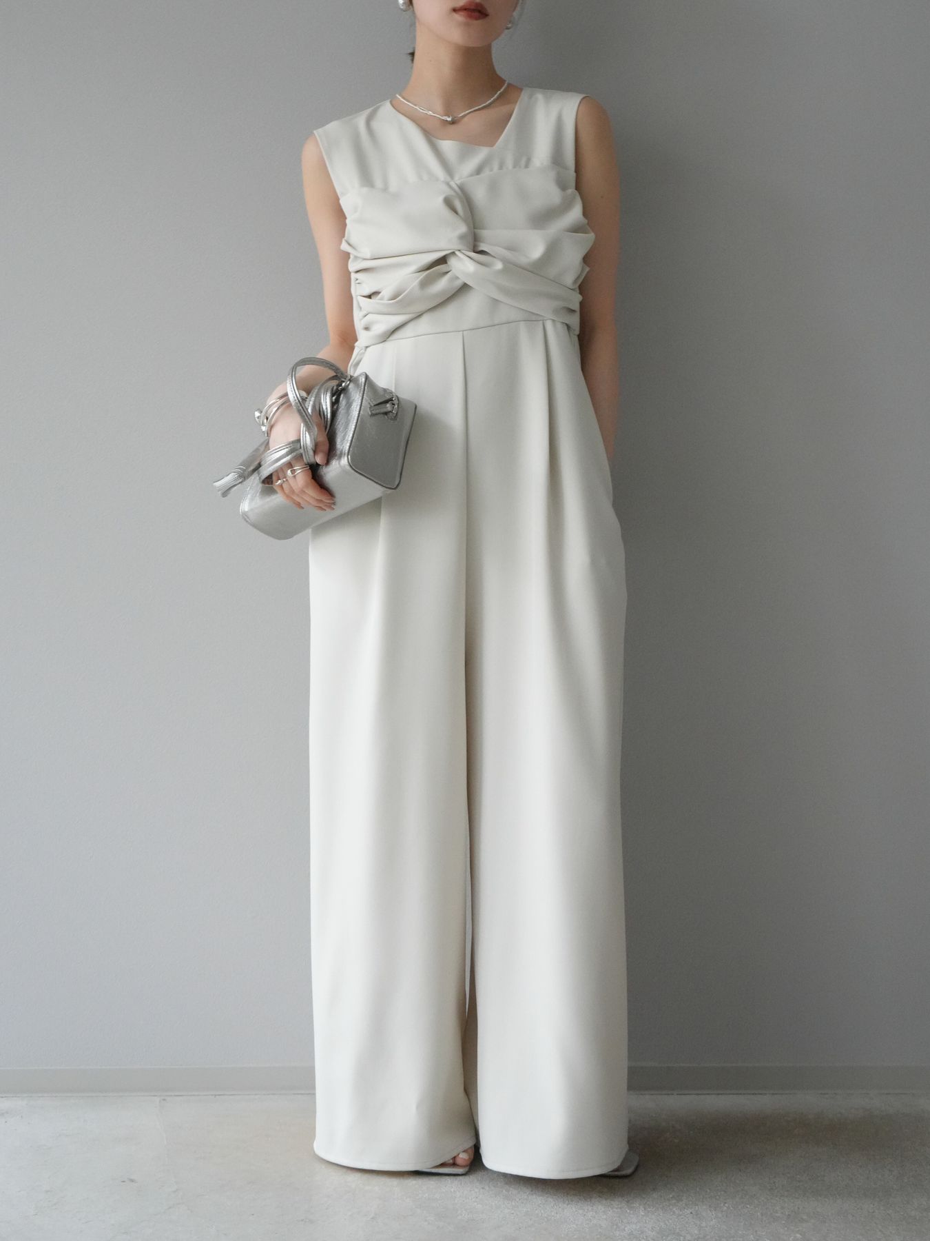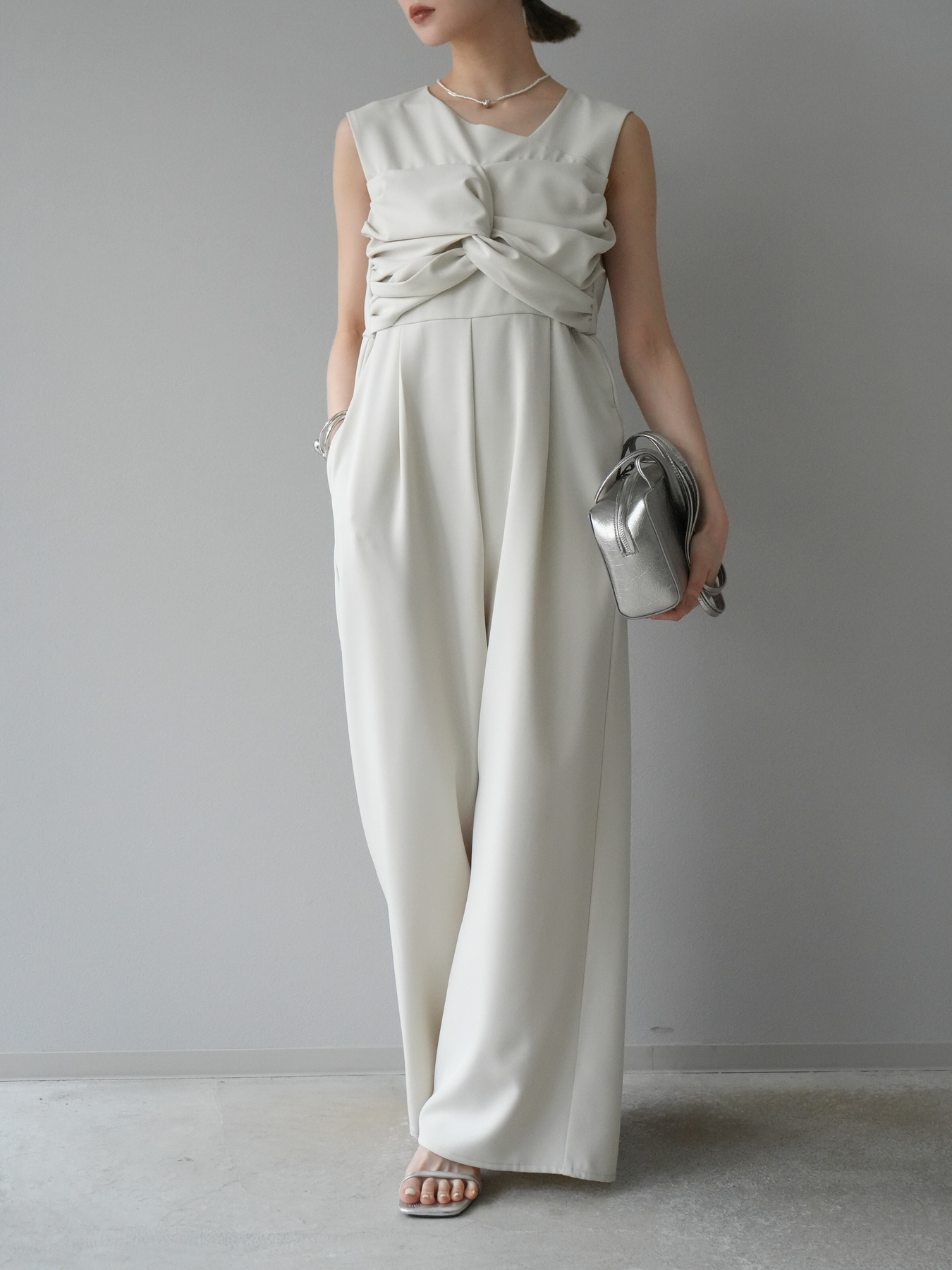 [予約]ツイストアシンメトリーオールインワン/アイボリー