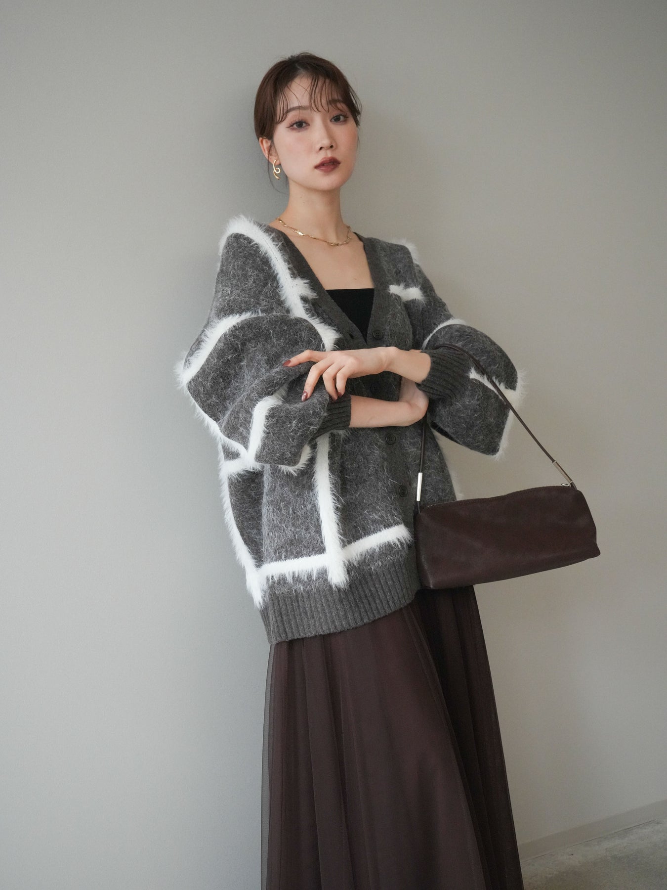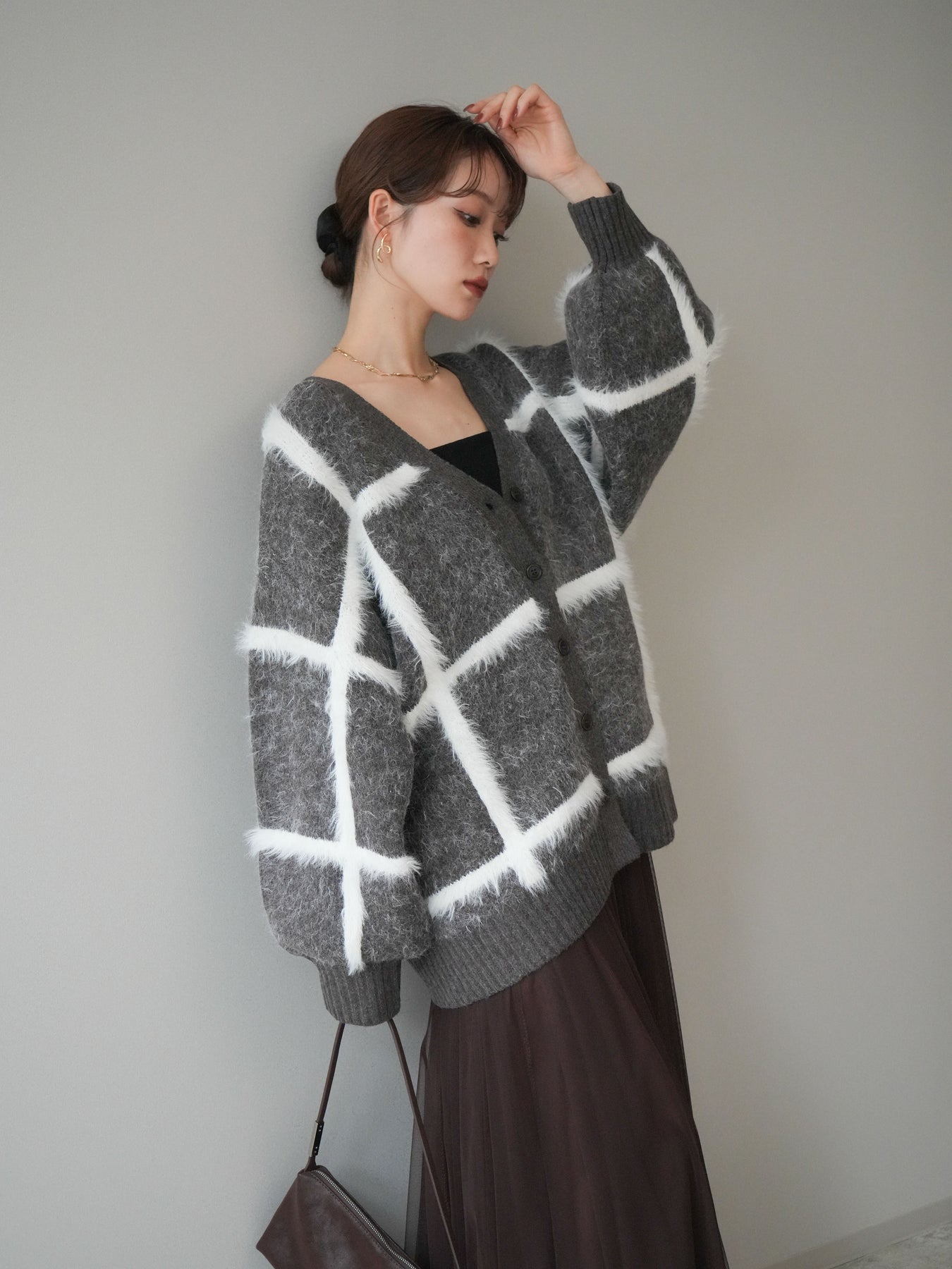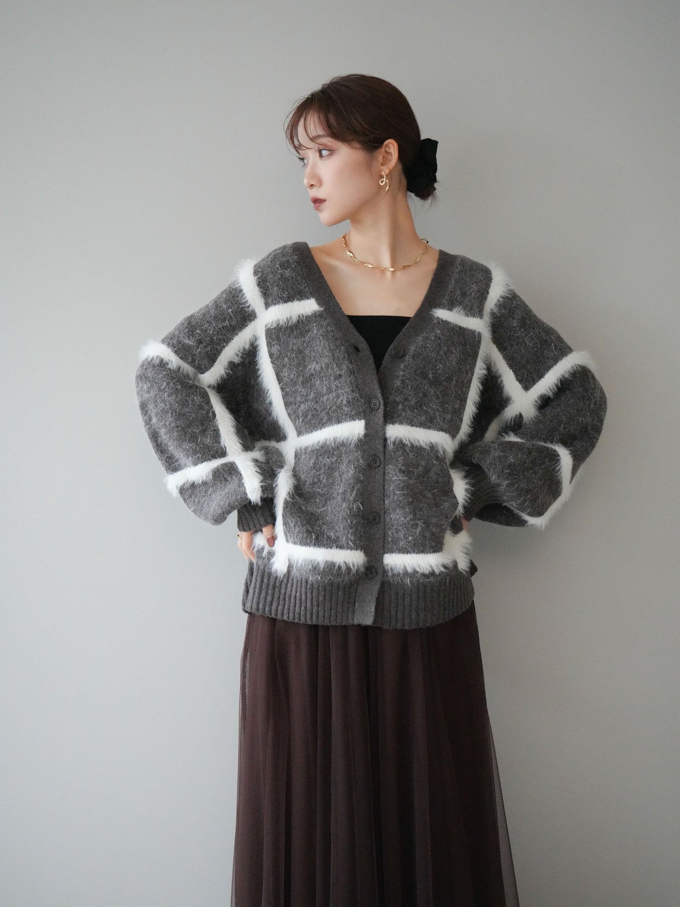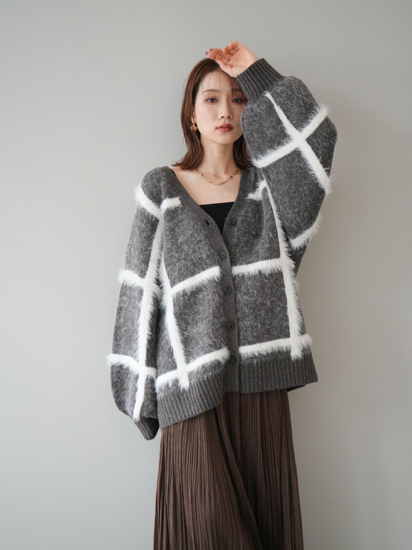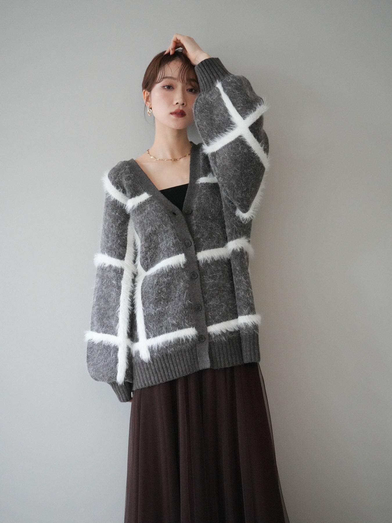 ふんわりとしたミックスシャギー素材で仕立てたチェック柄カーディガン。 異素材のような毛足の長い質感が表情豊かで、シーズンムードを高めてくれます。 大きめの格子デザインが目を惹き、羽織るだけでスタイリングの主役になる1枚。 ゆったりとしたシルエットが抜け感を演出し、リラックス感のある着心地です。 デニムやスカートなど、幅広いアイテムと好相性で、カジュアルにもフェミニンにも着回せる万能カーディガンです。 ※ボトムス、キャミソール(インナー)以外の商品は一律でインナーは付属していません。