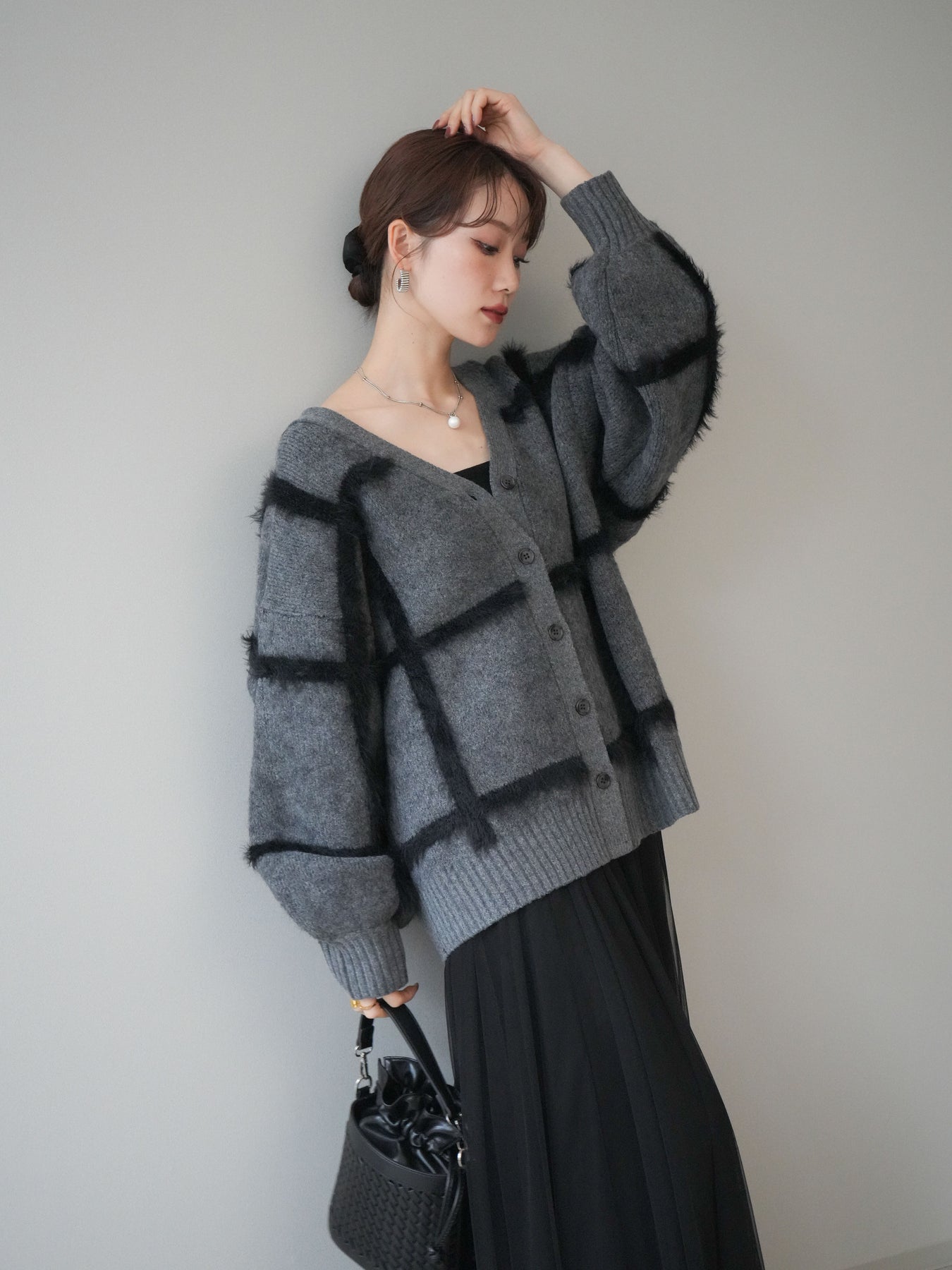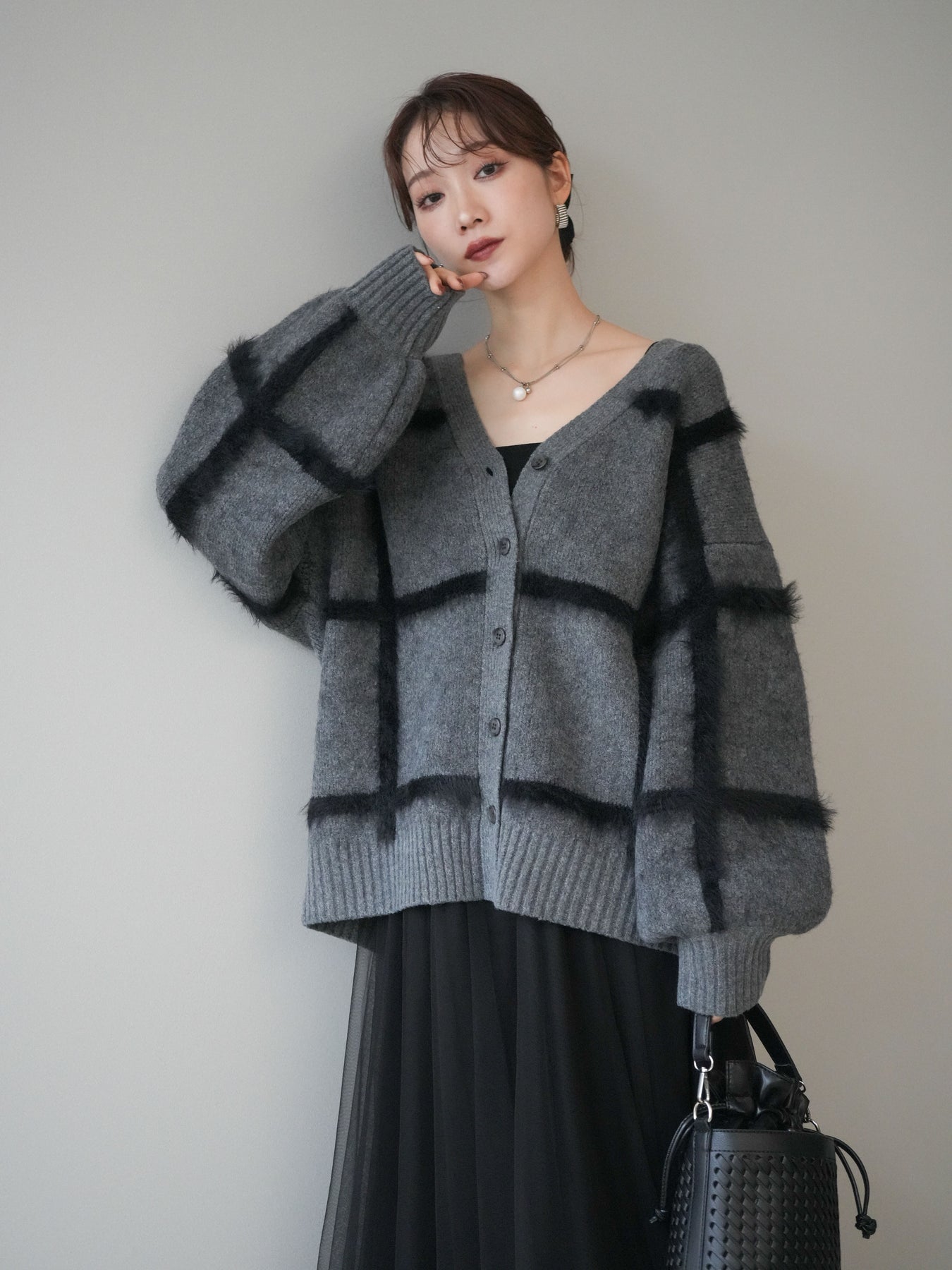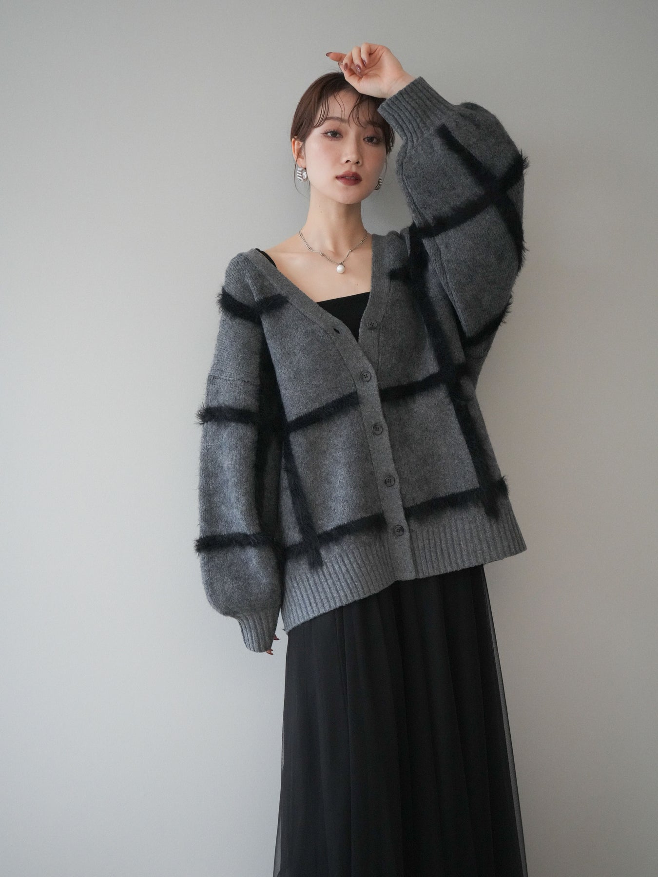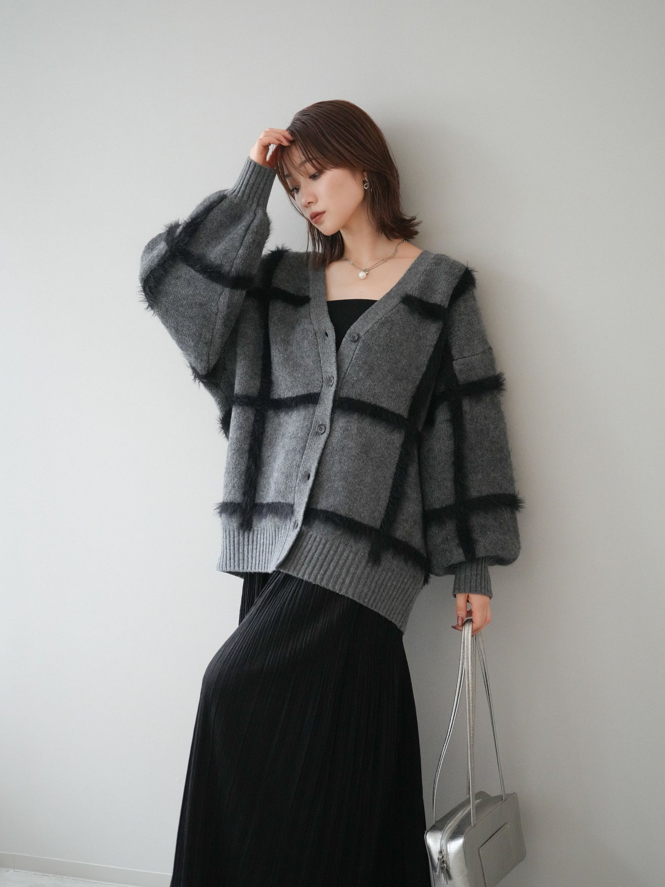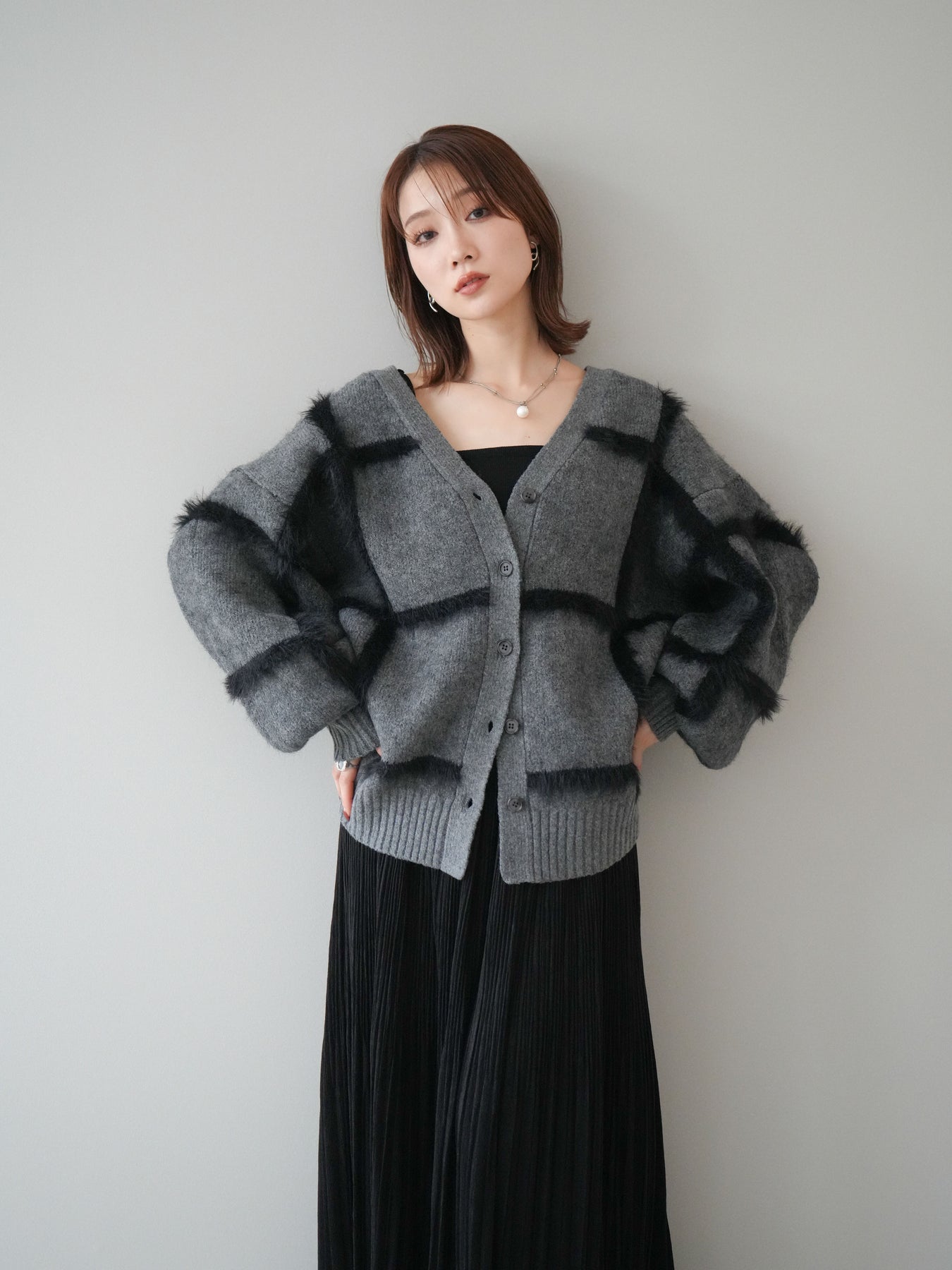 [予約]ミックスシャギーチェックカーディガン/charcoal