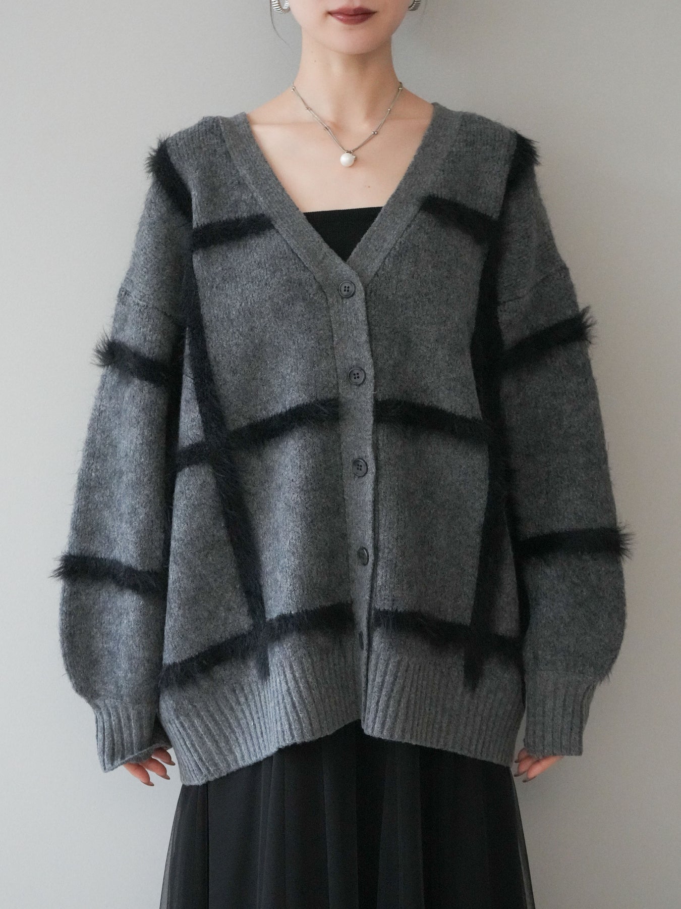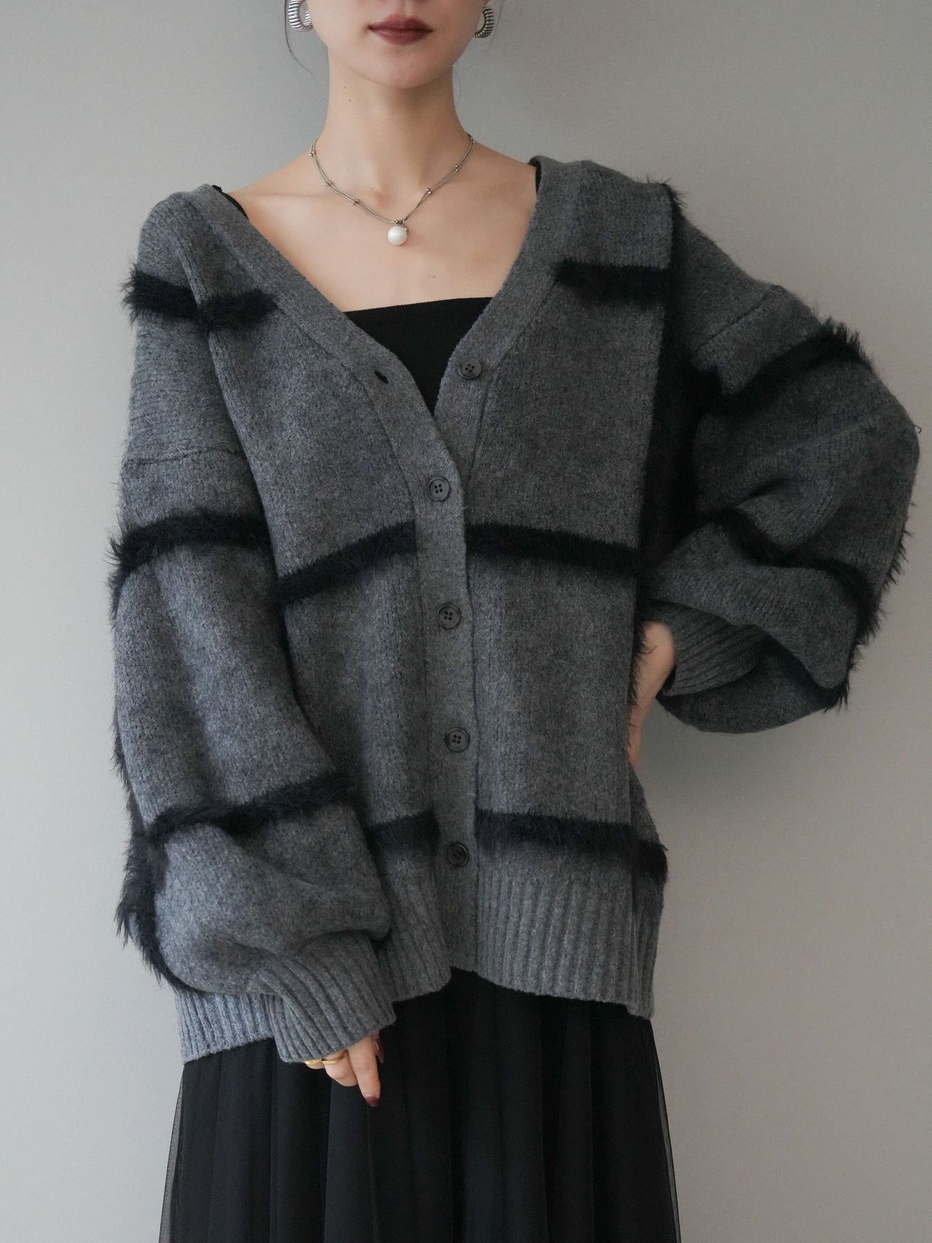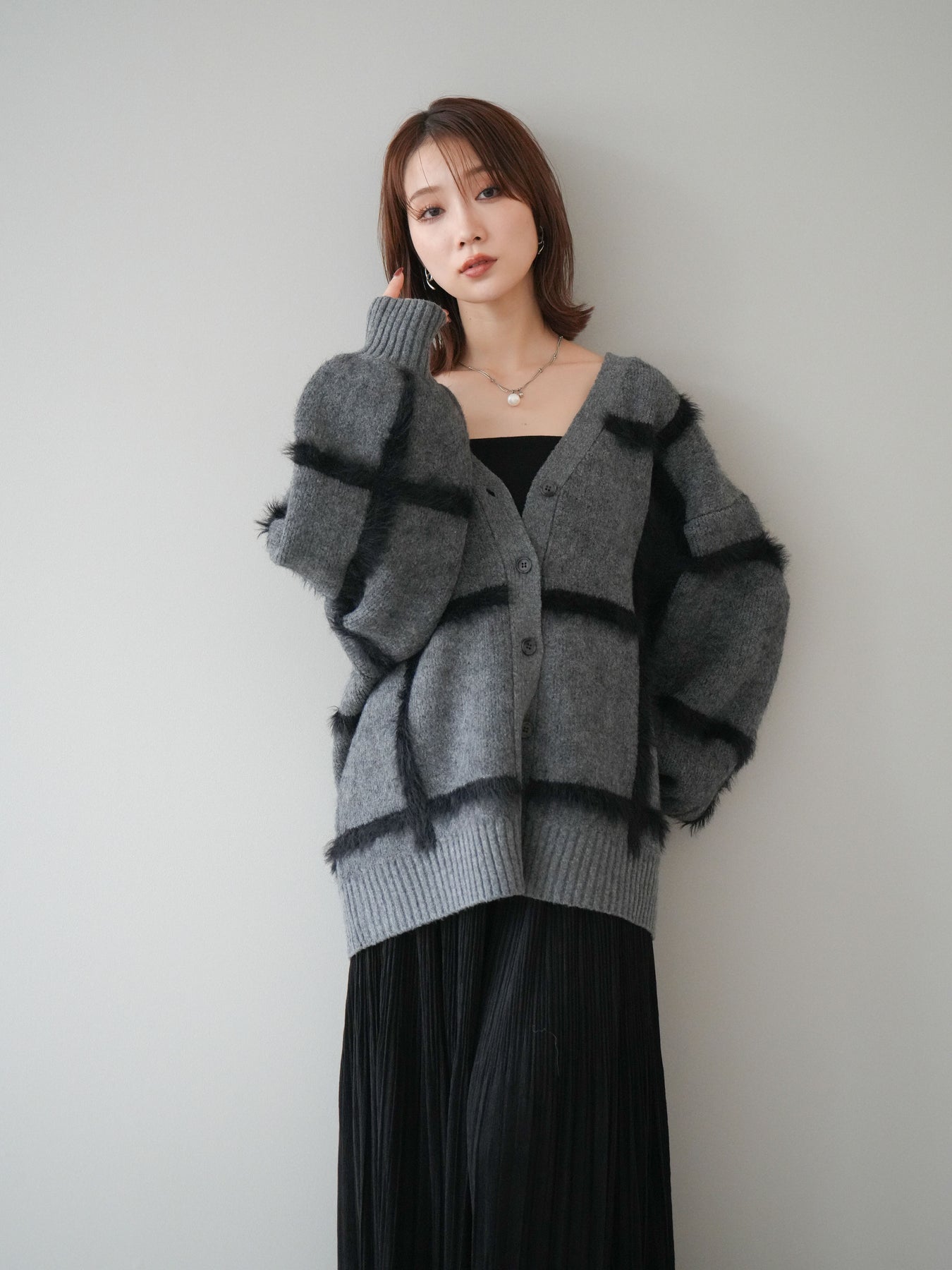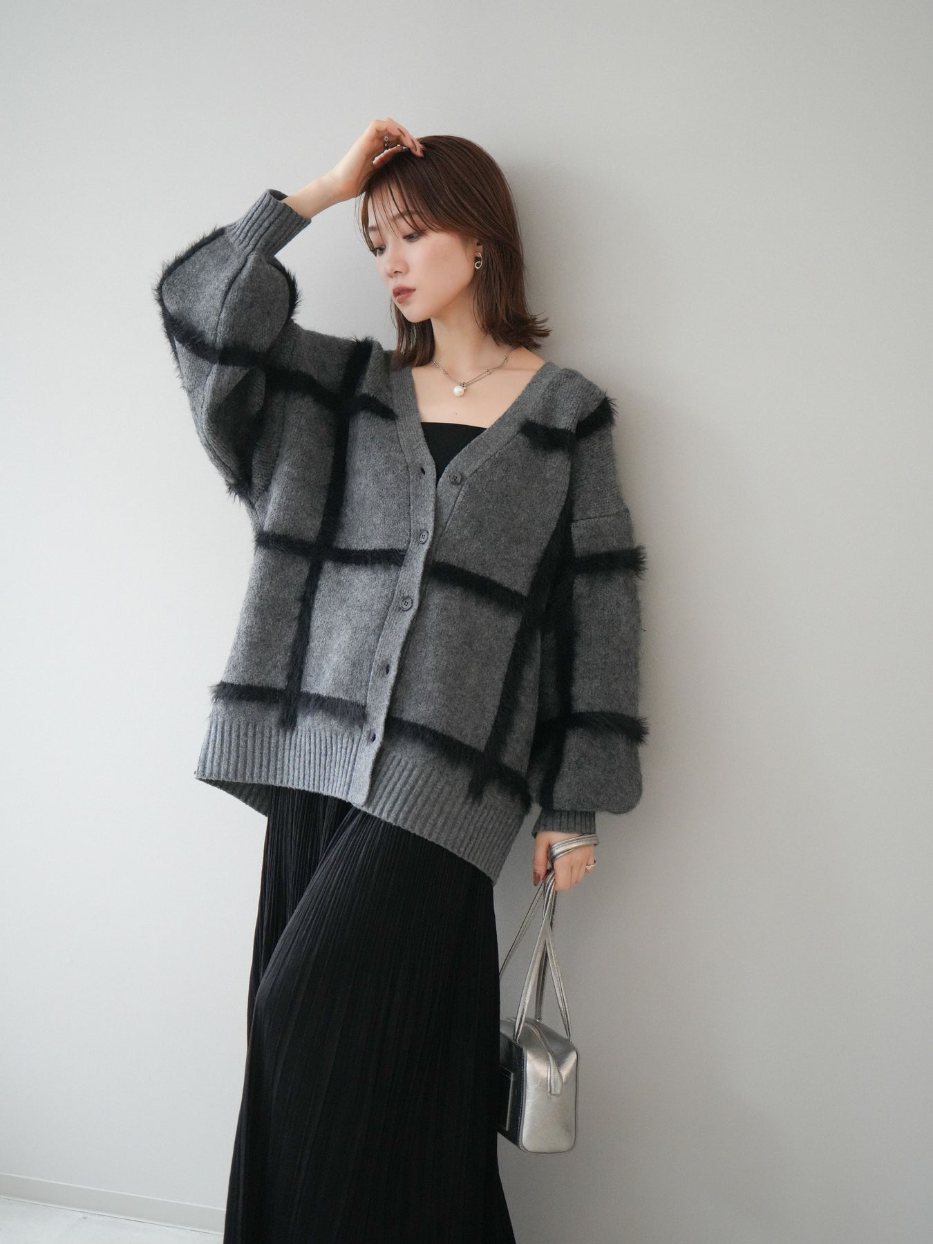 [予約]ミックスシャギーチェックカーディガン/charcoal