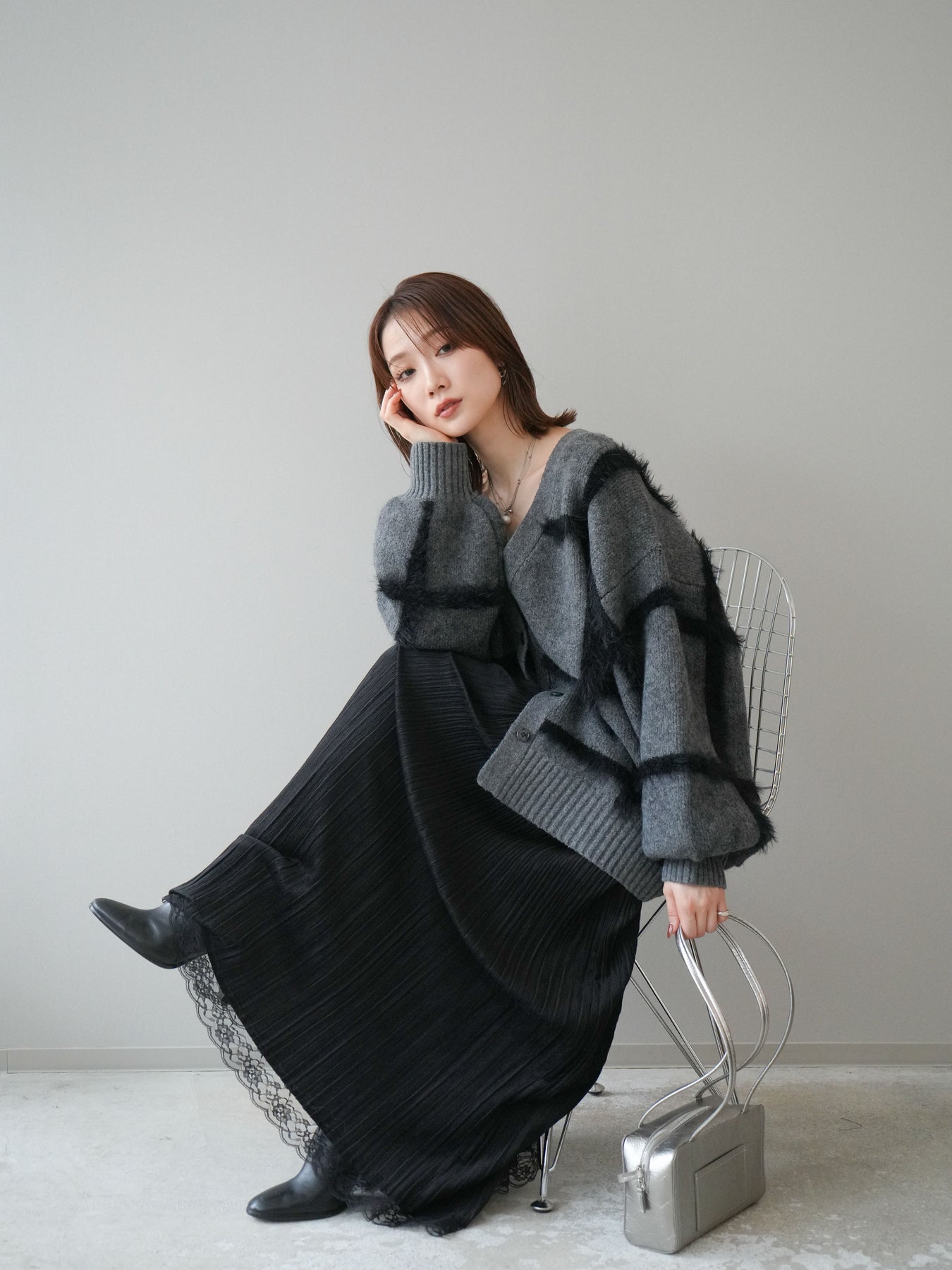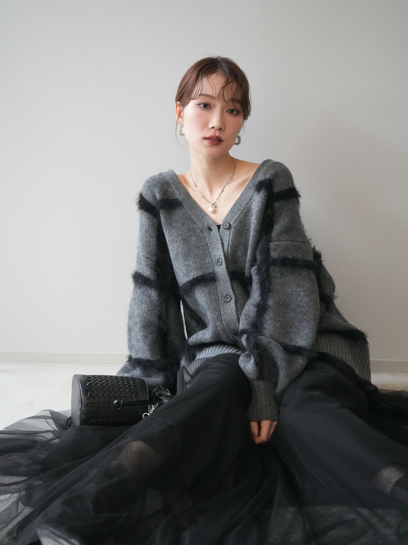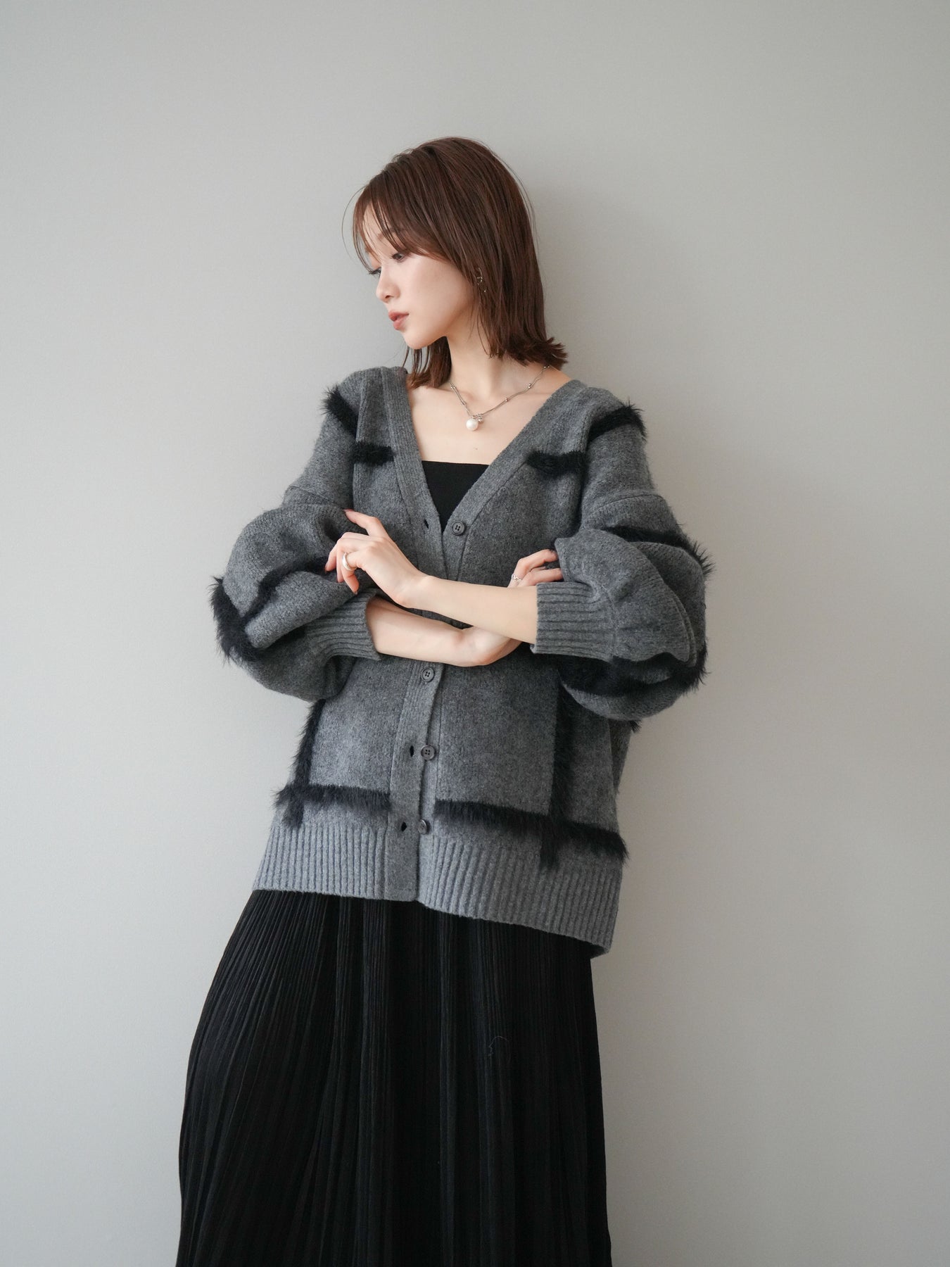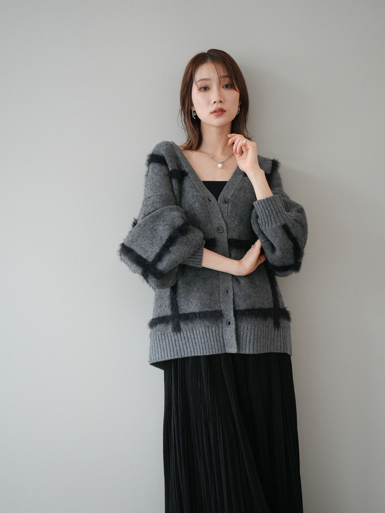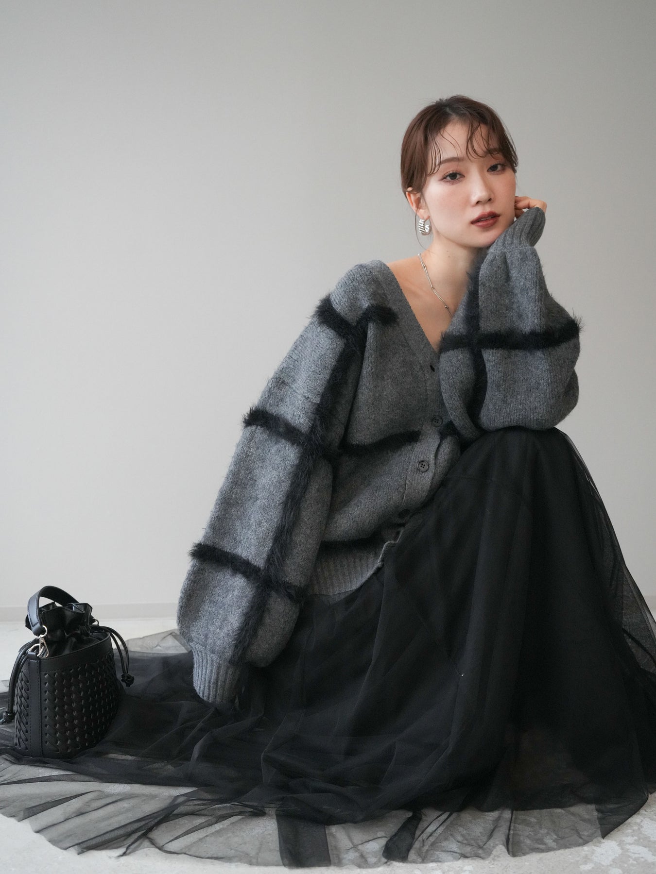 [予約]ミックスシャギーチェックカーディガン/charcoal
