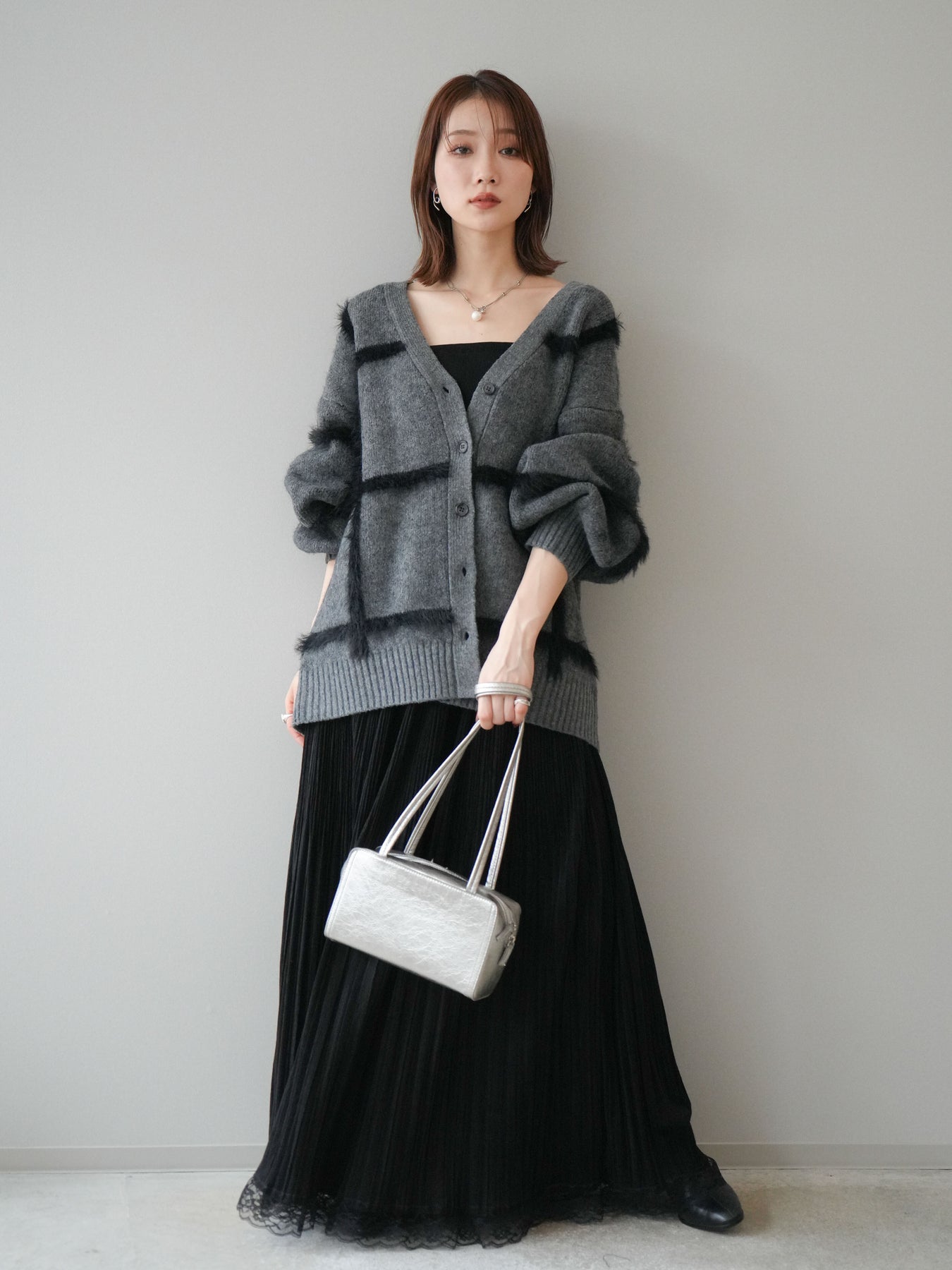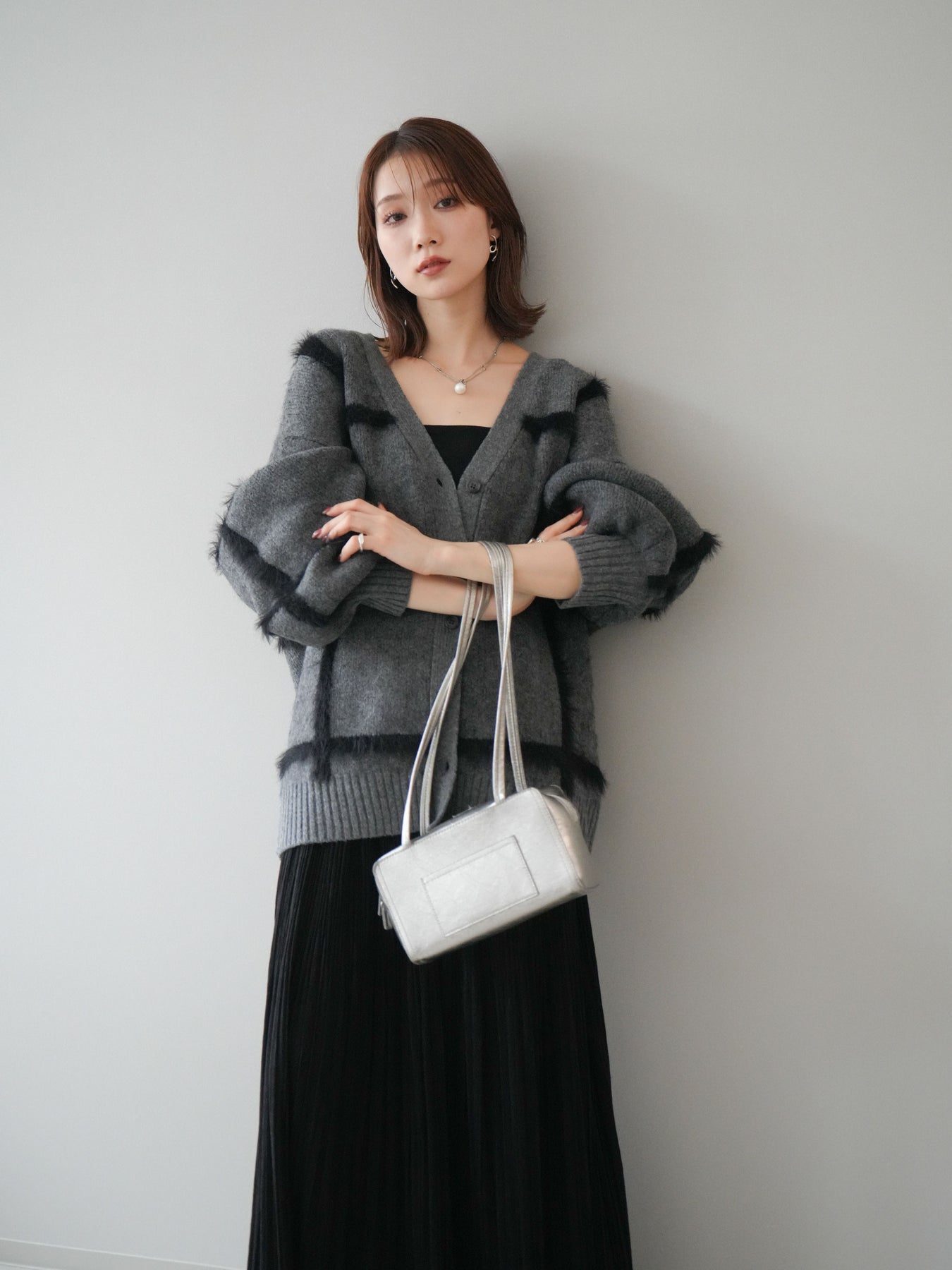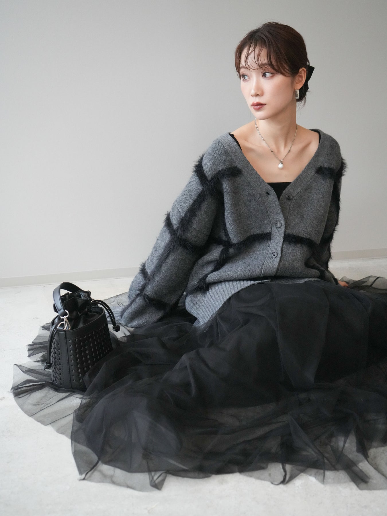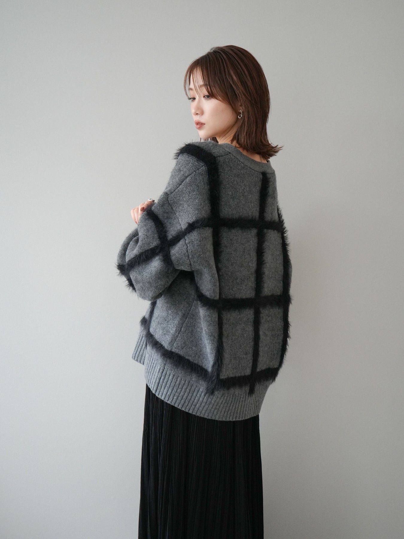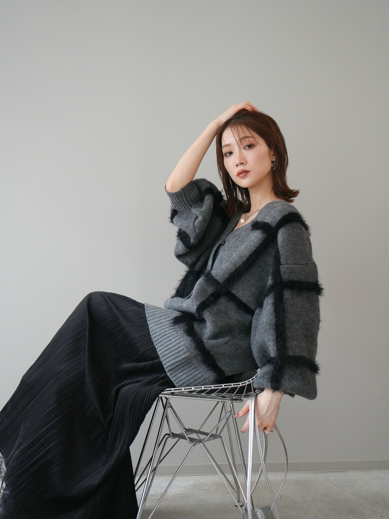 [予約]ミックスシャギーチェックカーディガン/charcoal