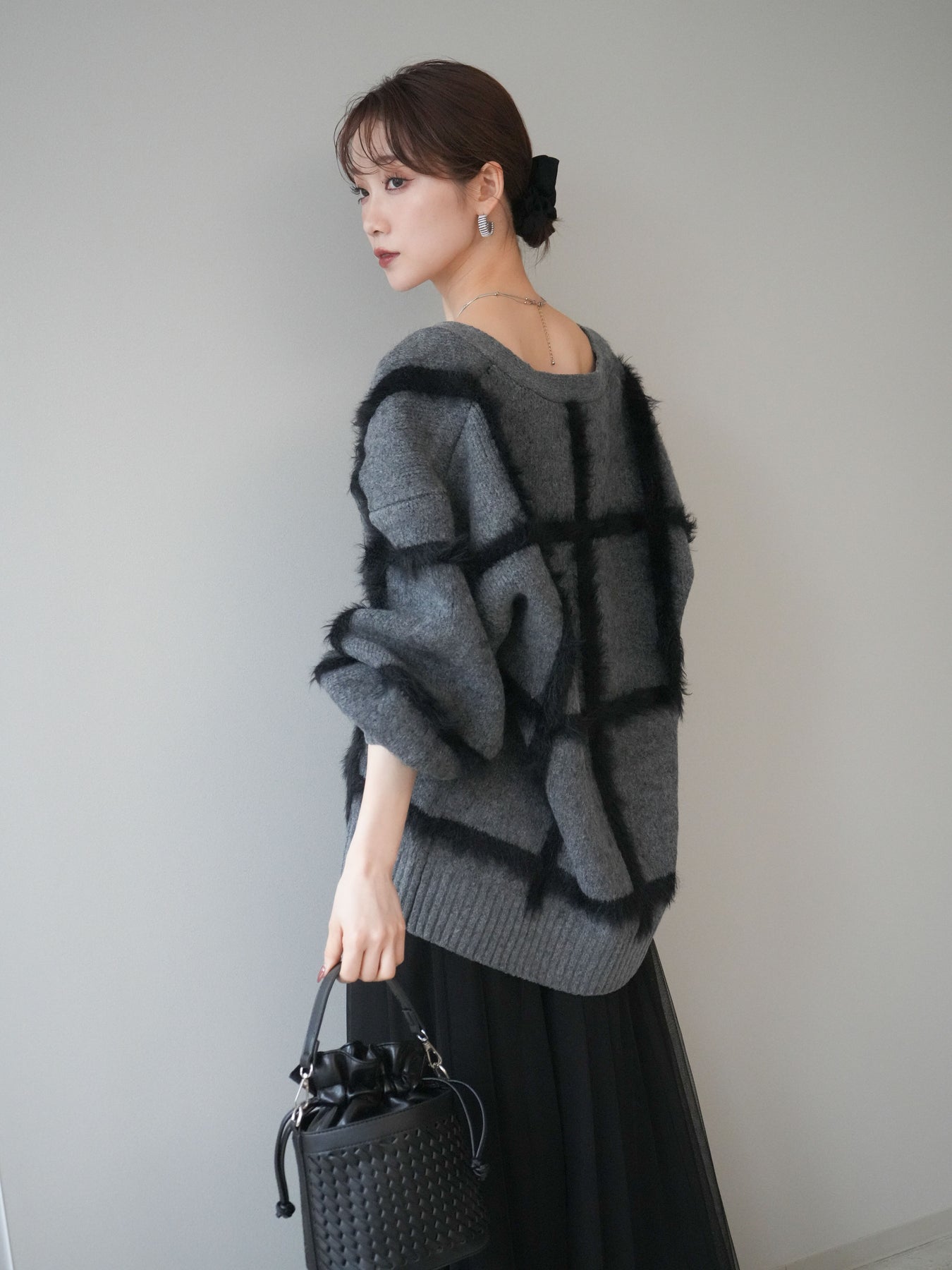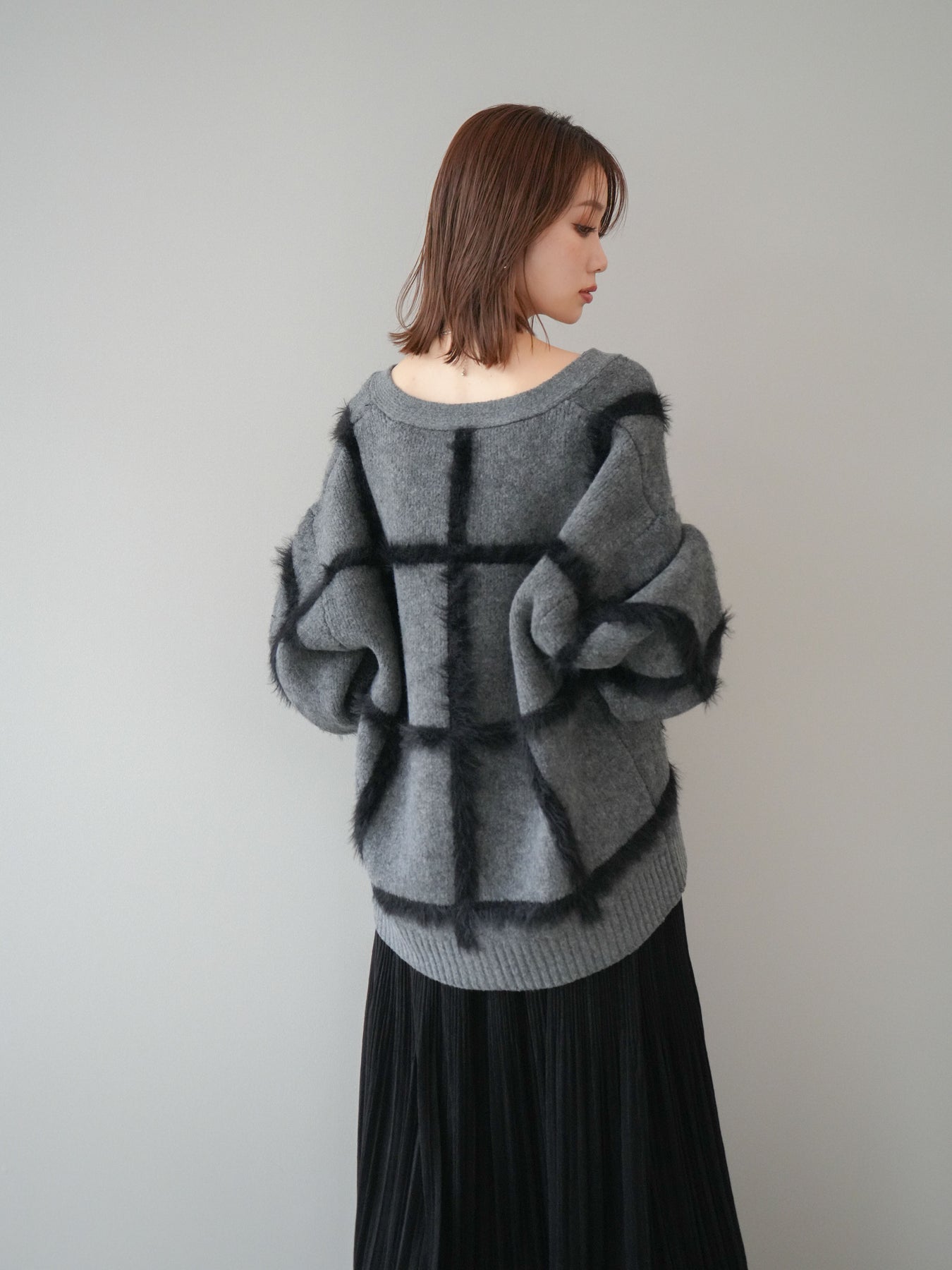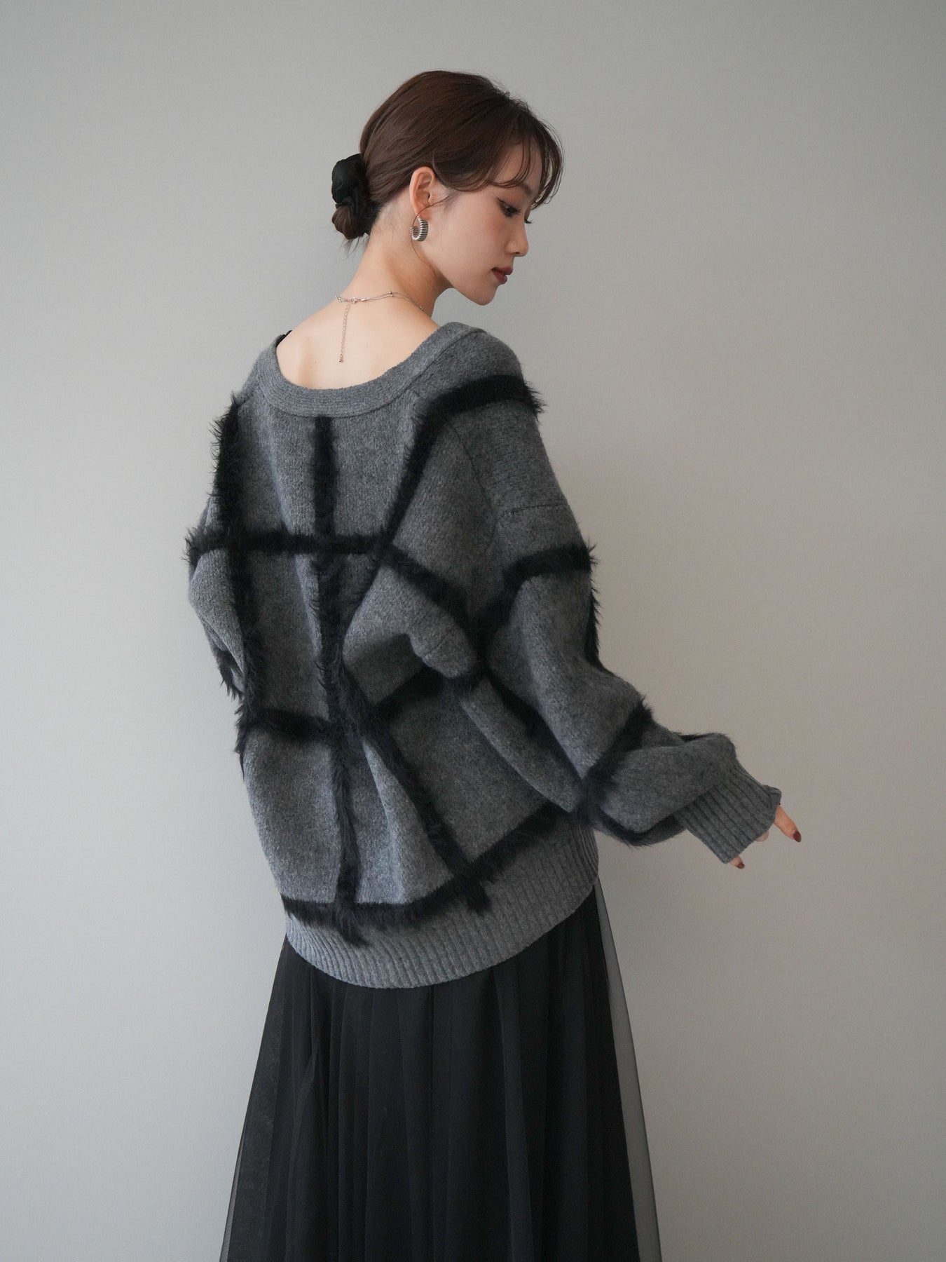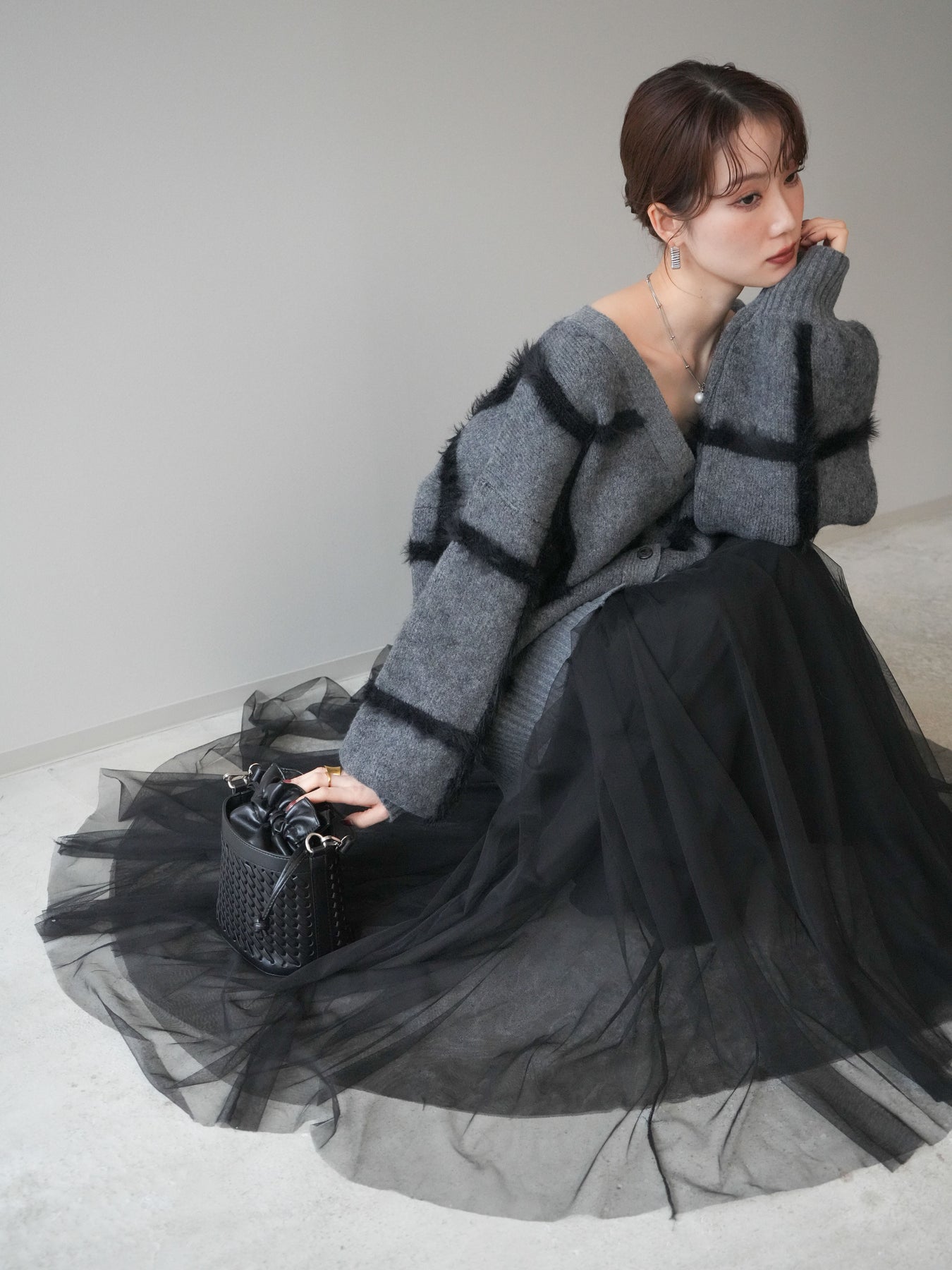 [予約]ミックスシャギーチェックカーディガン/charcoal