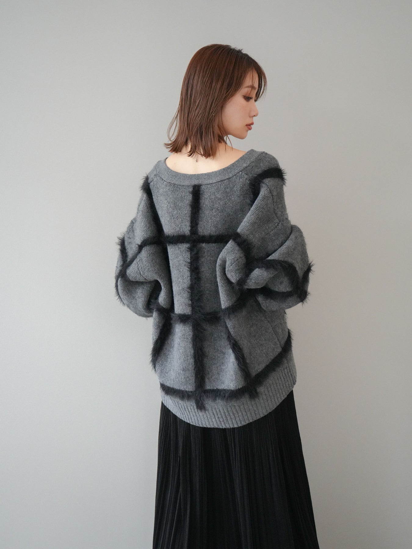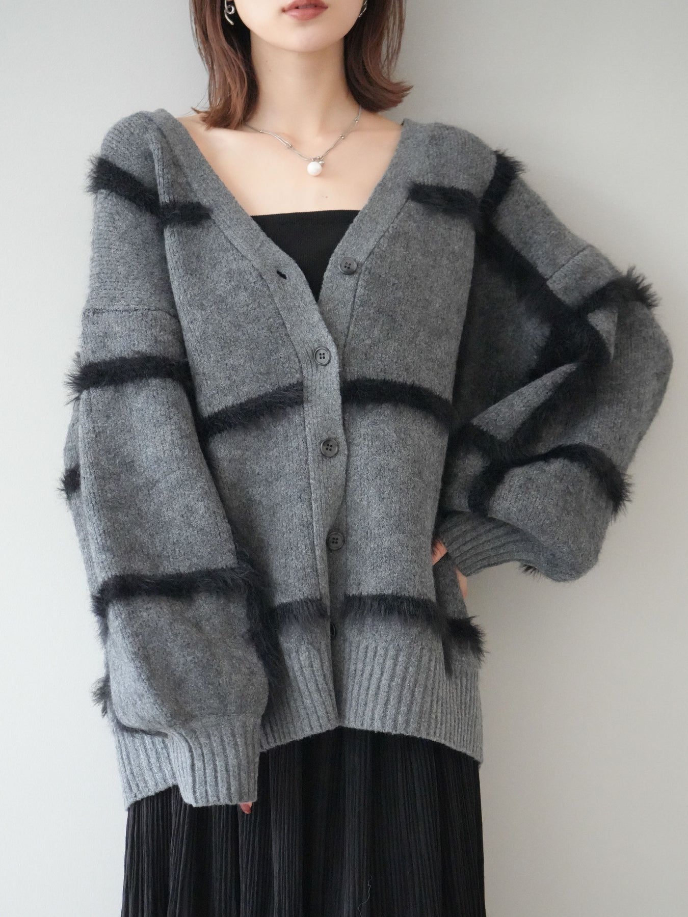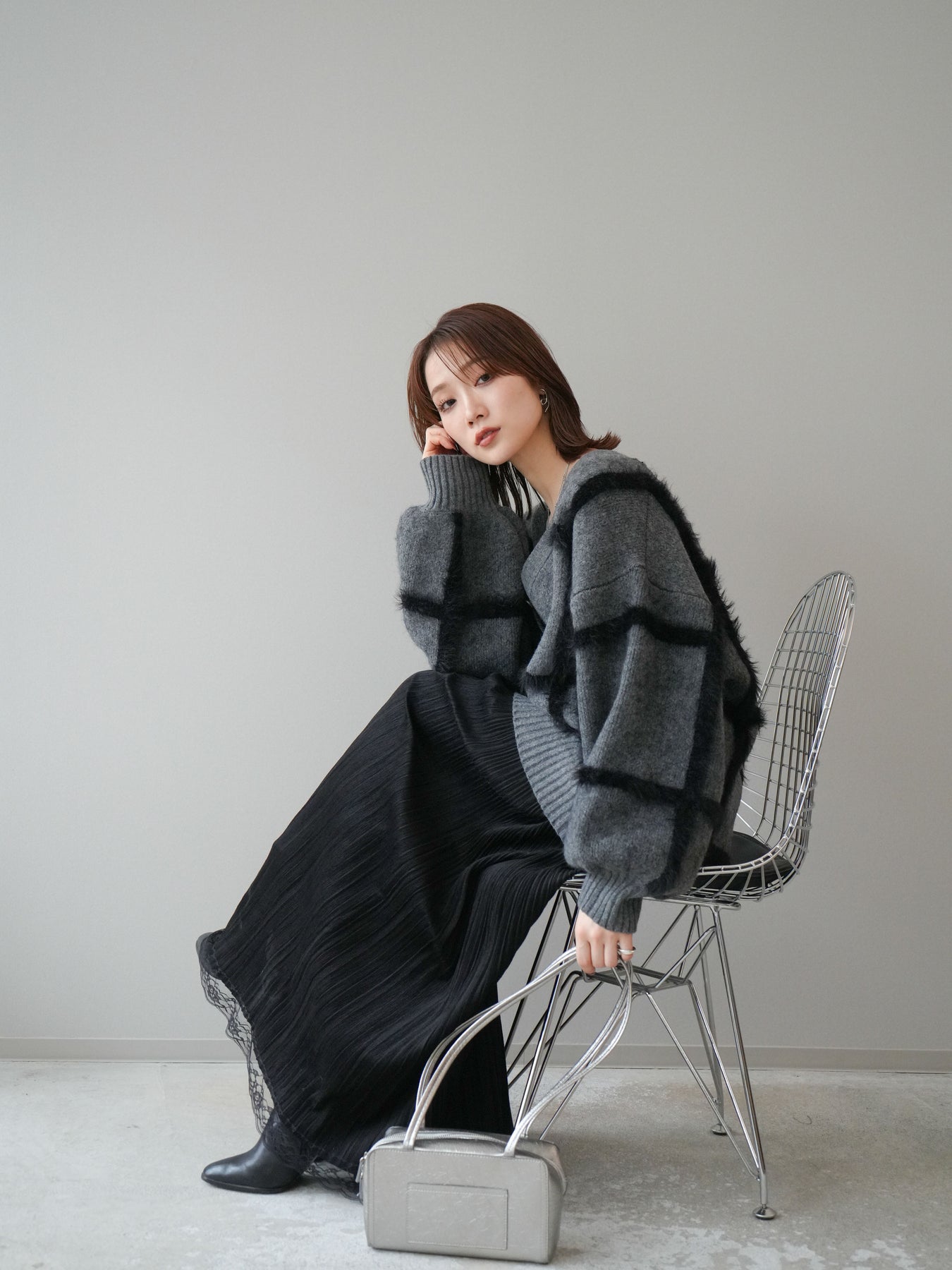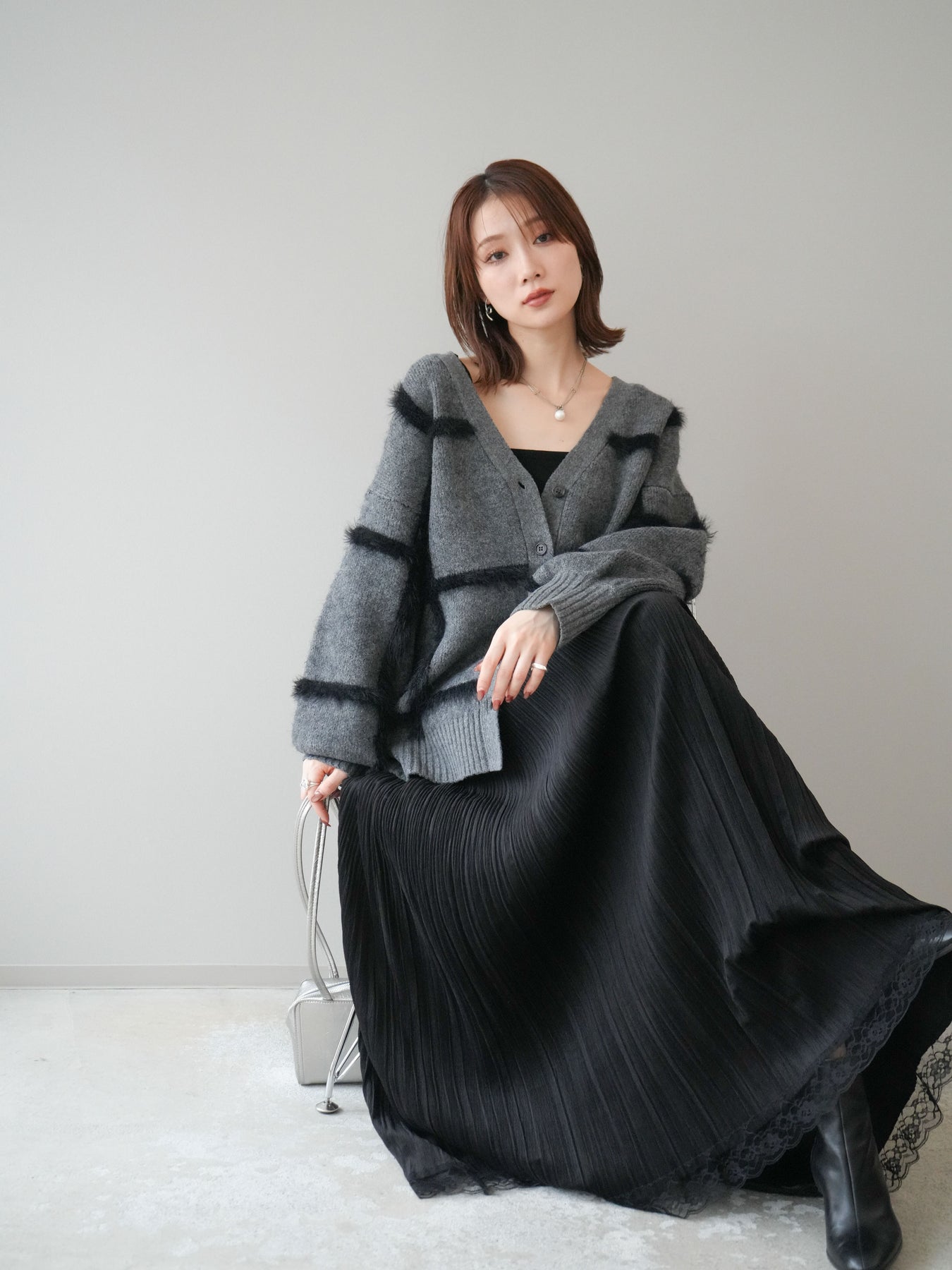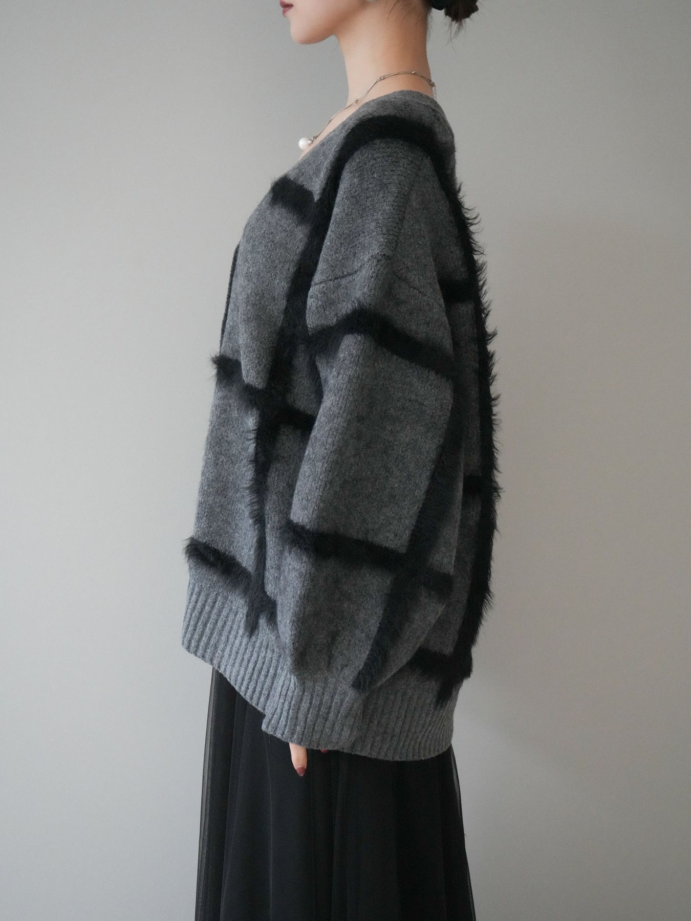 [予約]ミックスシャギーチェックカーディガン/charcoal