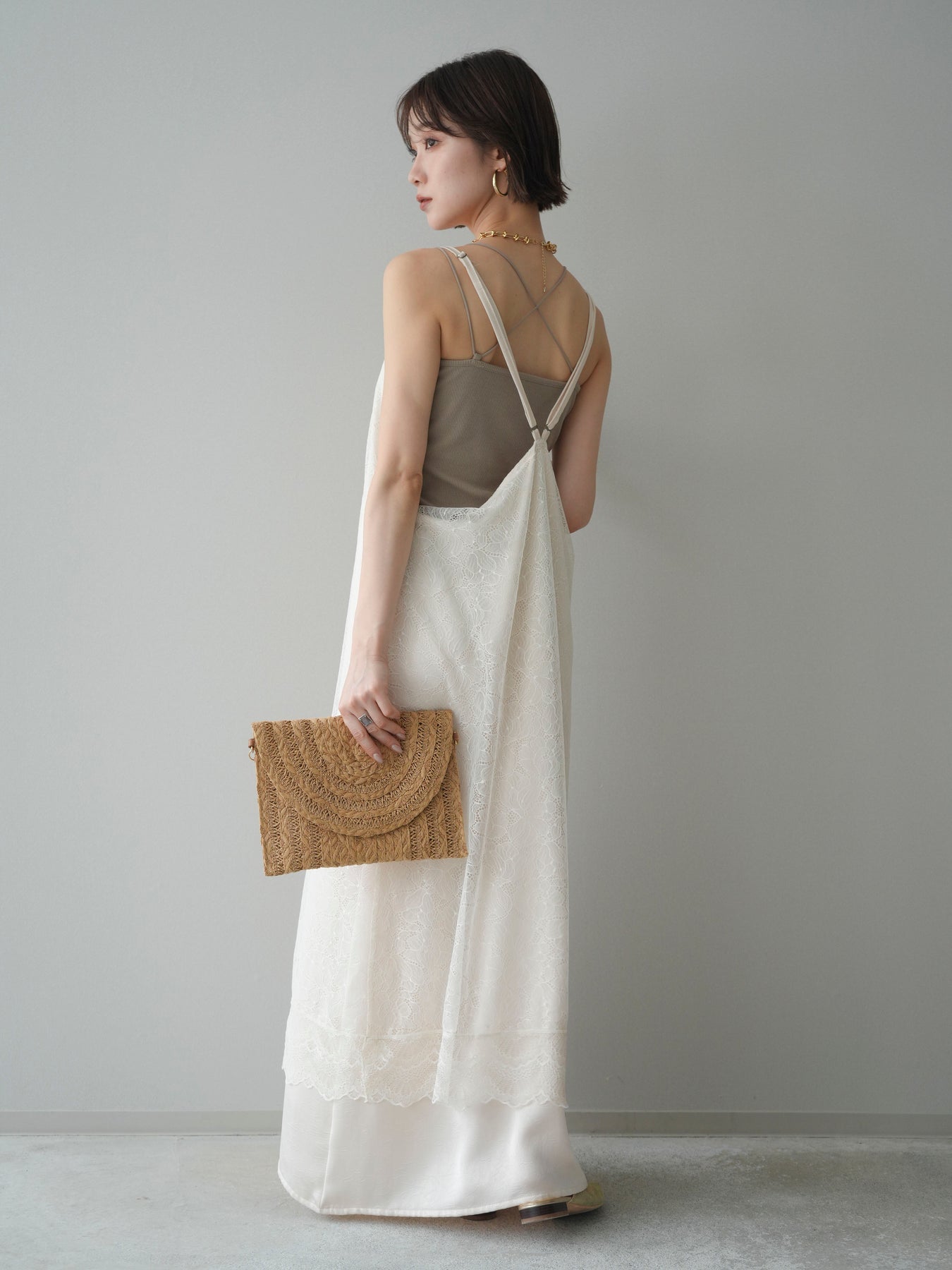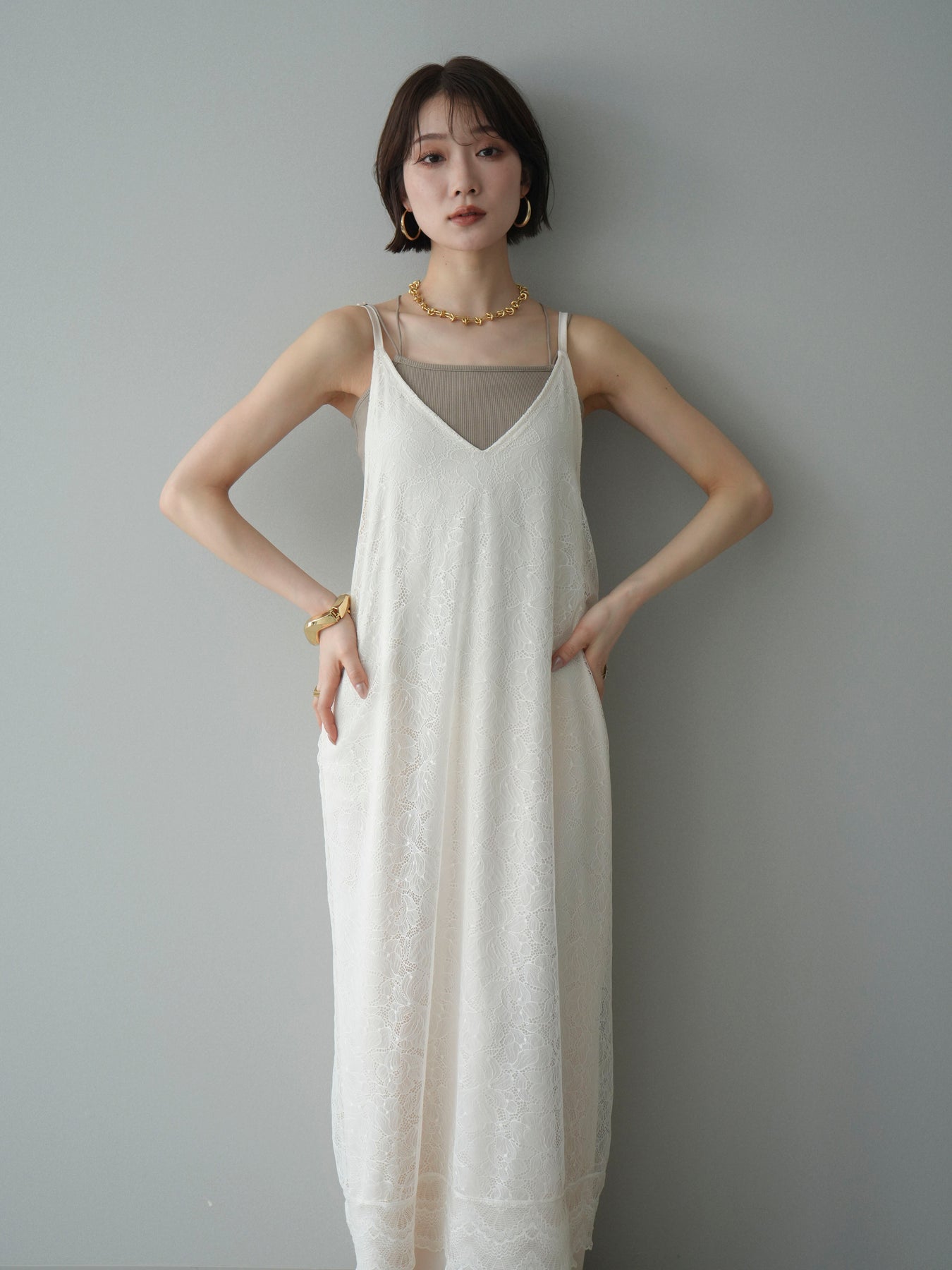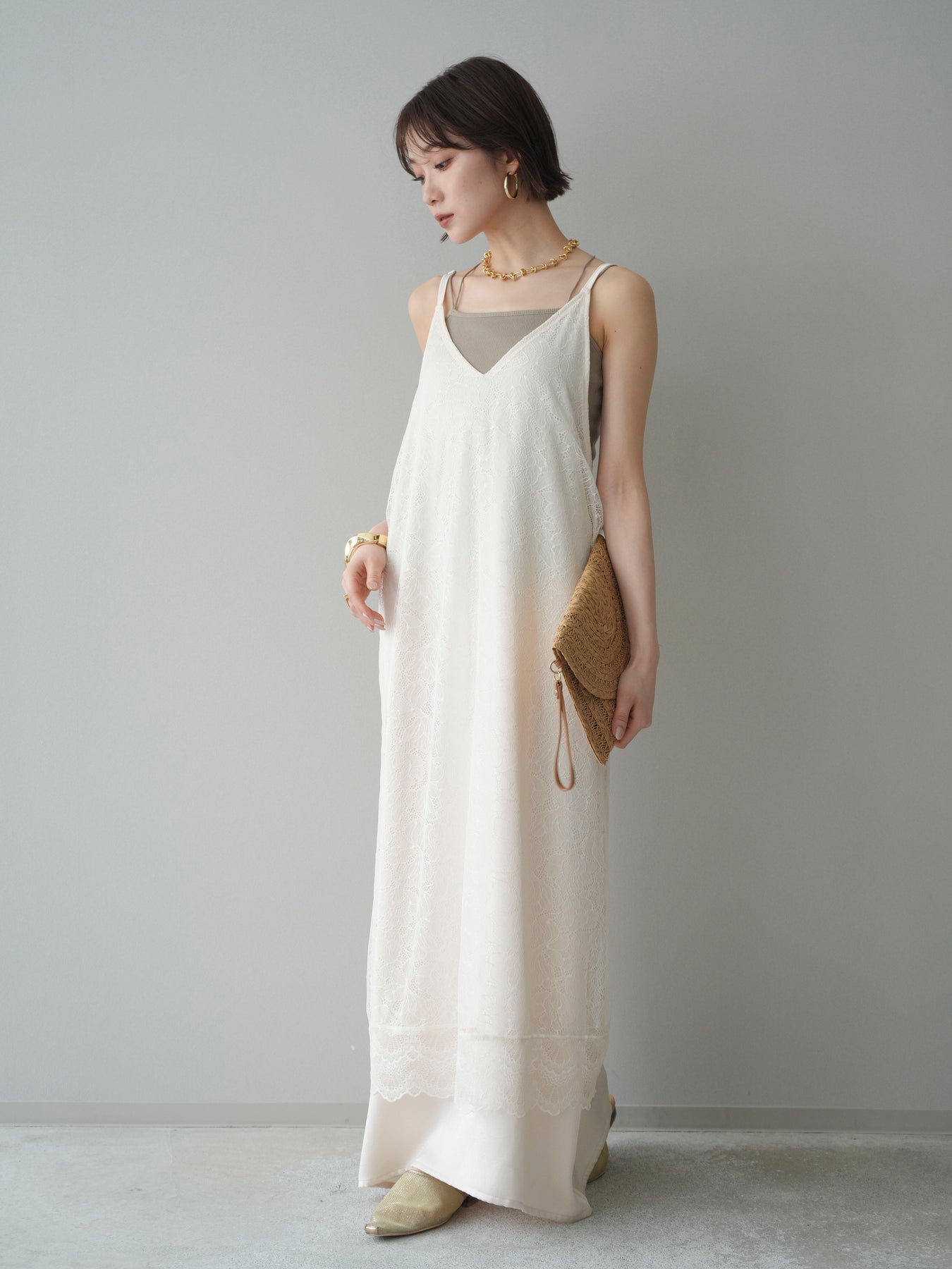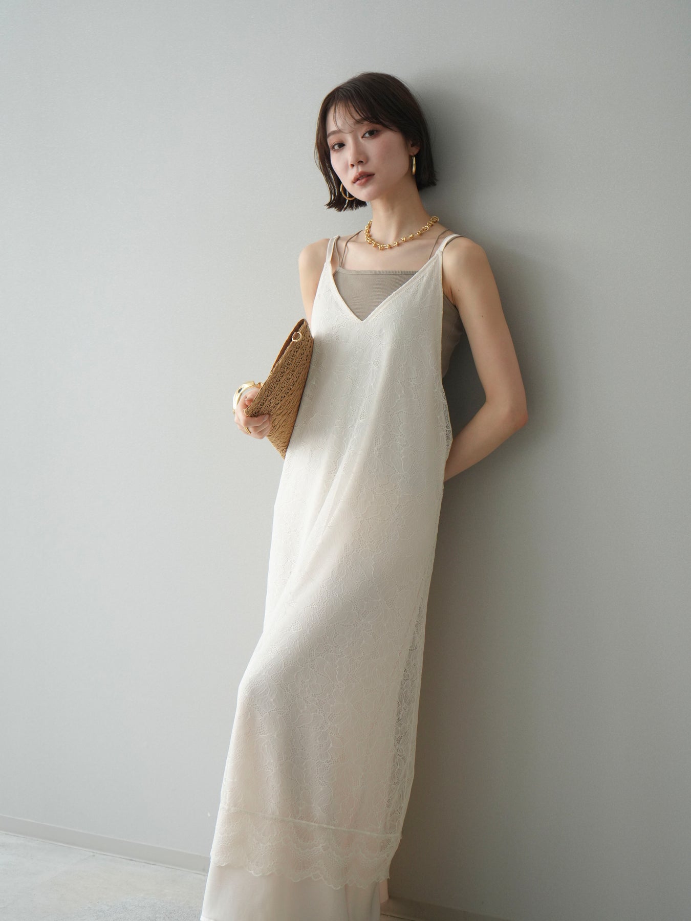 [予約]サテンレースレイヤードキャミワンピース/ivory