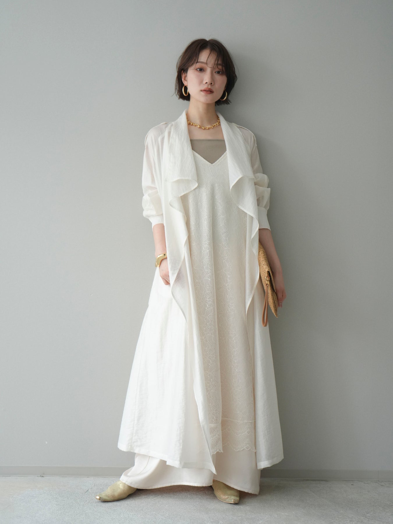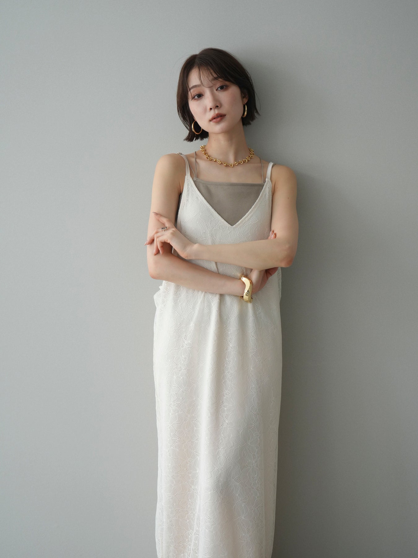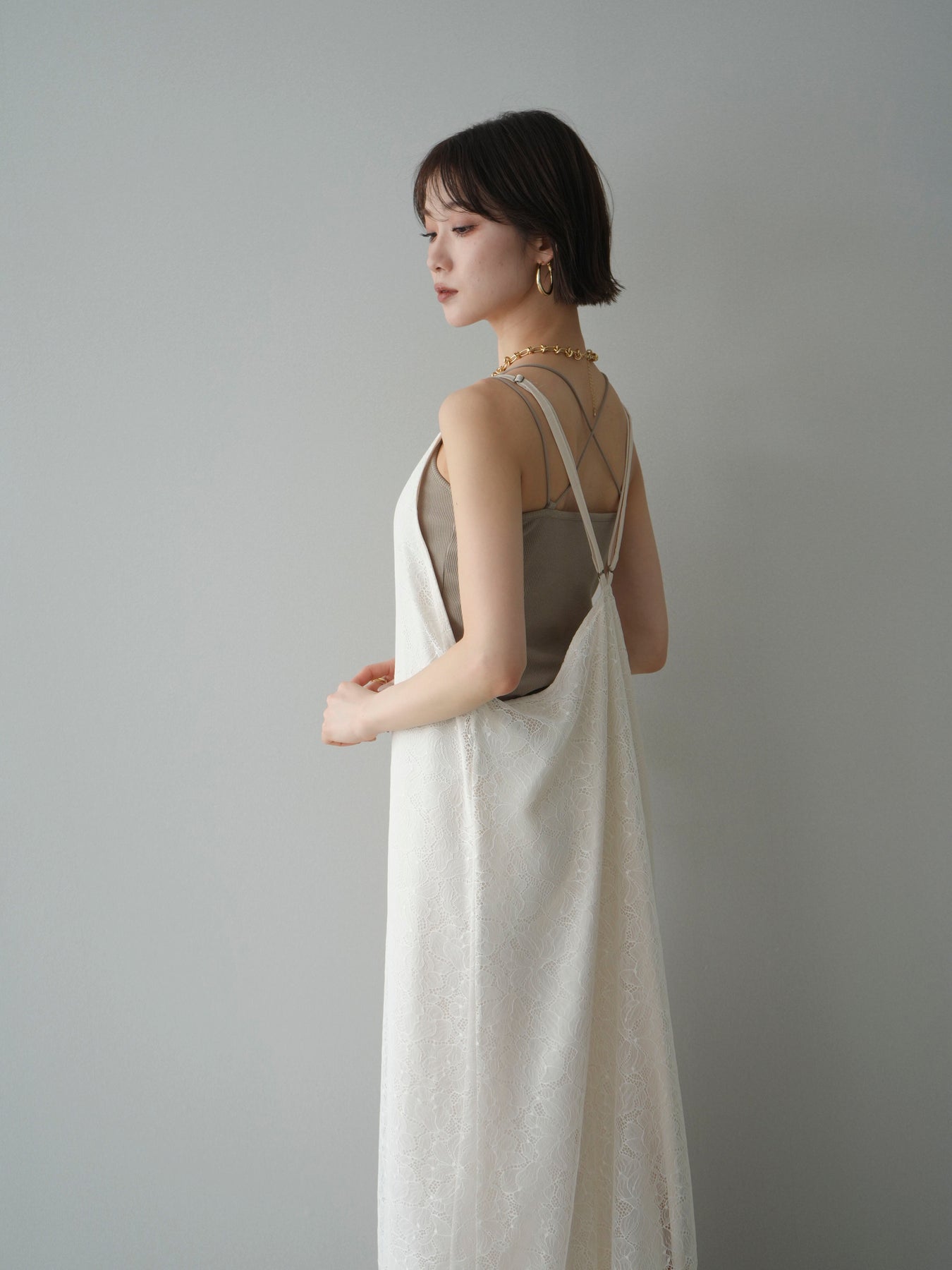 [予約]サテンレースレイヤードキャミワンピース/ivory