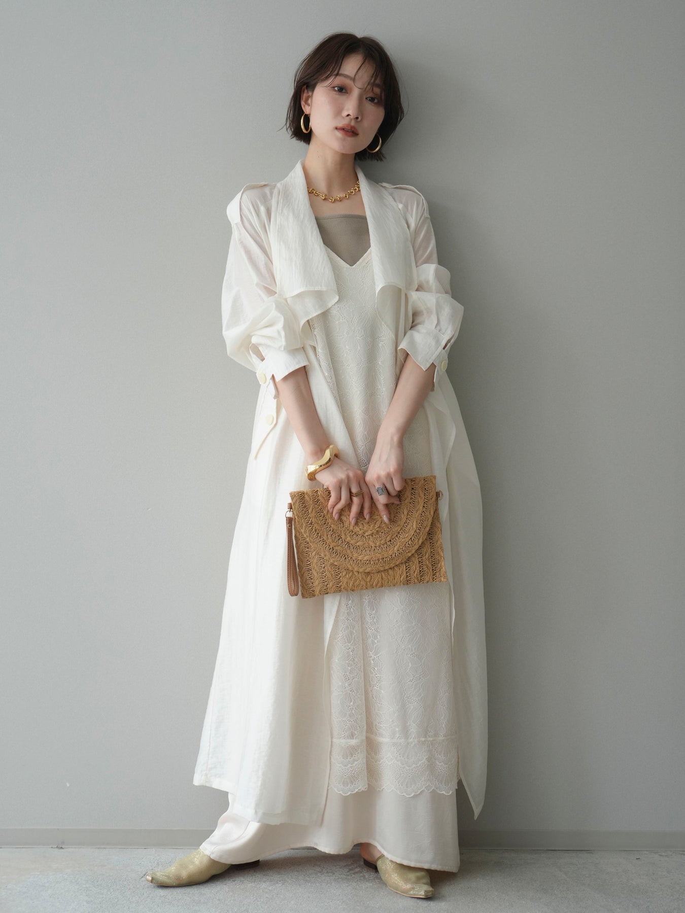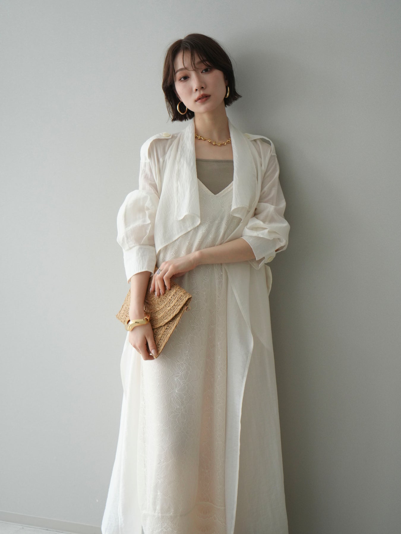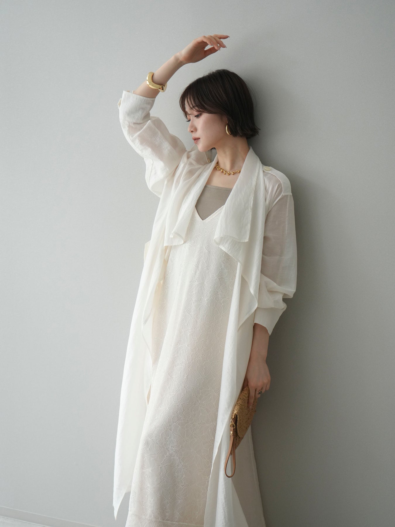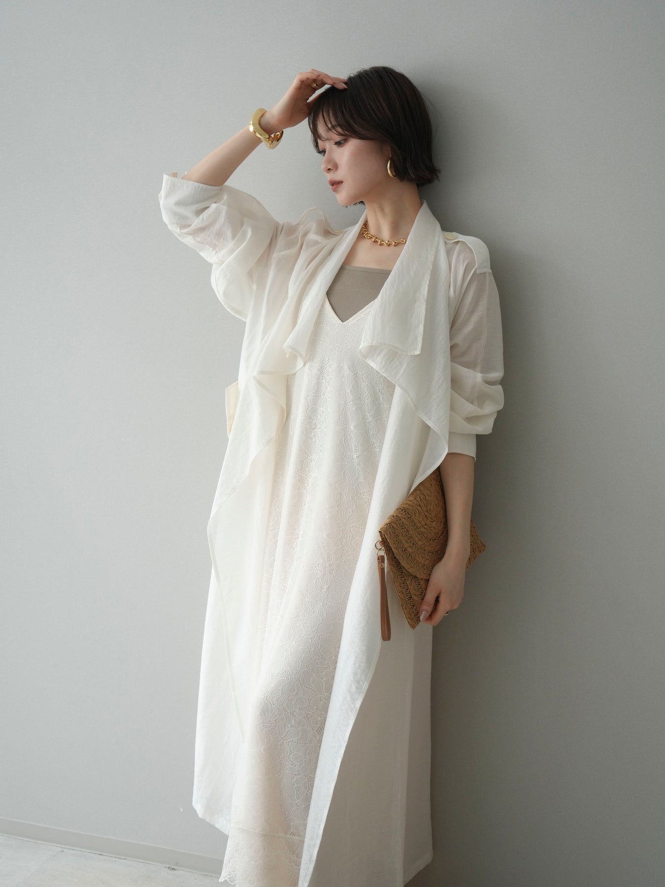[予約]サテンレースレイヤードキャミワンピース/ivory